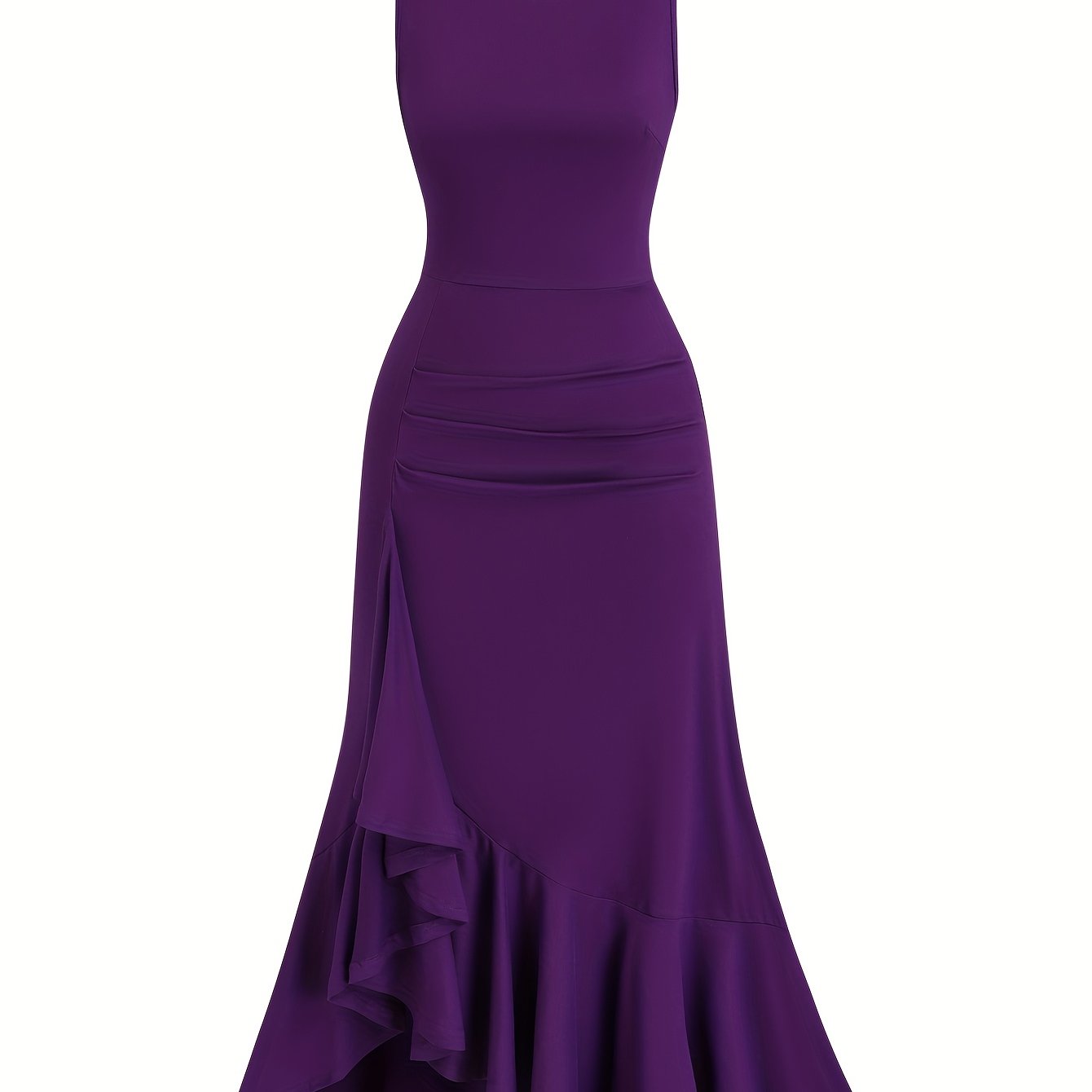 Discover the perfect blend of elegance and comfort with our Women's Elegant Sleeveless Ruffled Dress, designed for the modern woman. This chic A-line evening gown features a stunning ruffle detail and is crafted from high-elasticity polyester, making it an ideal choice for spring, summer, and fall events.