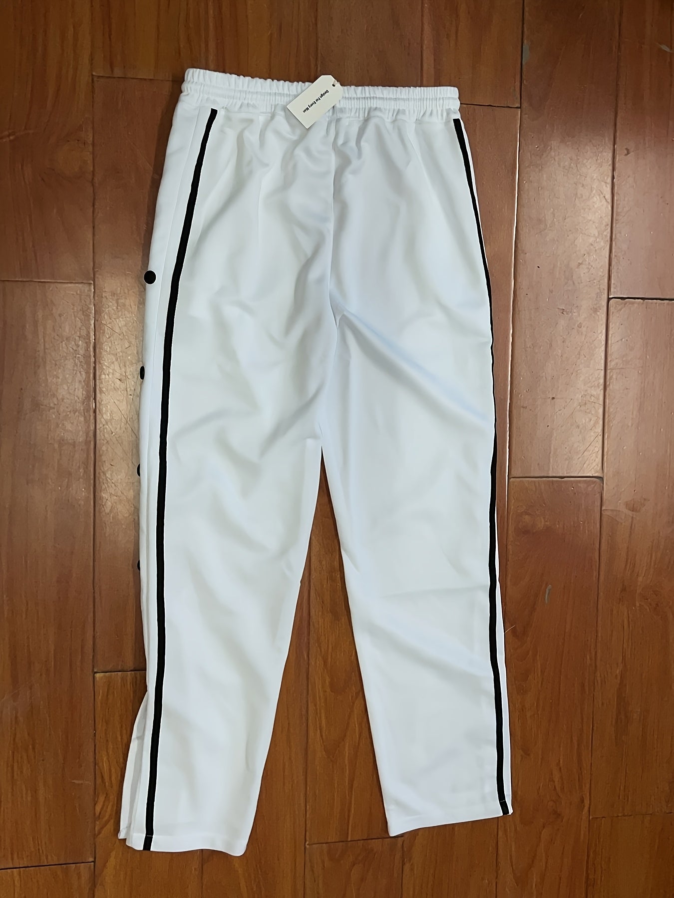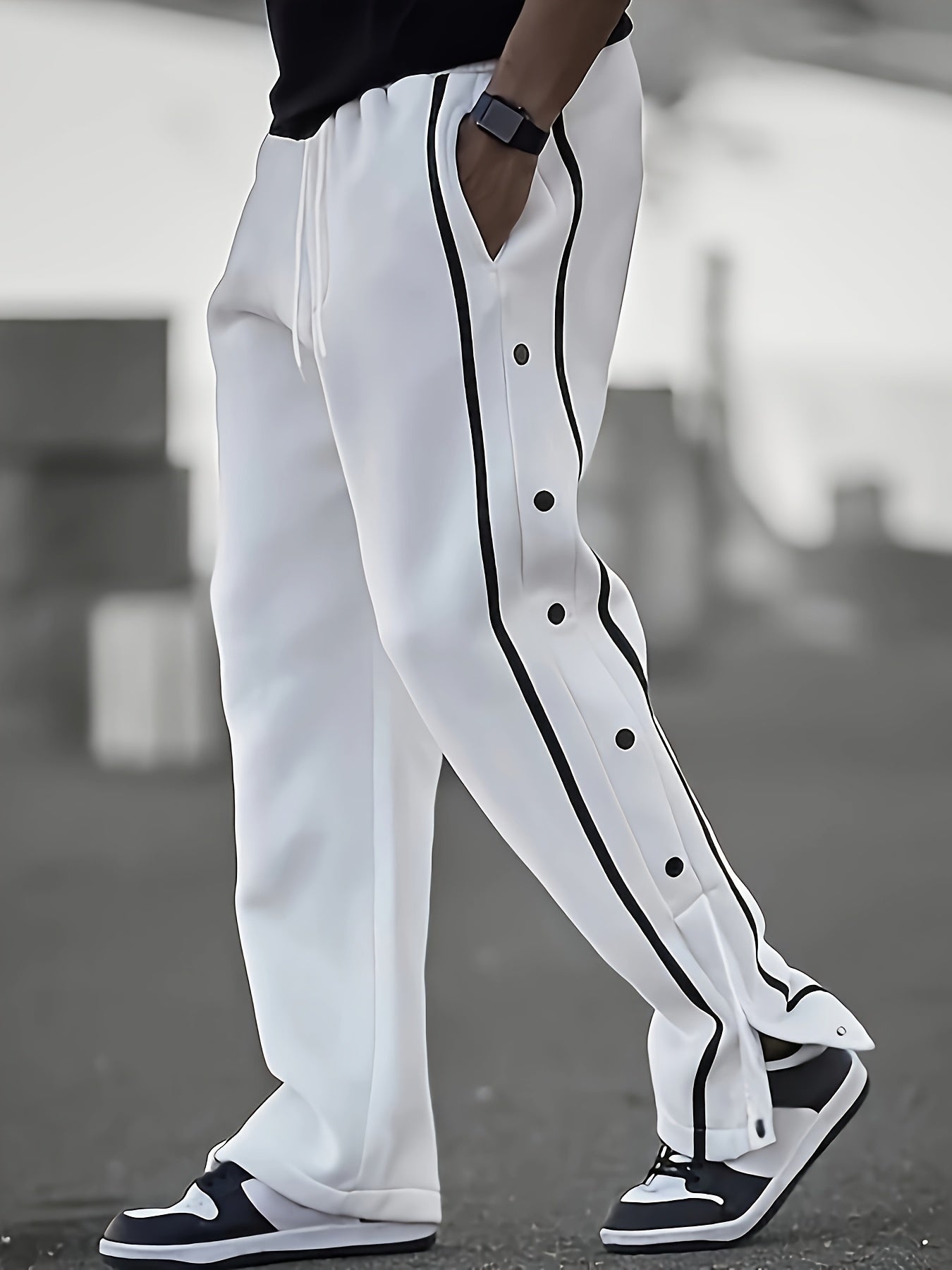 Sporty Men's Straight Leg Athletic Pants - Elastic Waist & Button Detail