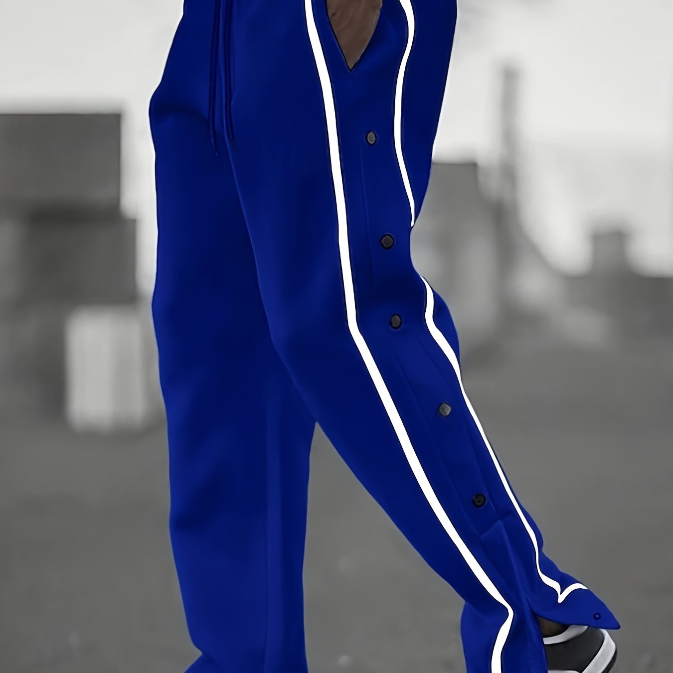 Discover the ultimate in comfort and style with our Sporty Men's Straight Leg Athletic Pants. Made from 100% polyester, these pants feature a sleek design with an elastic waist and button detail, perfect for every season and any casual occasion.