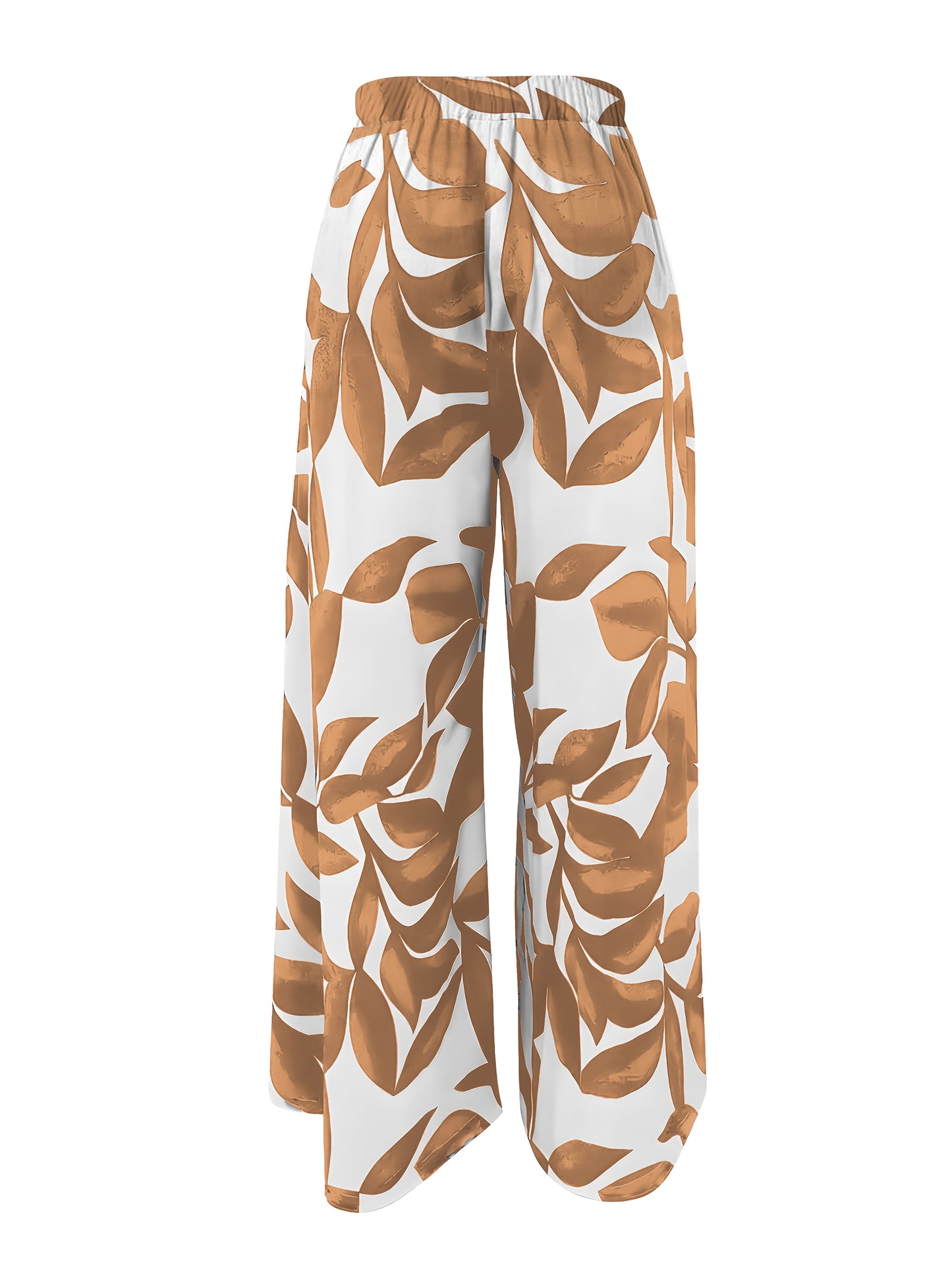 Stylish Wide-Leg Botanical Print Pants - Elegant and Comfortable