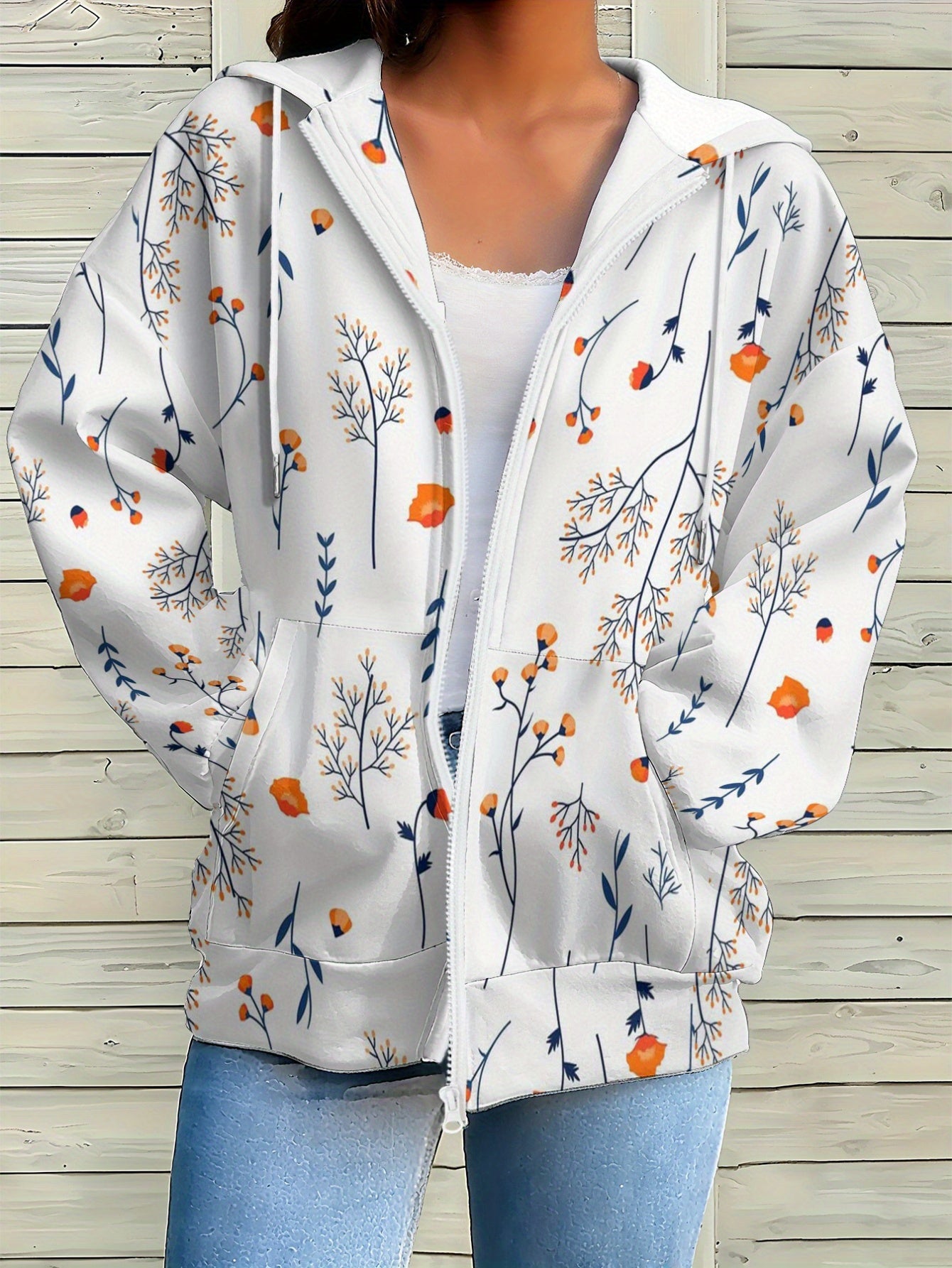 Women's Floral Hoodie - Zip-Up Sweatshirt for Fall/Winter Comfort