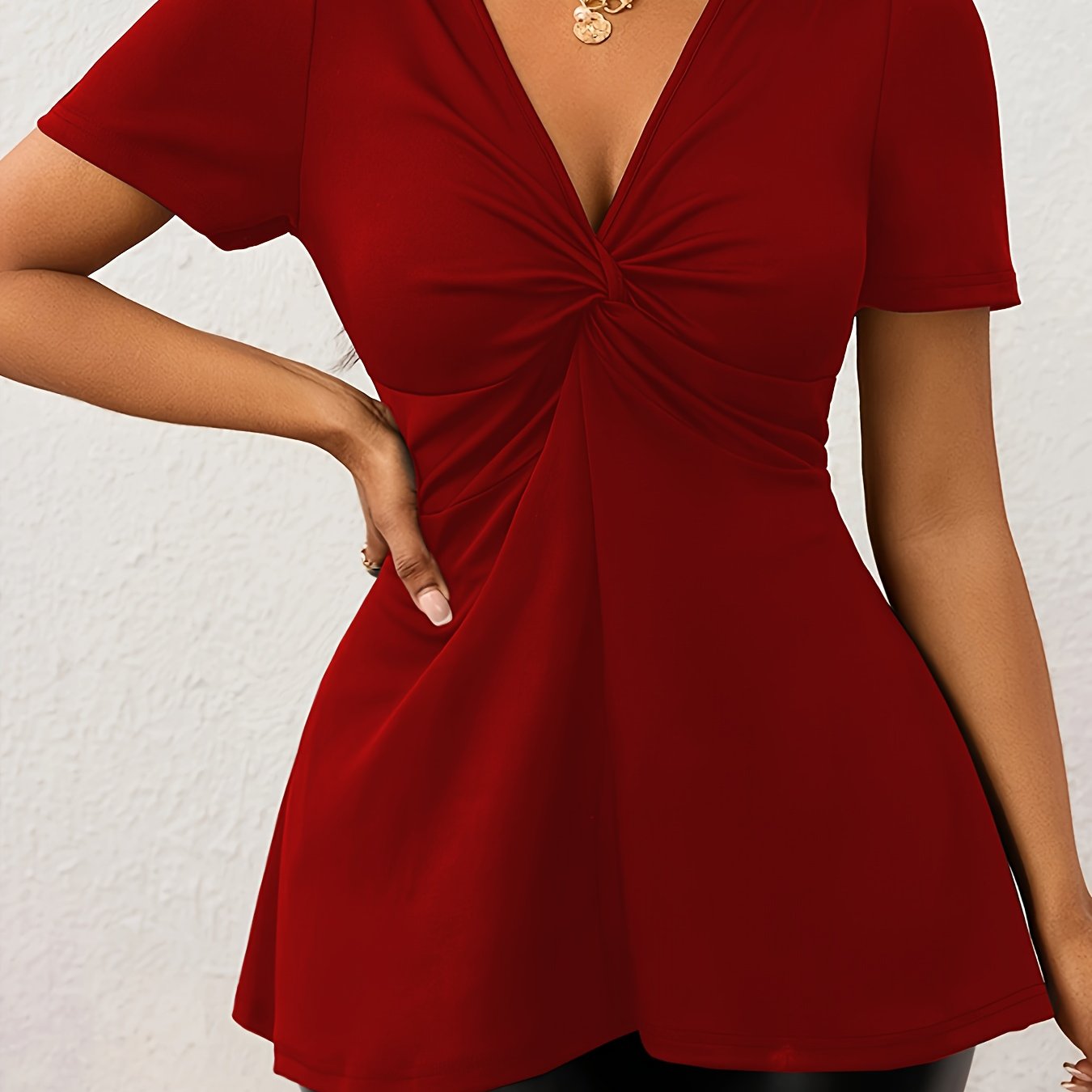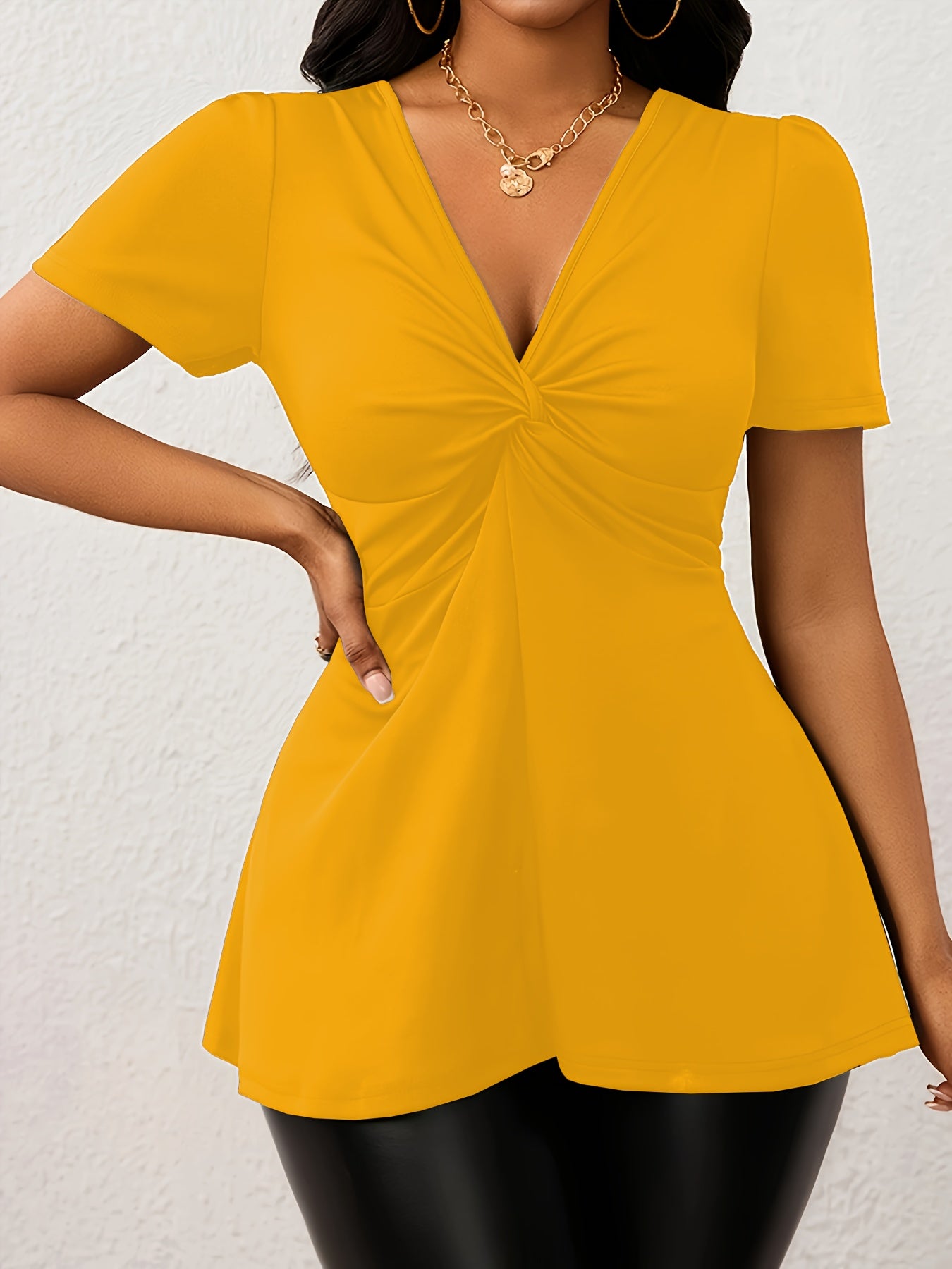 Elegant Women's V-Neck Twist-Front T-Shirt - Comfortable & Stretchy