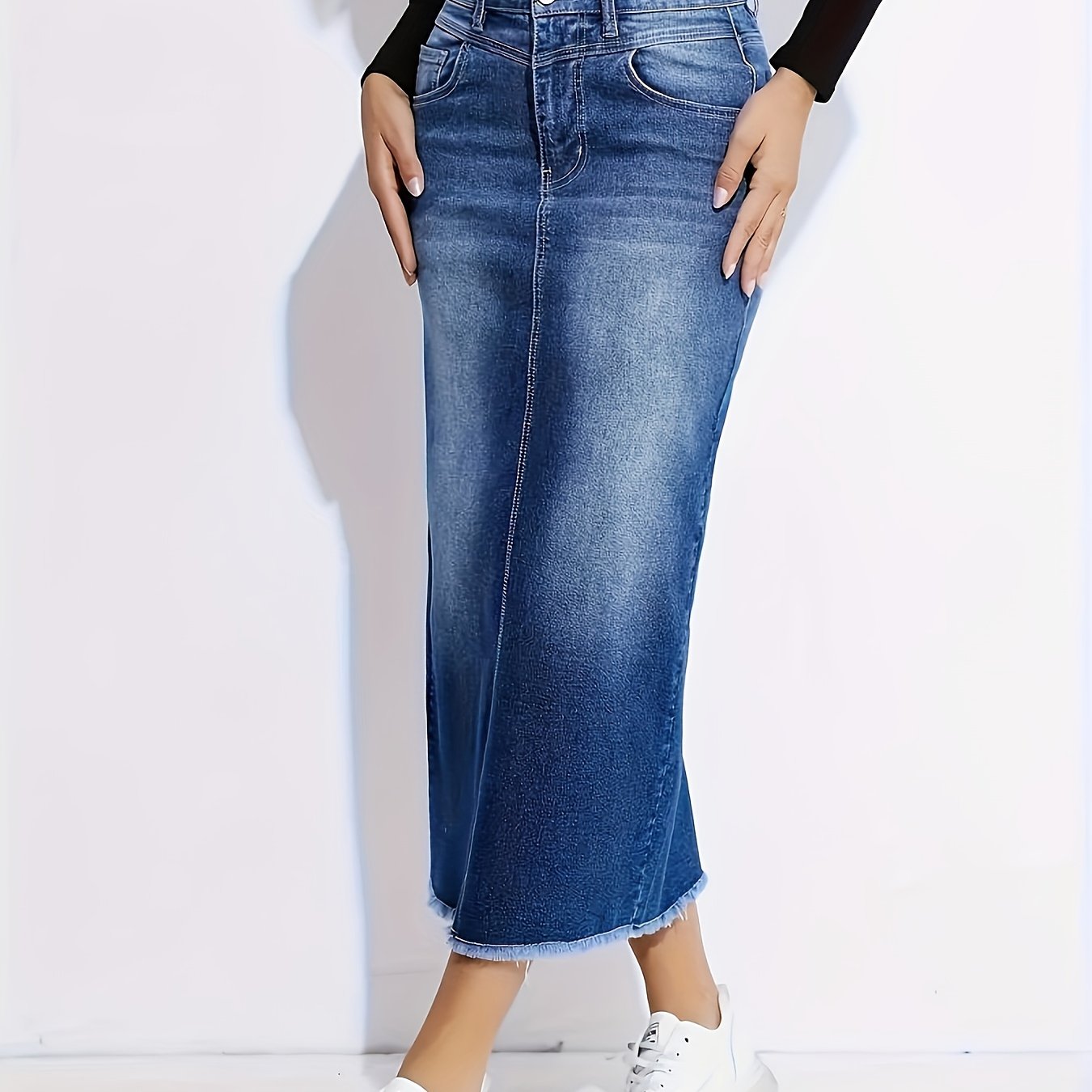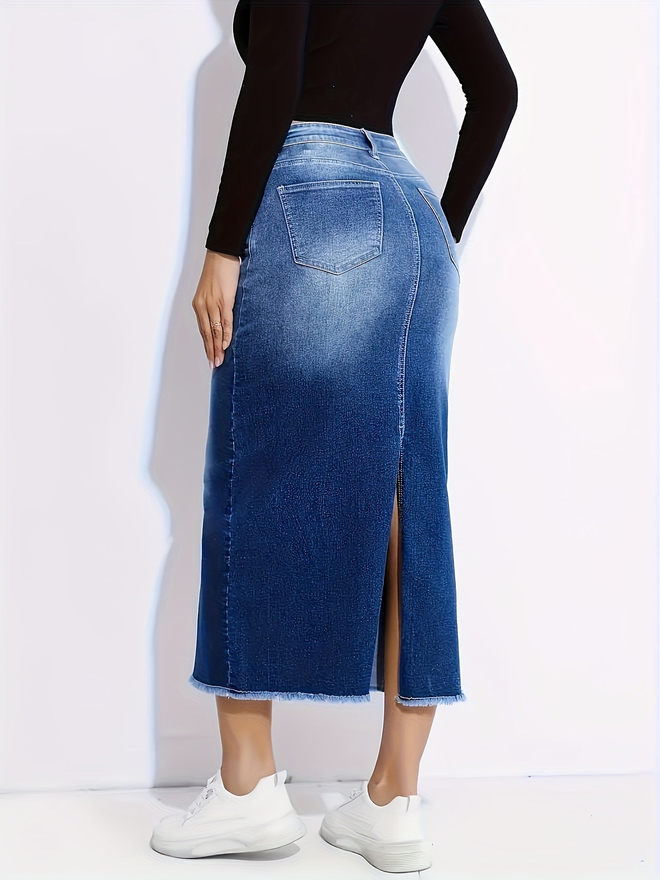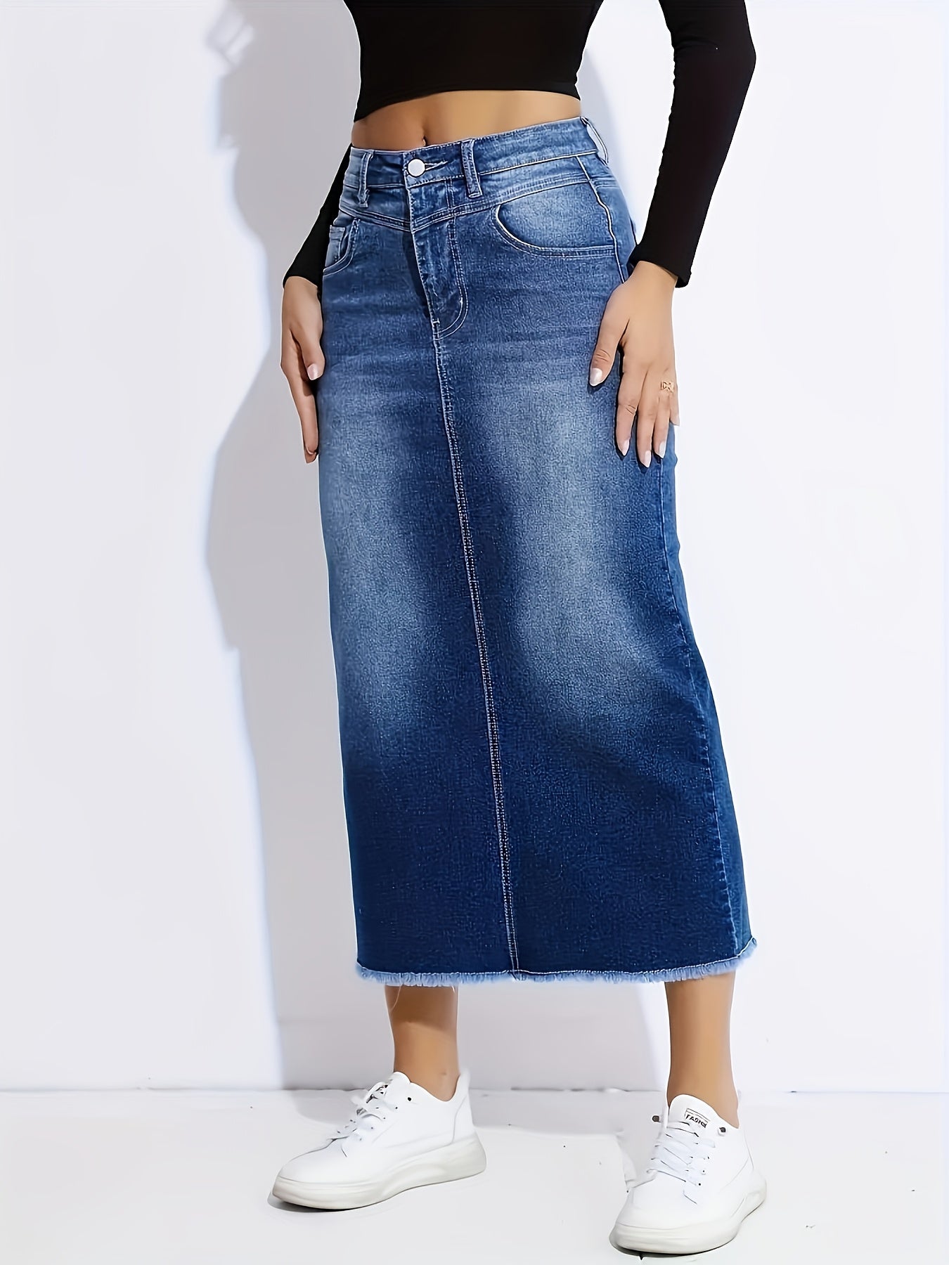Elegant Women’s Straight-Leg Jeans Skirt - Stretchy & Non-See-Through