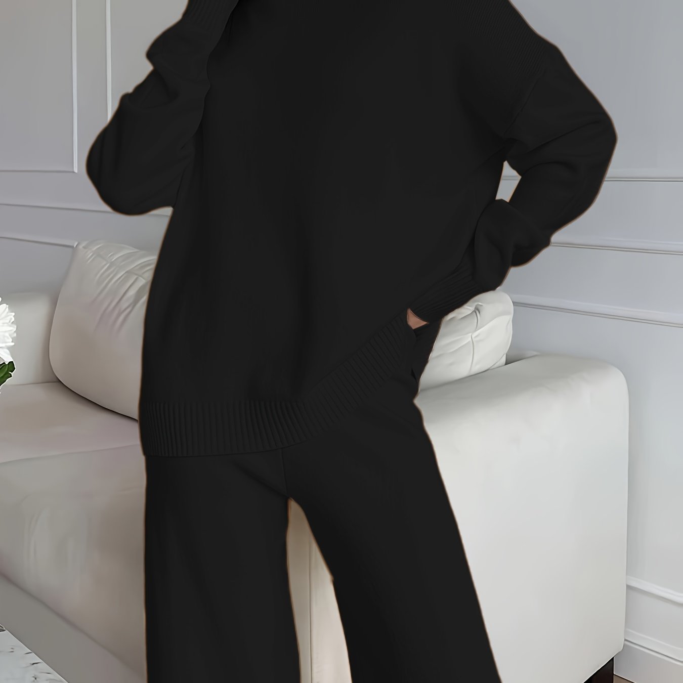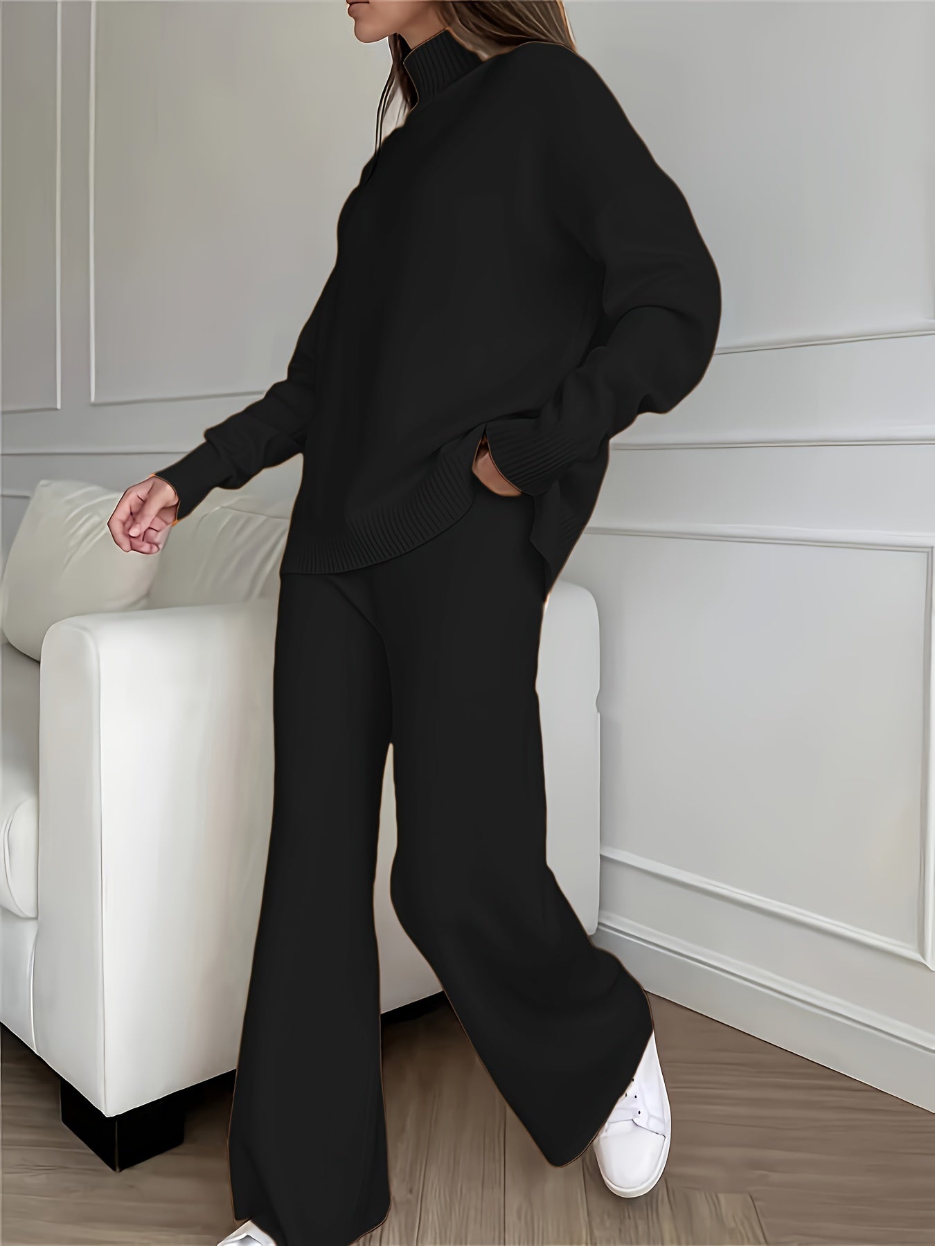 - Wide-leg pants for a relaxed fit