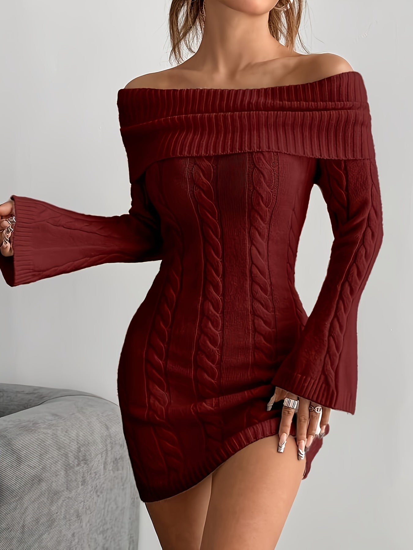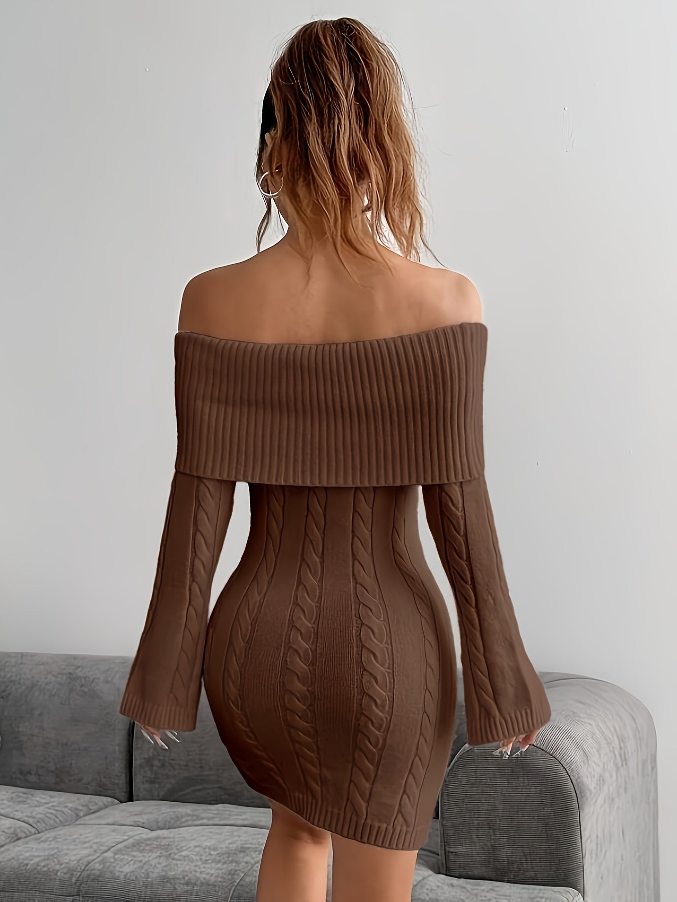 Elegant Off-the-Shoulder Sweater Dress - Cozy Winter Fashion