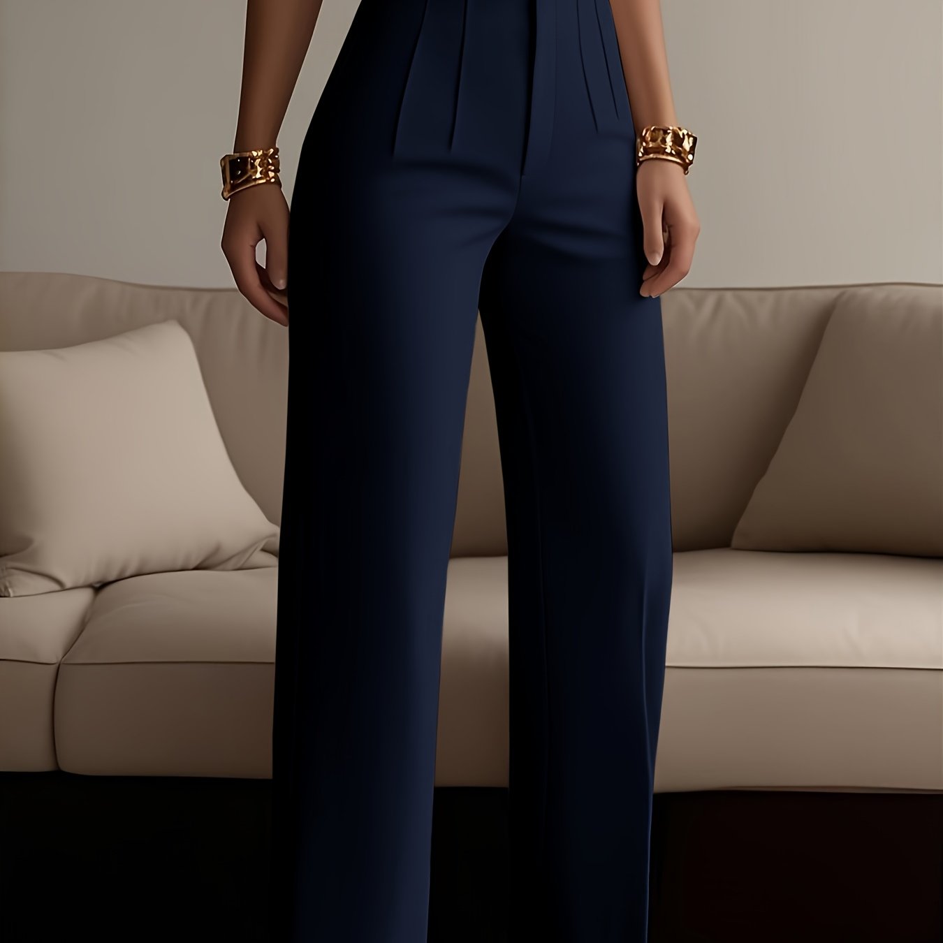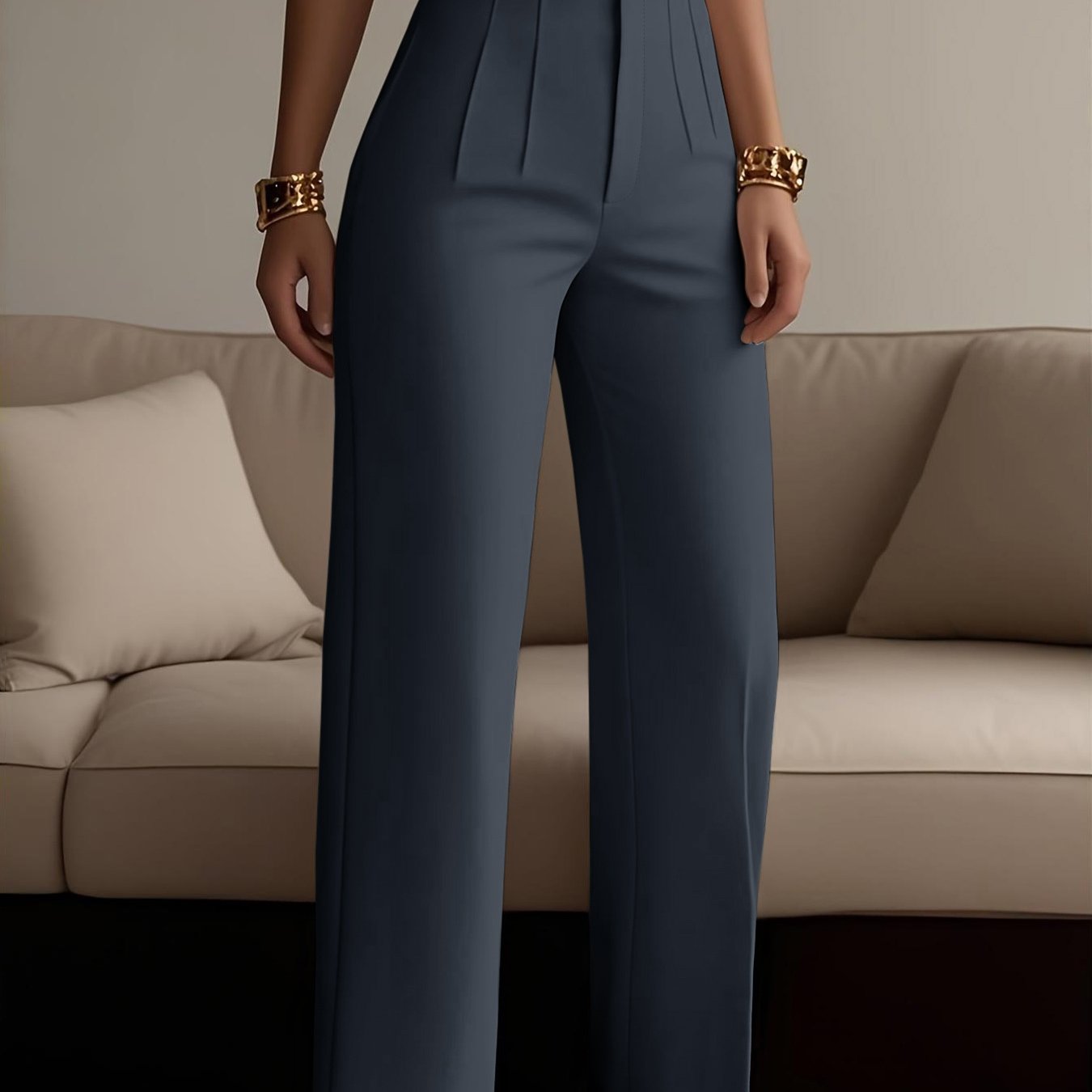 Women's Solid Color Pants - Zipper Detail, Casual Office Trousers