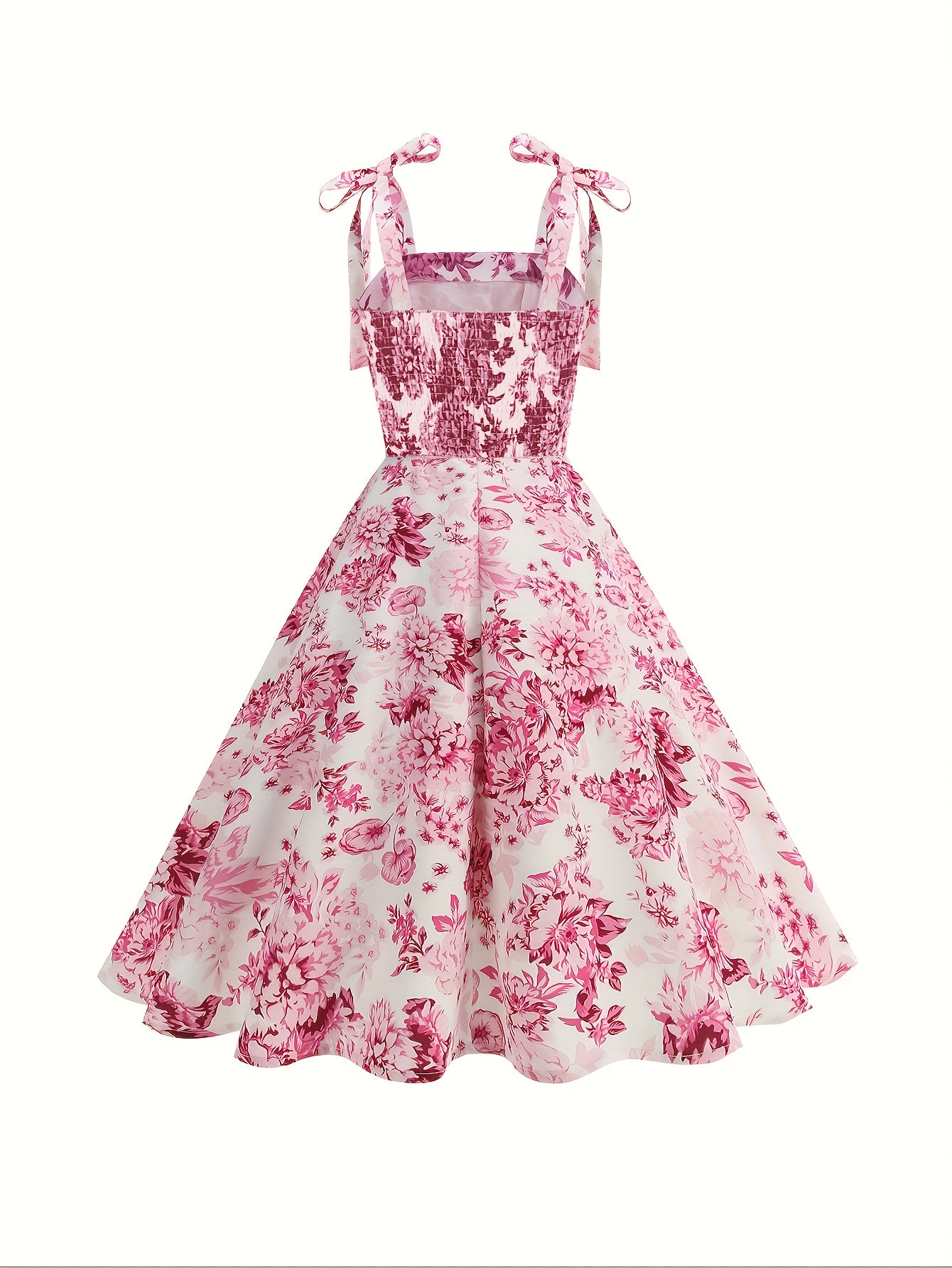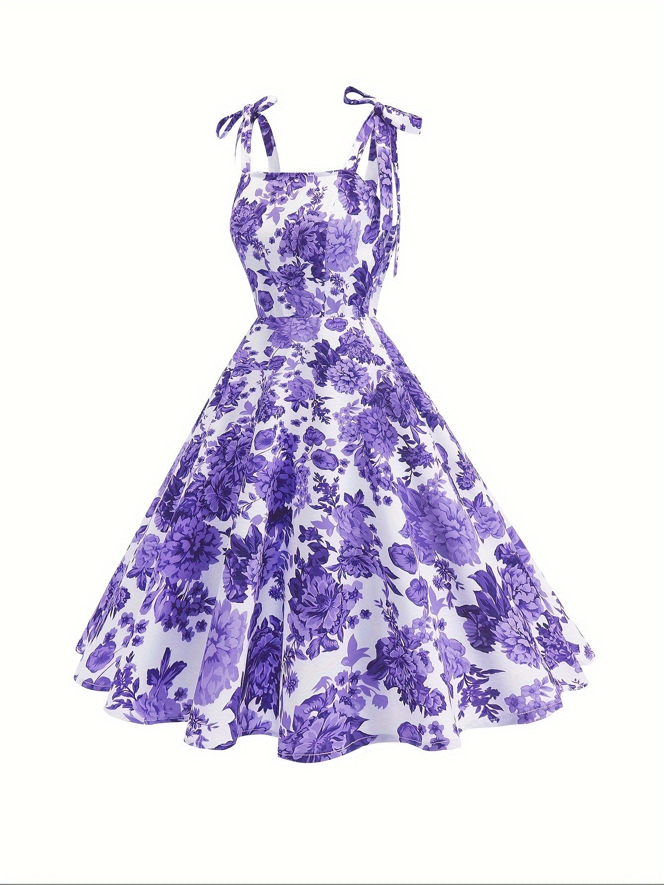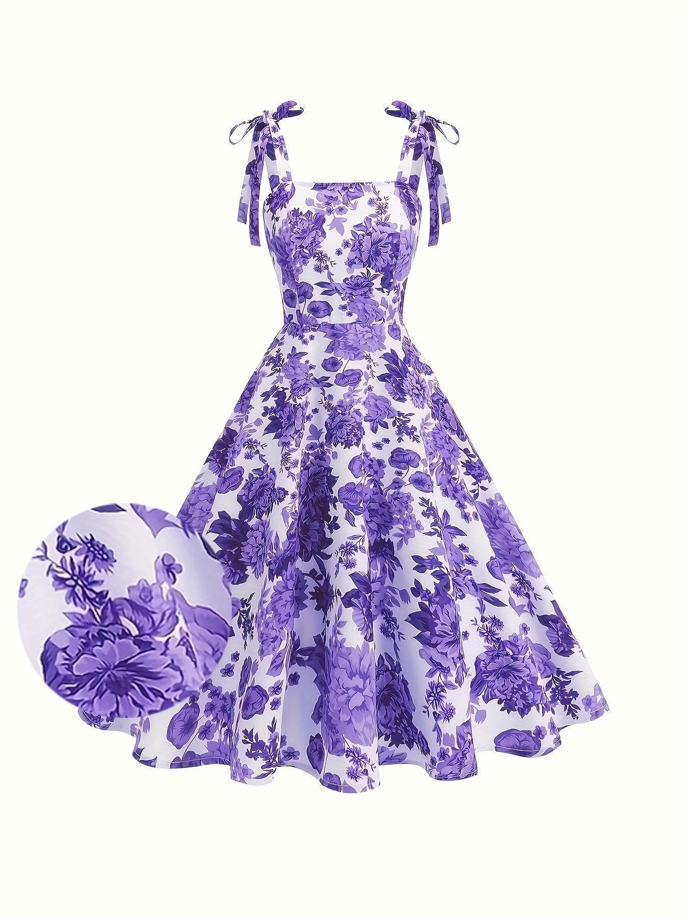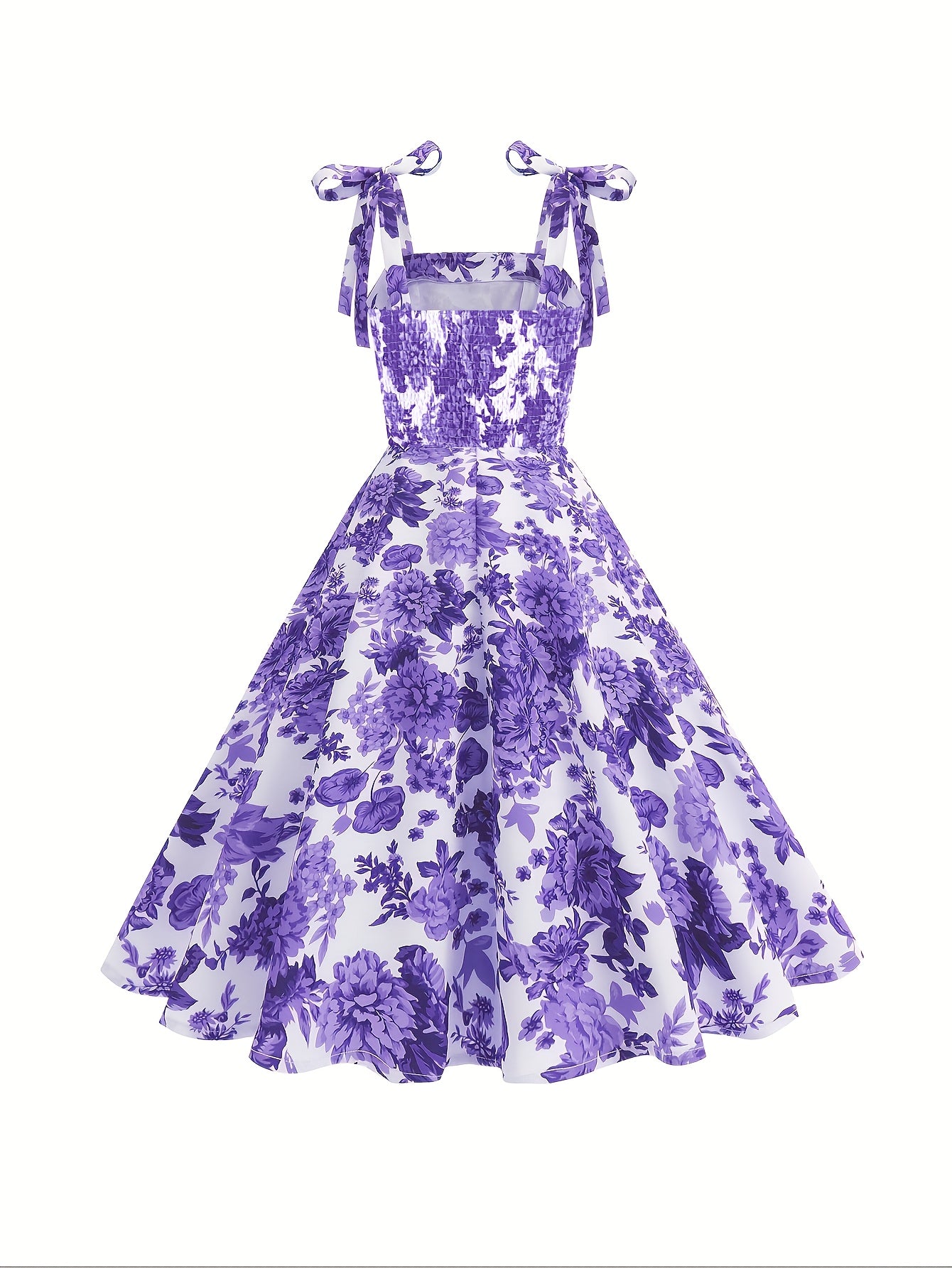 Elevate your spring and summer wardrobe with our Women's Vintage Floral Print Dress. Featuring an elegant square neck and a fitted design, this dress exudes a timeless charm. Made from 100% polyester, it offers comfort and style for any occasion.
