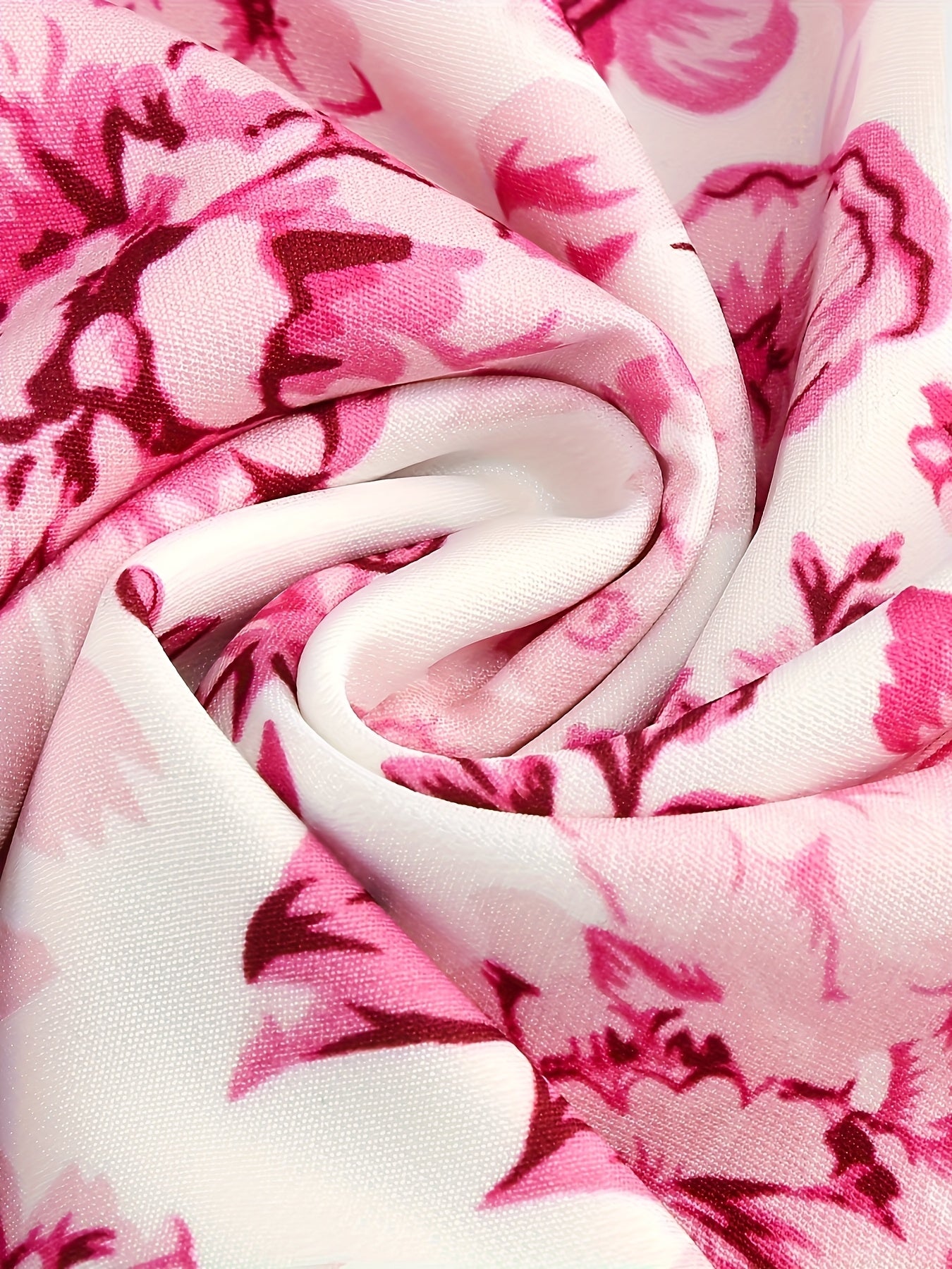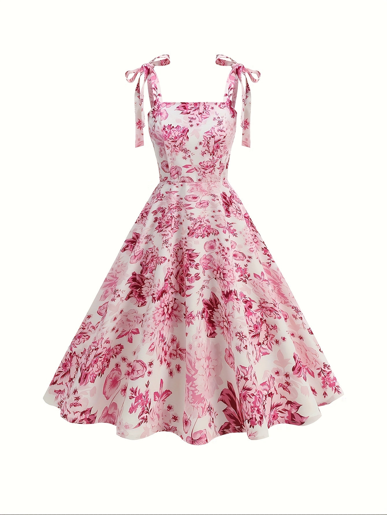 Women's Vintage Floral Print Dress - Elegant Square Neck, Machine Washable
