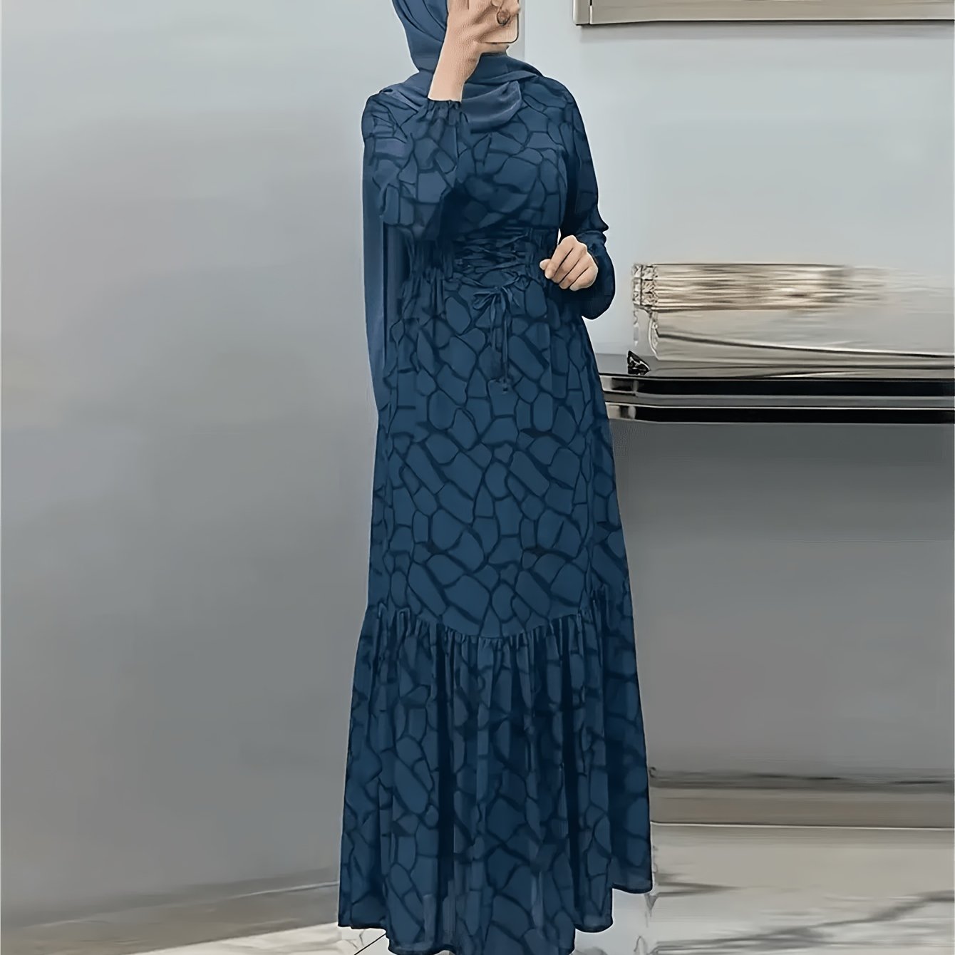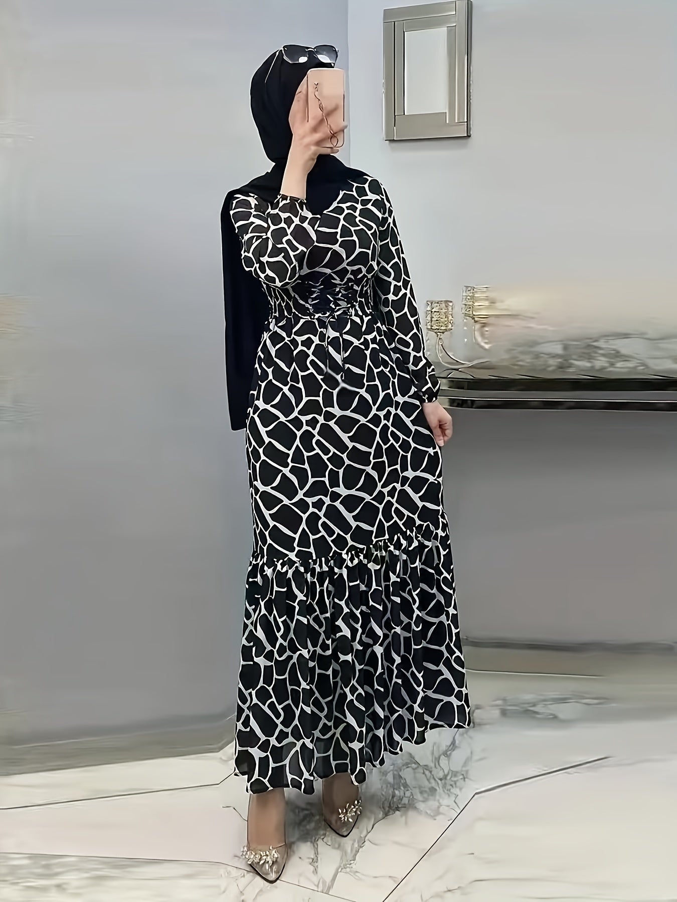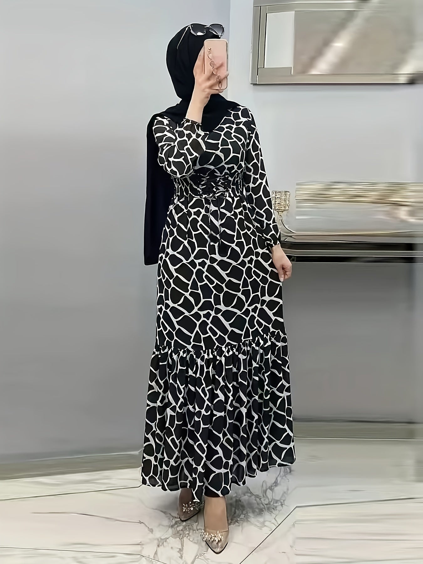 Discover the perfect blend of elegance and comfort with our Women's Spring and Autumn Casual Long Printed Arabic Dress. Crafted from 95% polyester, this dress features a chic geometric pattern, offering a stylish look ideal for various occasions throughout the year.