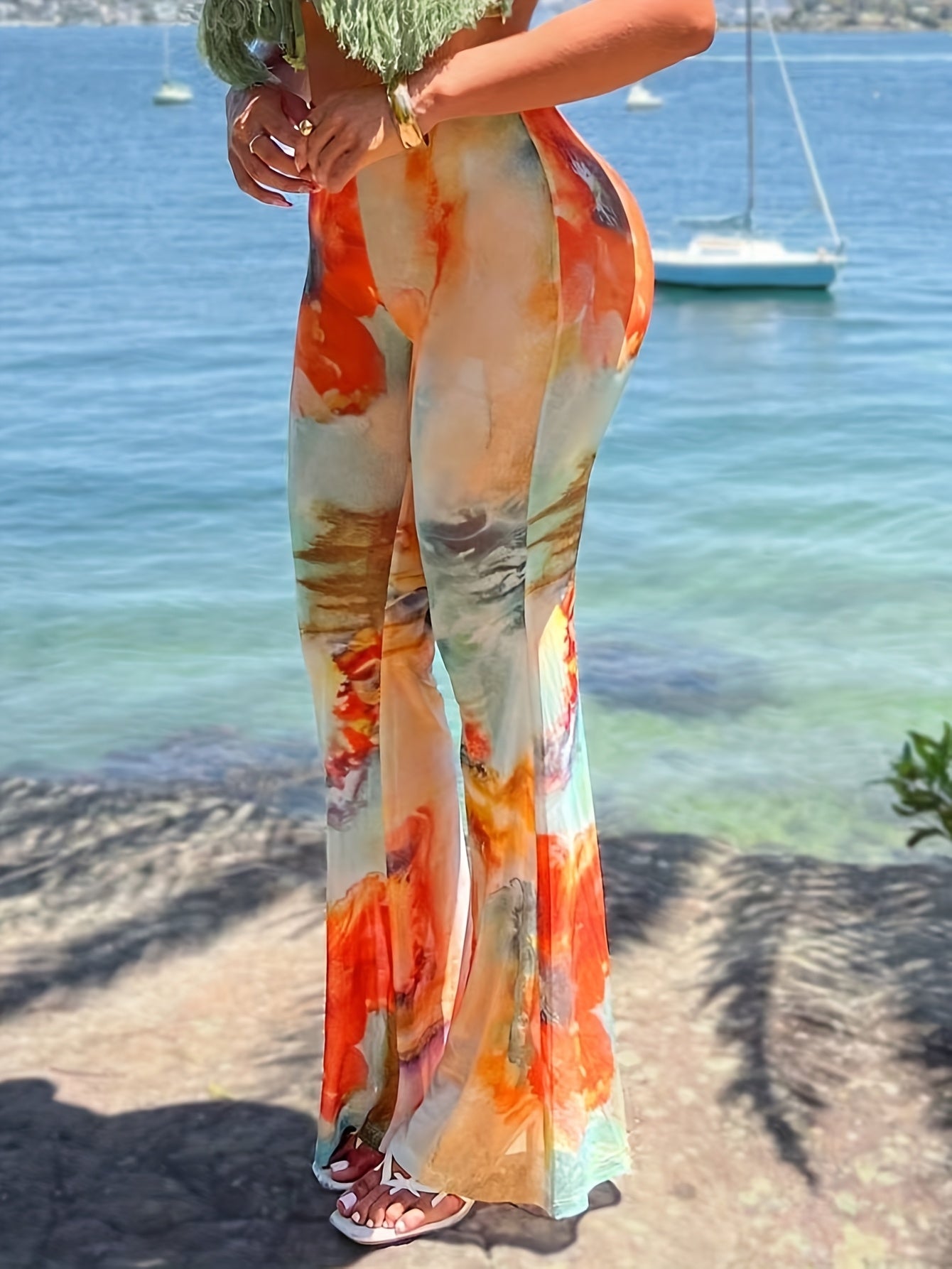High-Waisted Floral Print Wide-Leg Pants - Vibrant Summer Beach Attire