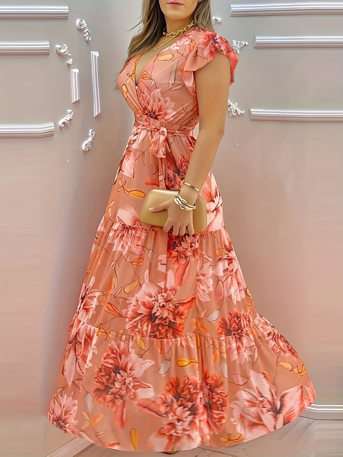 Discover the perfect blend of style and comfort with this Women's New V-Neck Chiffon Print Dress. Its elegant floral design and micro elastic fabric ensure you look chic while enjoying unrestricted movement. Whether attending a garden party or just a casual day out, this dress offers versatility along with an effortlessly polished appearance. Machine wash or professional dry clean for hassle-free maintenance, making this your go-to dress for every occasion.