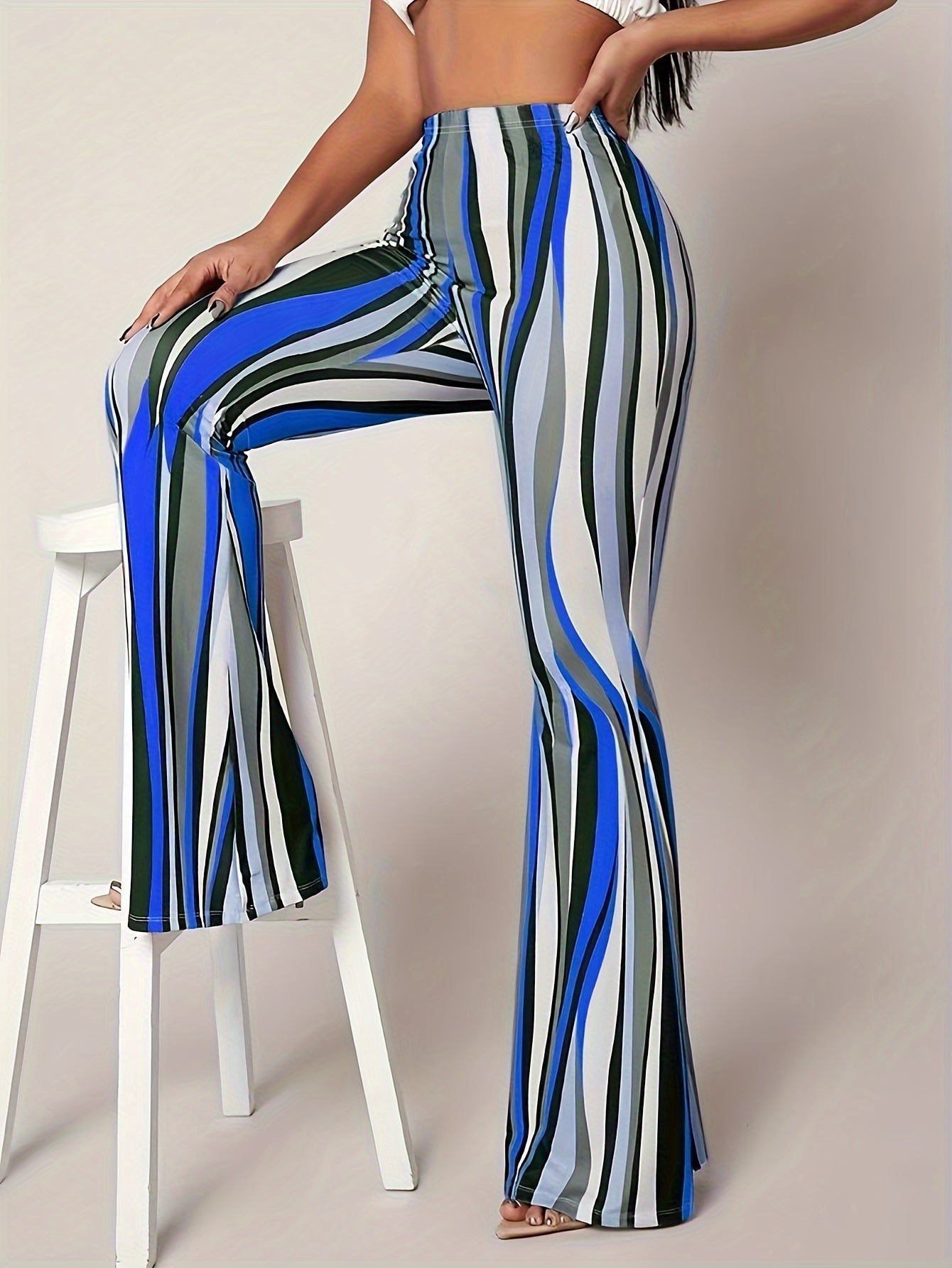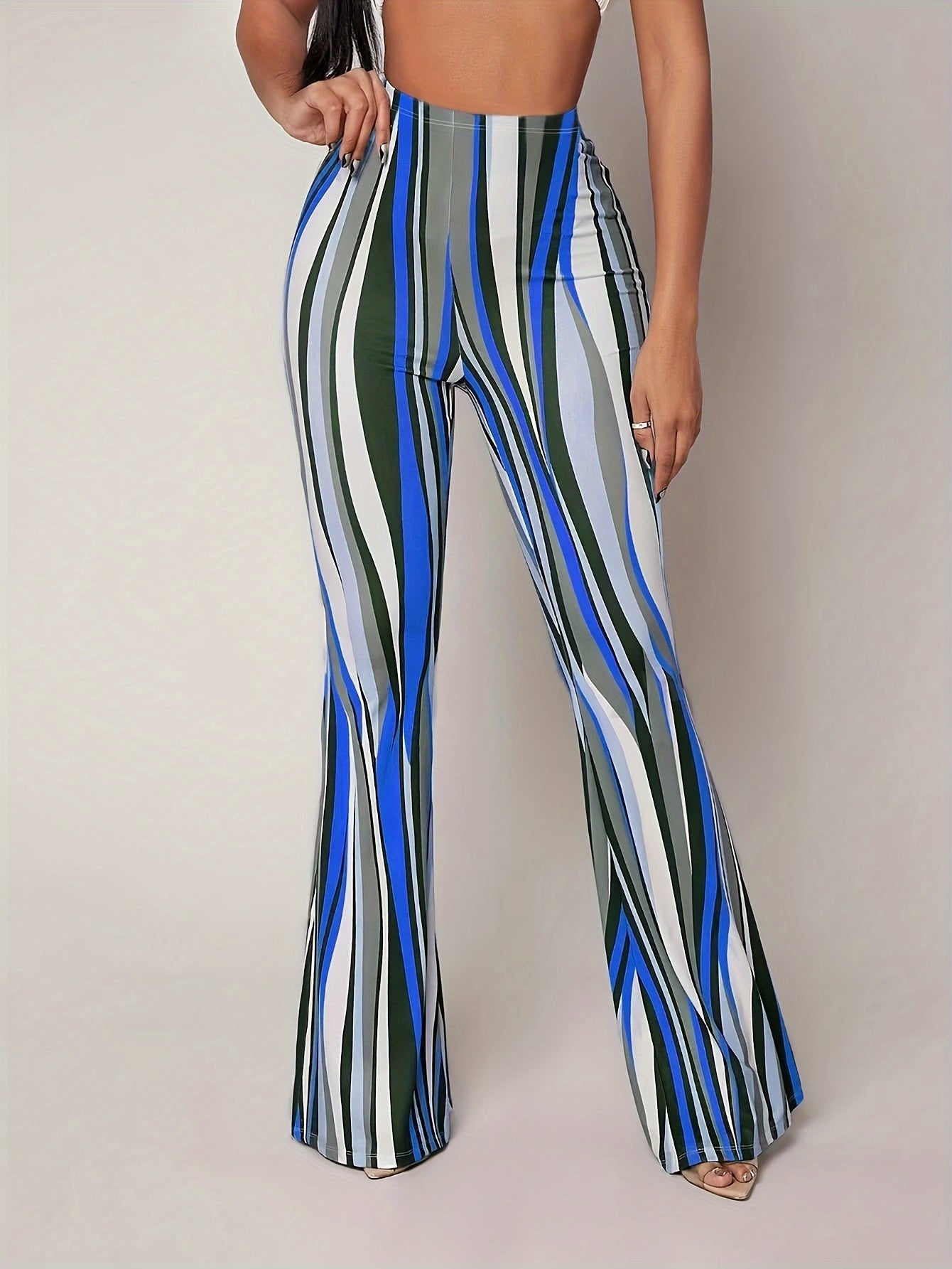 Discover the perfect blend of style and comfort with our Women's High-Waisted Flare Pants. Designed with a chic striped print, these pants transition seamlessly from casual outings to more formal events. The stretchy fabric ensures a comfortable fit, while the high-waisted style enhances your natural shape. Step out in confidence and make a statement with these must-have flare pants!