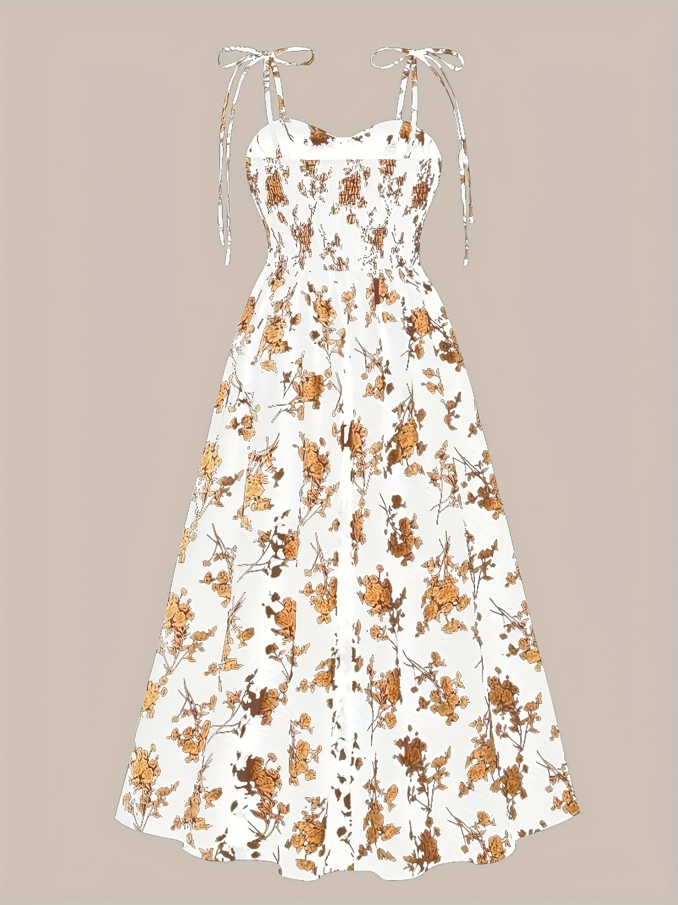 Introducing the Women's Elegant Sweetheart Sleeveless Floral Print Sundress, a stunning addition to your wardrobe made from 100% polyester. This beautifully designed sundress features a charming floral print that captures the essence of elegance, perfect for any occasion in all seasons.