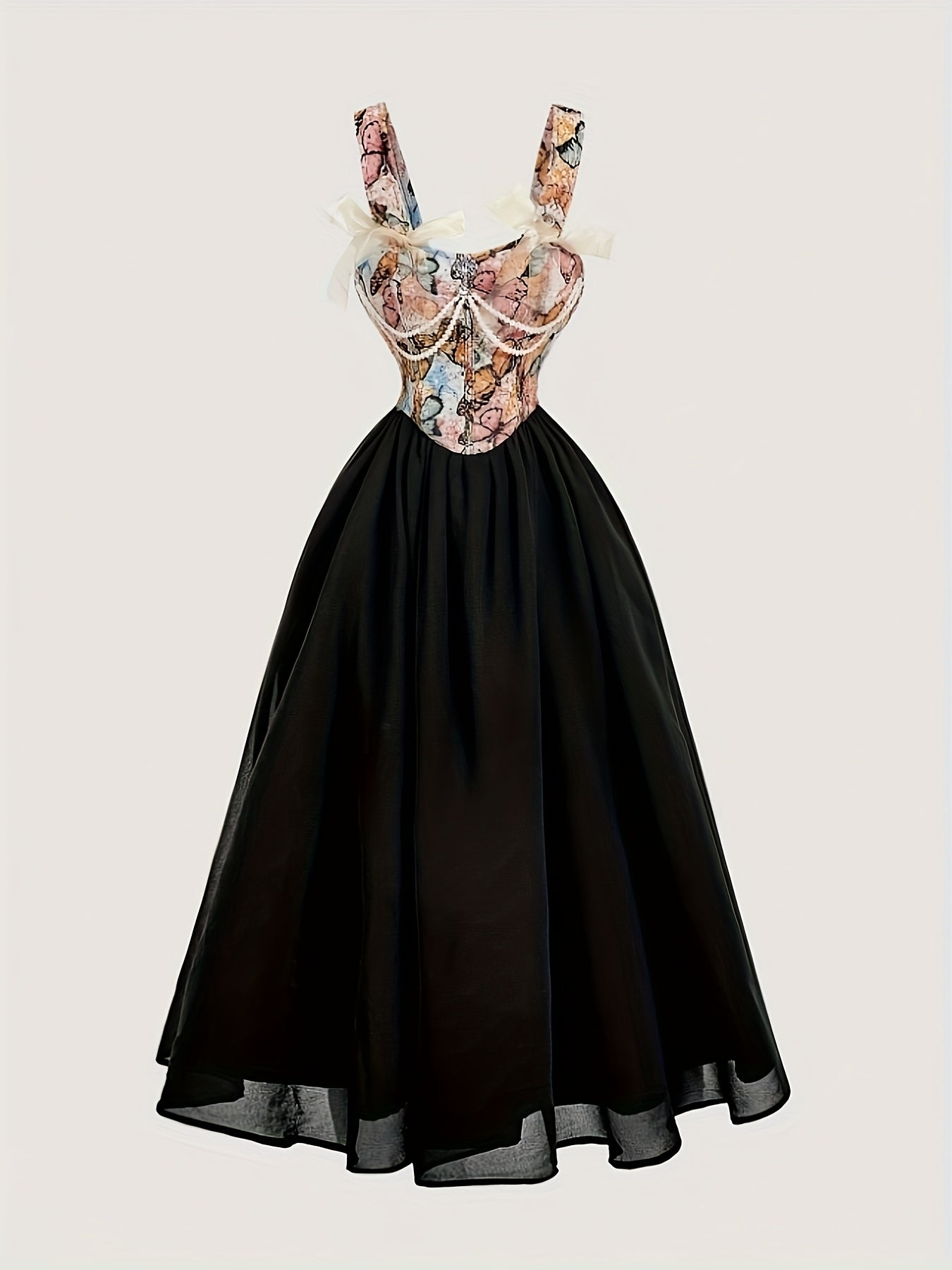 Vintage Floral Jacquard Dress - Elegant Women’s Summer Party Attire