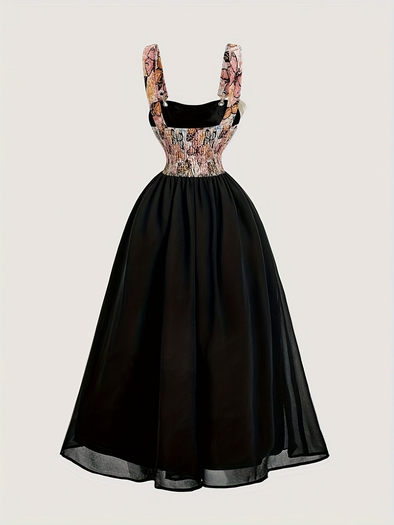Introducing our Vintage Floral Jacquard Dress, the perfect answer to your elegant women’s summer party attire. Crafted from 100% polyester, this exquisite dress features a beautiful floral pattern and a stylish square neck, ideal for making a statement at any occasion.