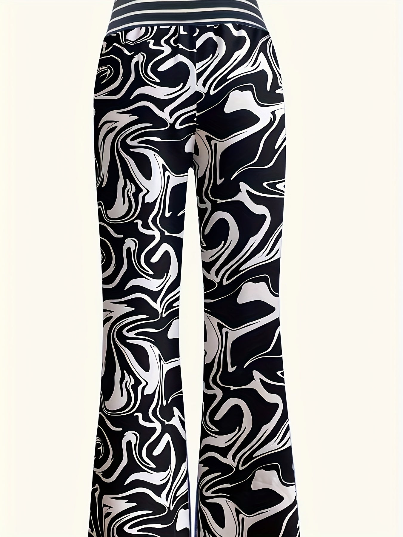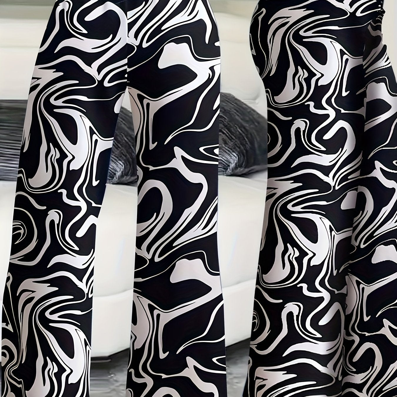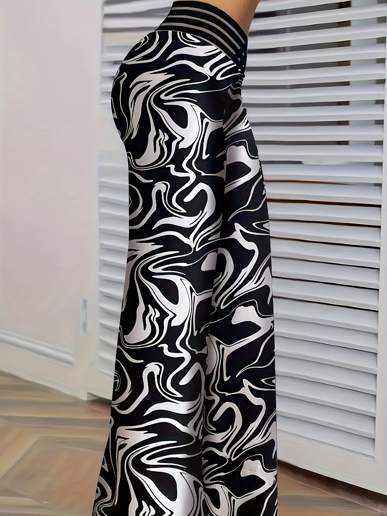 Elegant High-Waisted Black & White Abstract Print Wide-Leg Pants