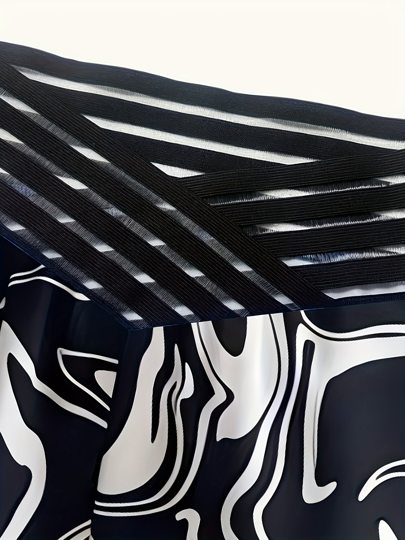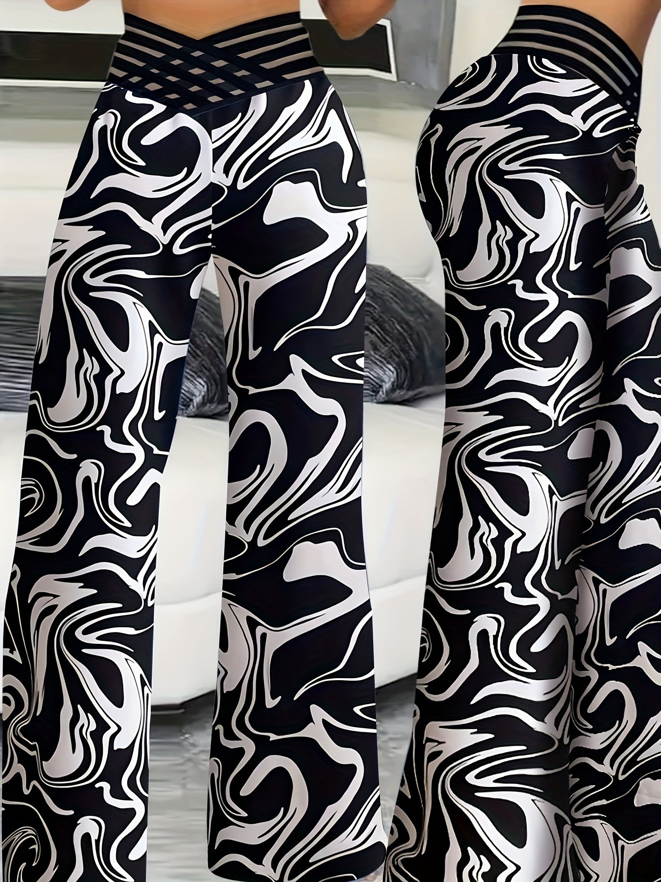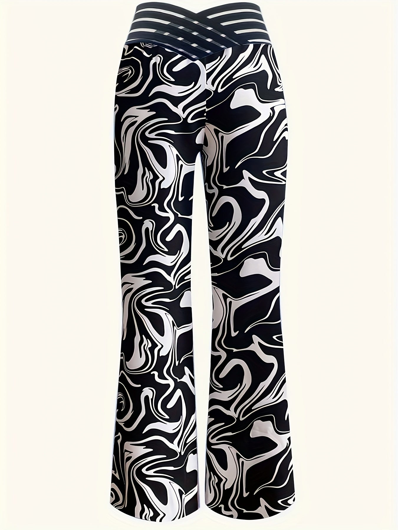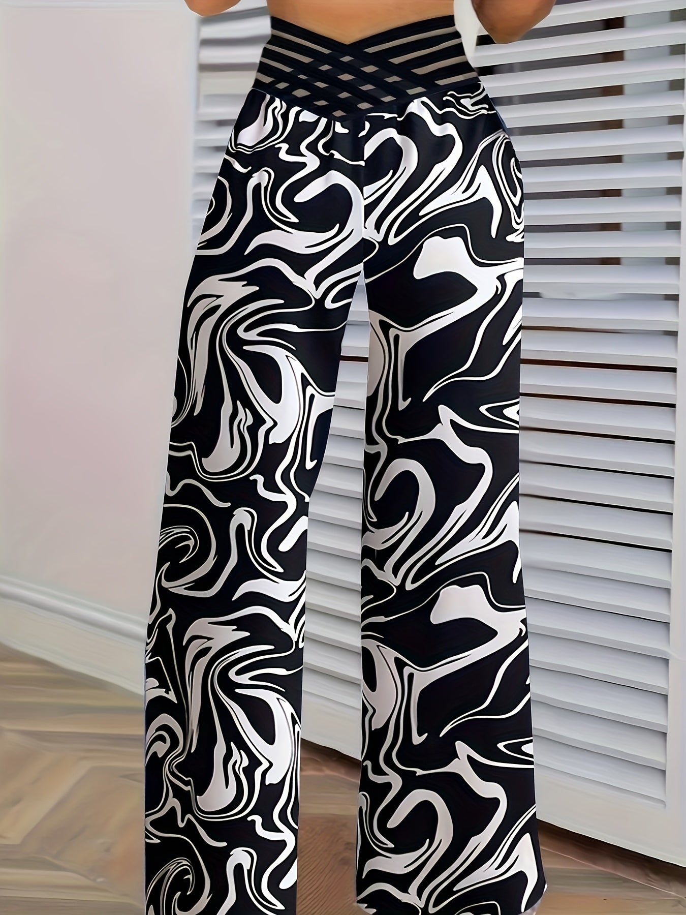 Elegant High-Waisted Black & White Abstract Print Wide-Leg Pants
