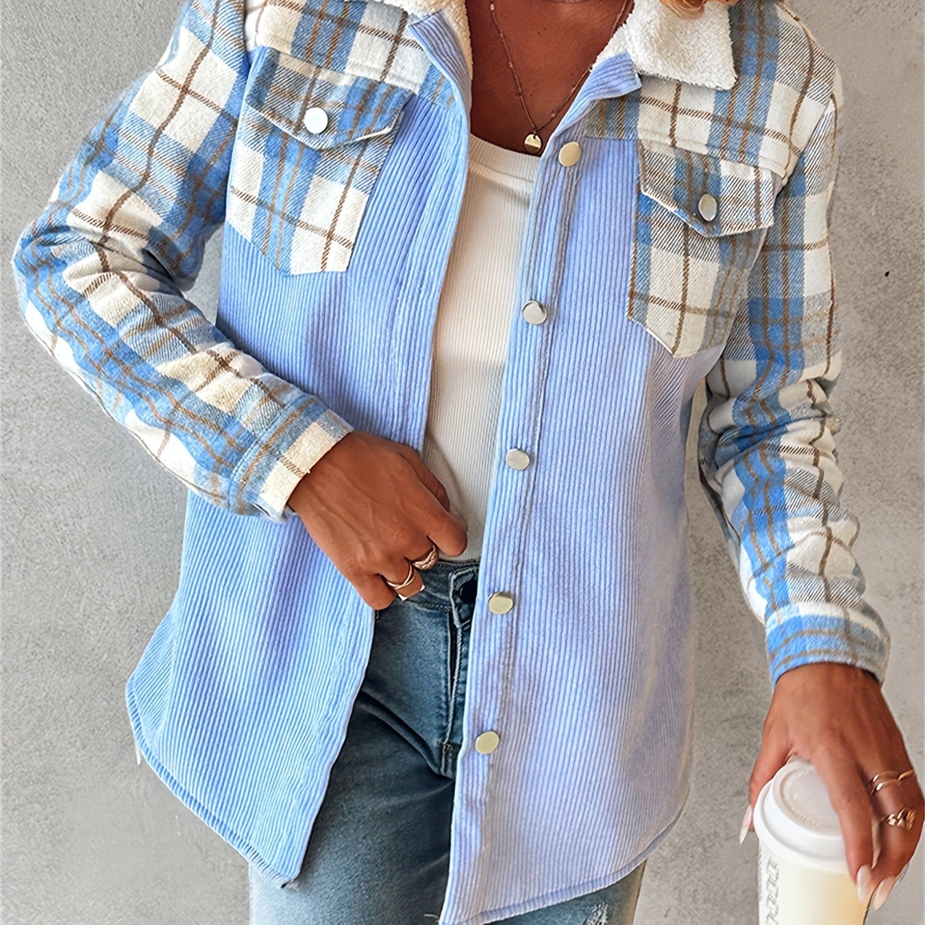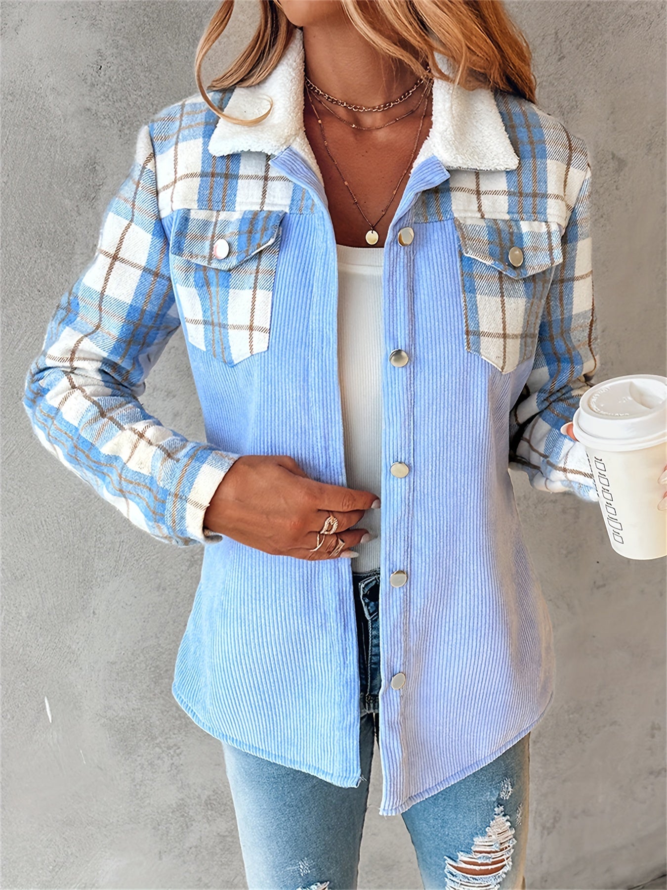 Women's Plaid Corduroy Jacket - Fleece Lining for Cozy Fall Style