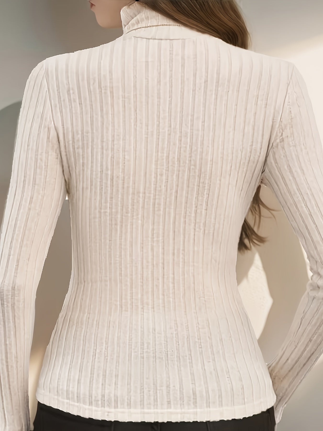 Women's Elegant High Neck Slimming Top - Solid Knit for Fall/Winter