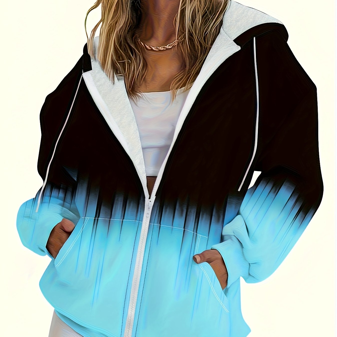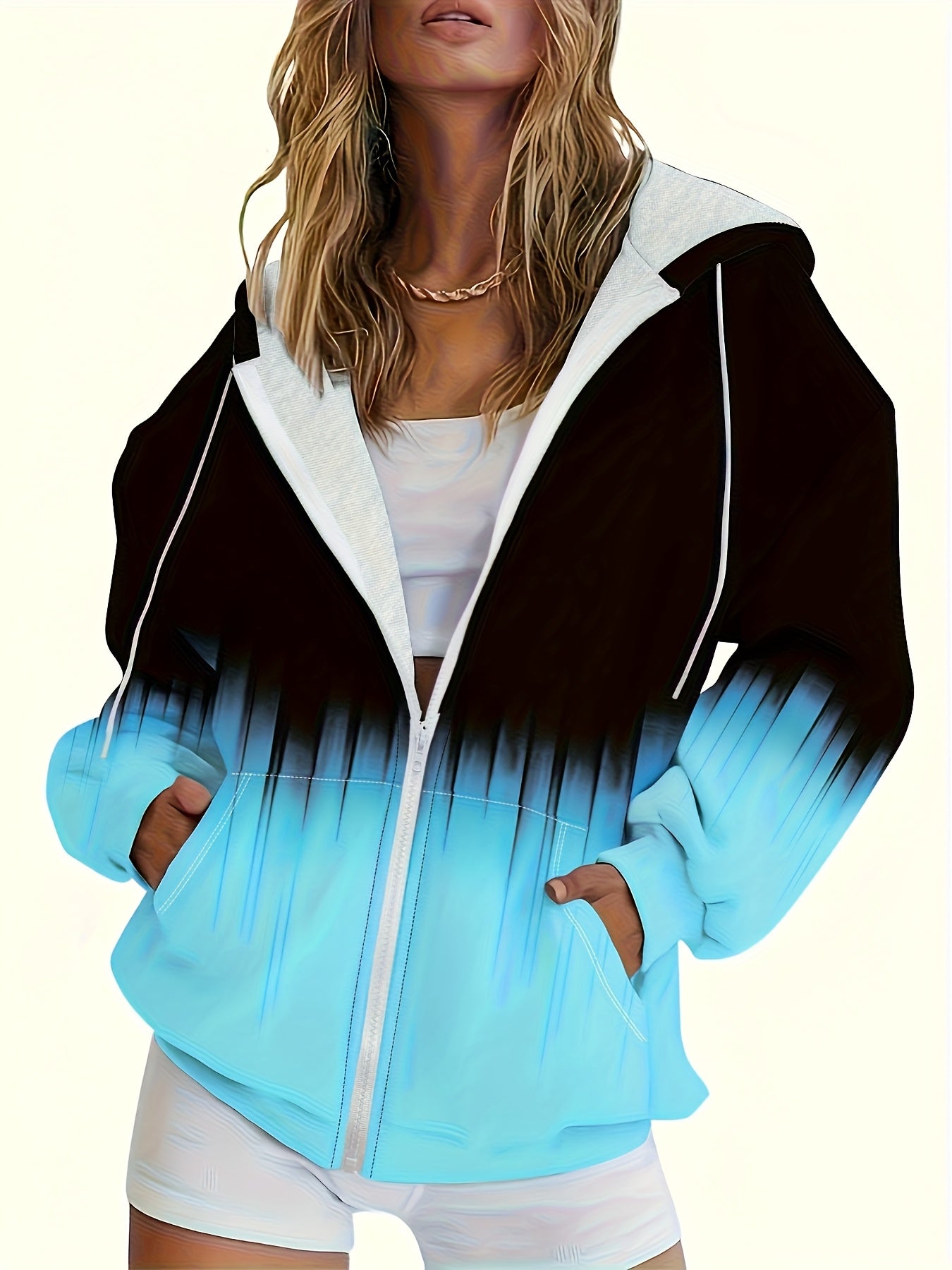 Women's Zip-Up Hoodie Cardigan Jacket - Ombre Design, Side Pockets