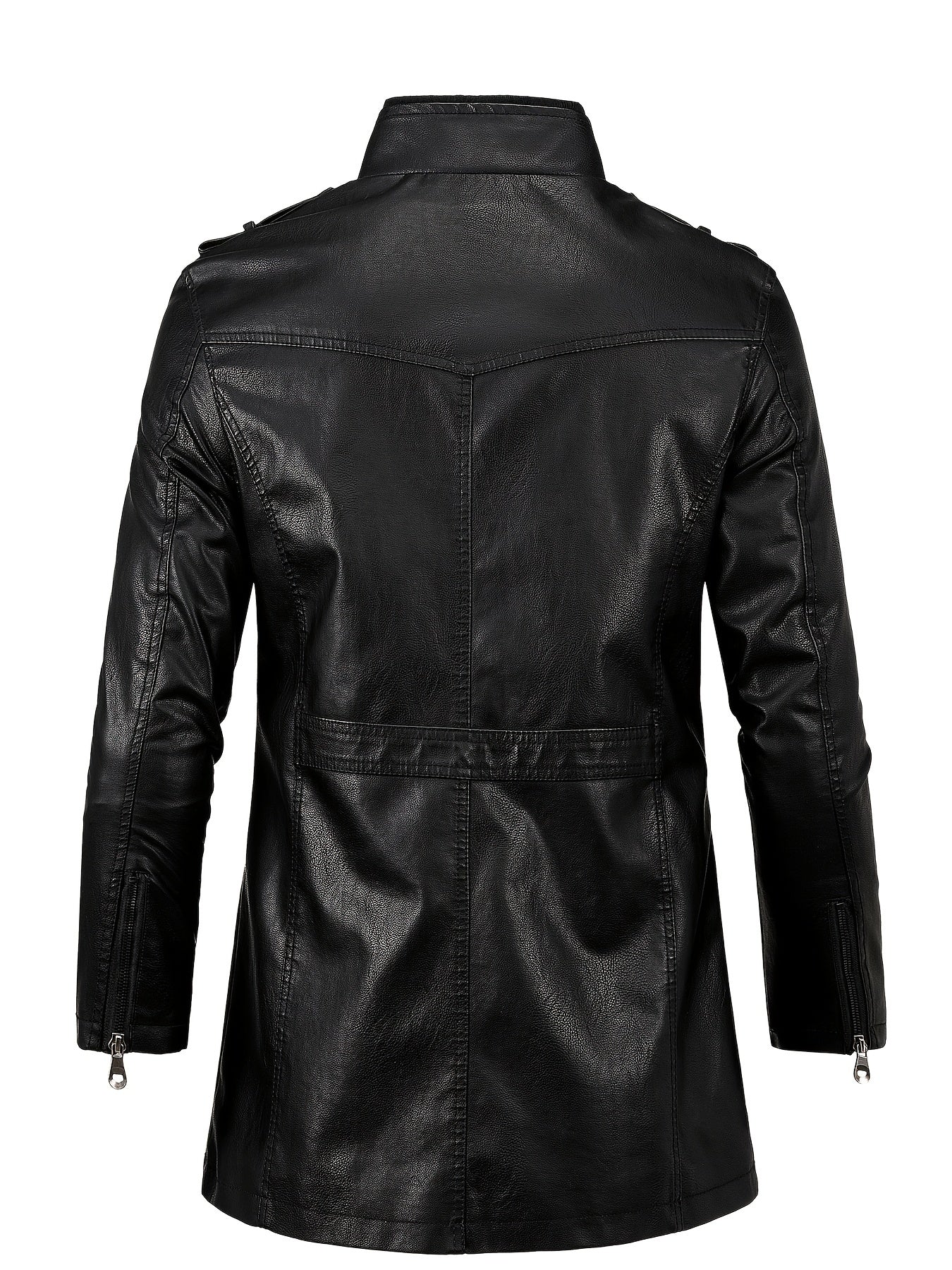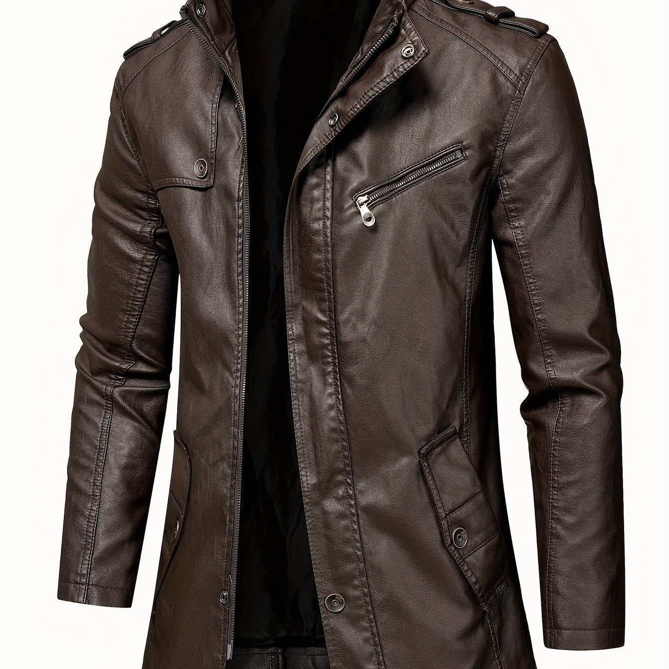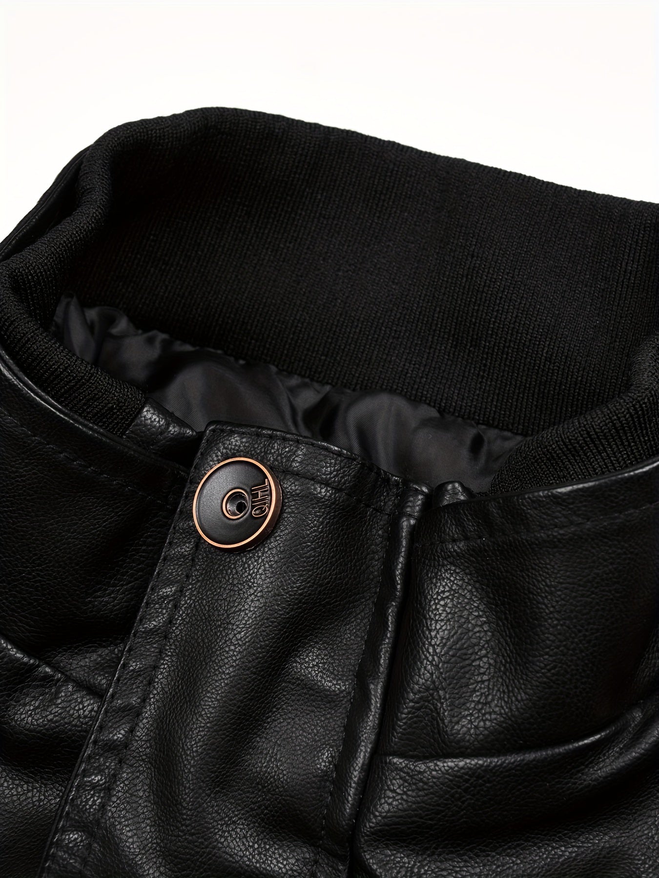 Men's Faux Leather Jacket - Stylish Zipper Pockets, Stand Collar