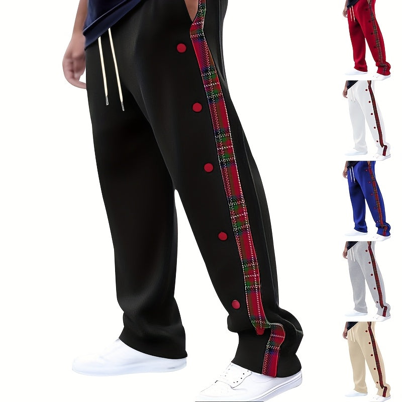 Men's Retro Casual Joggers - Festive Plaid Stripe, Comfortable Fit