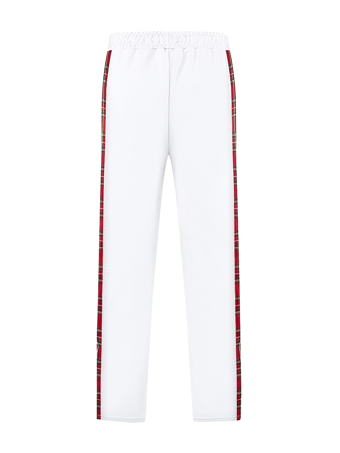 Elevate your casual wardrobe with our Men's Retro Casual Joggers, featuring a festive plaid stripe that adds a touch of vibrant style. Made from 100% polyester, these joggers offer a comfortable fit and slight stretch for ease of movement, making them perfect for any casual outing.