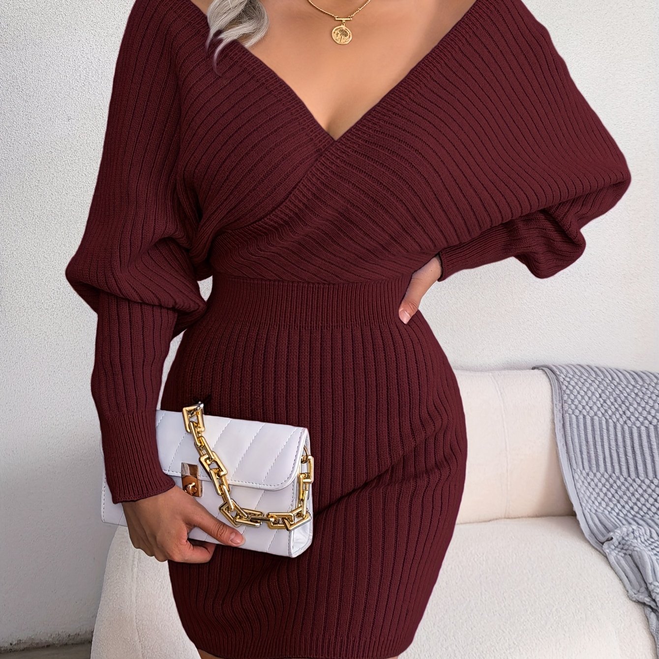 Introducing the Autumn and Winter Casual Elegant Sexy Cross V-Neck Batwing Dress, a stunning addition to your wardrobe designed to keep you stylish and comfortable during the colder months. Made from 100% acrylic, this fitted sweater dress features a chic cross v-neck design and a flattering bodycon fit.
