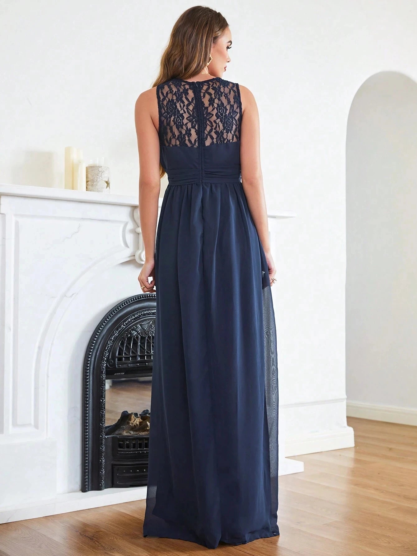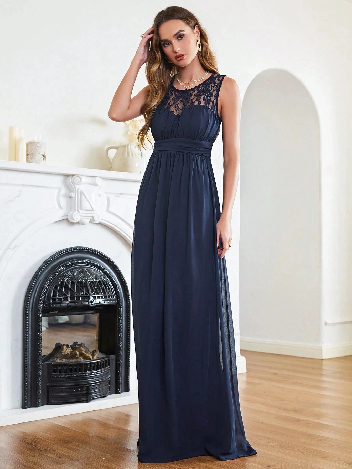 BABYONLINE A-Line Bridesmaid Dress - Ruched Waist & Lace Detail