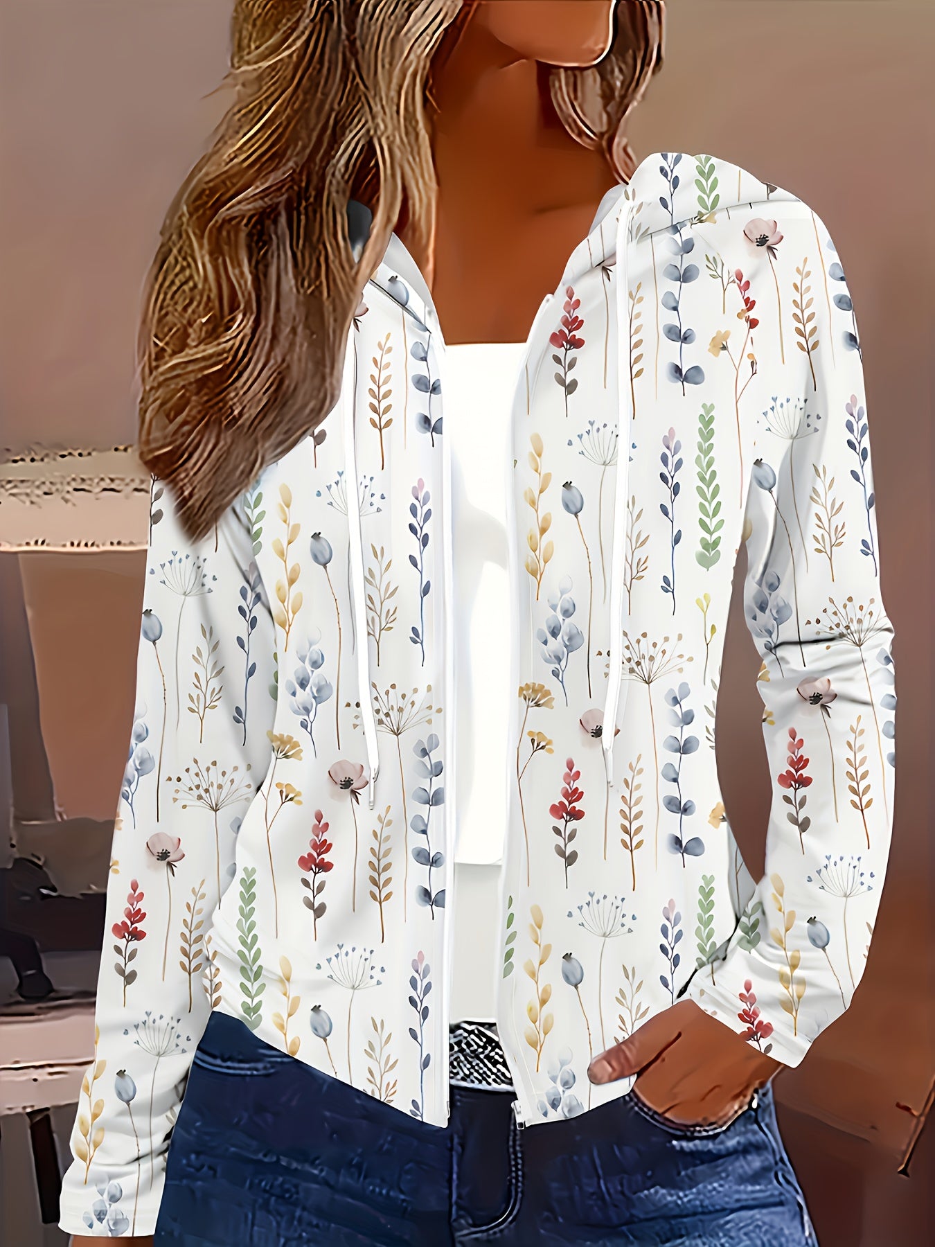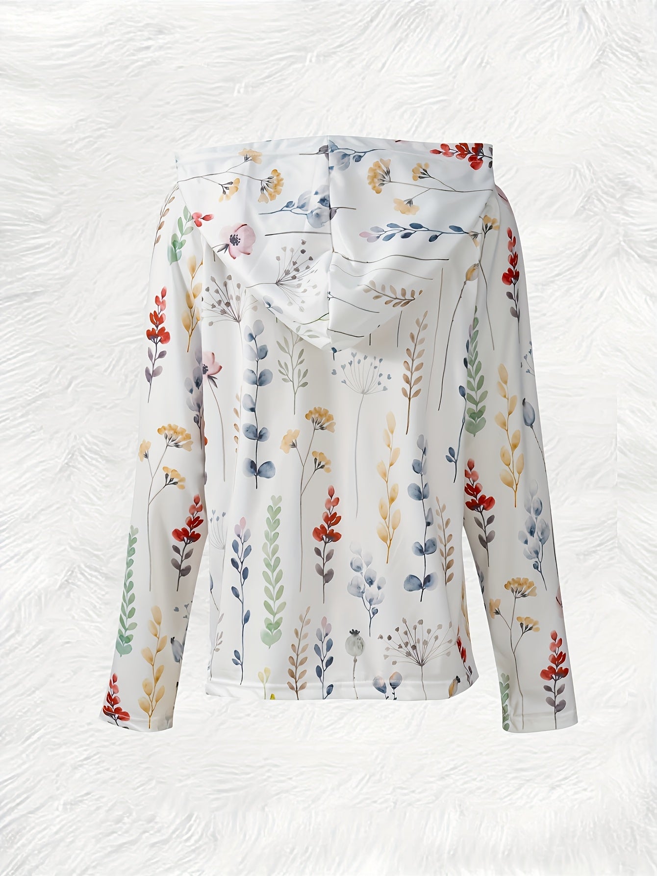 Women's Floral Print Hooded Jacket - Lightweight Spring/Fall Outerwear