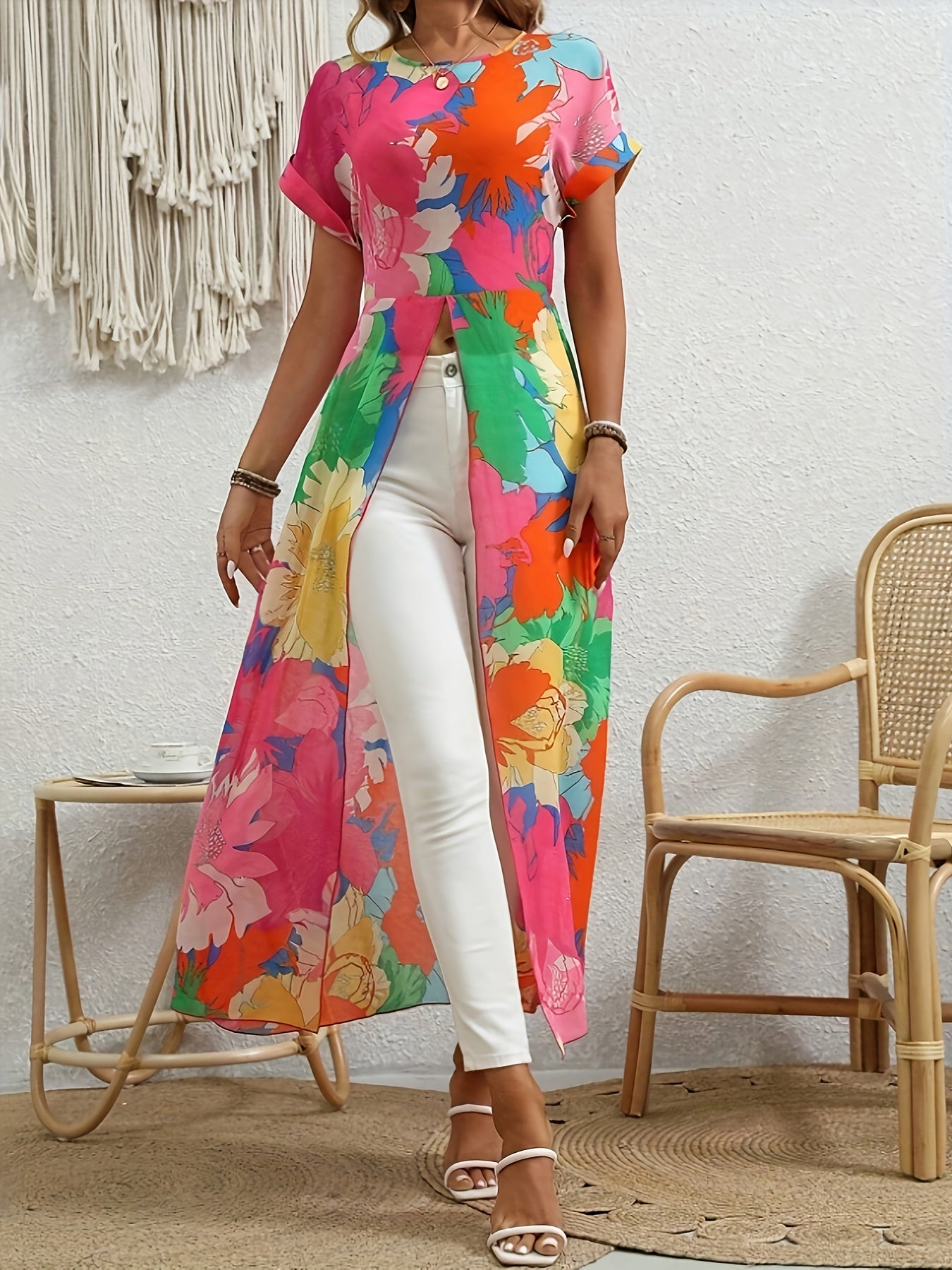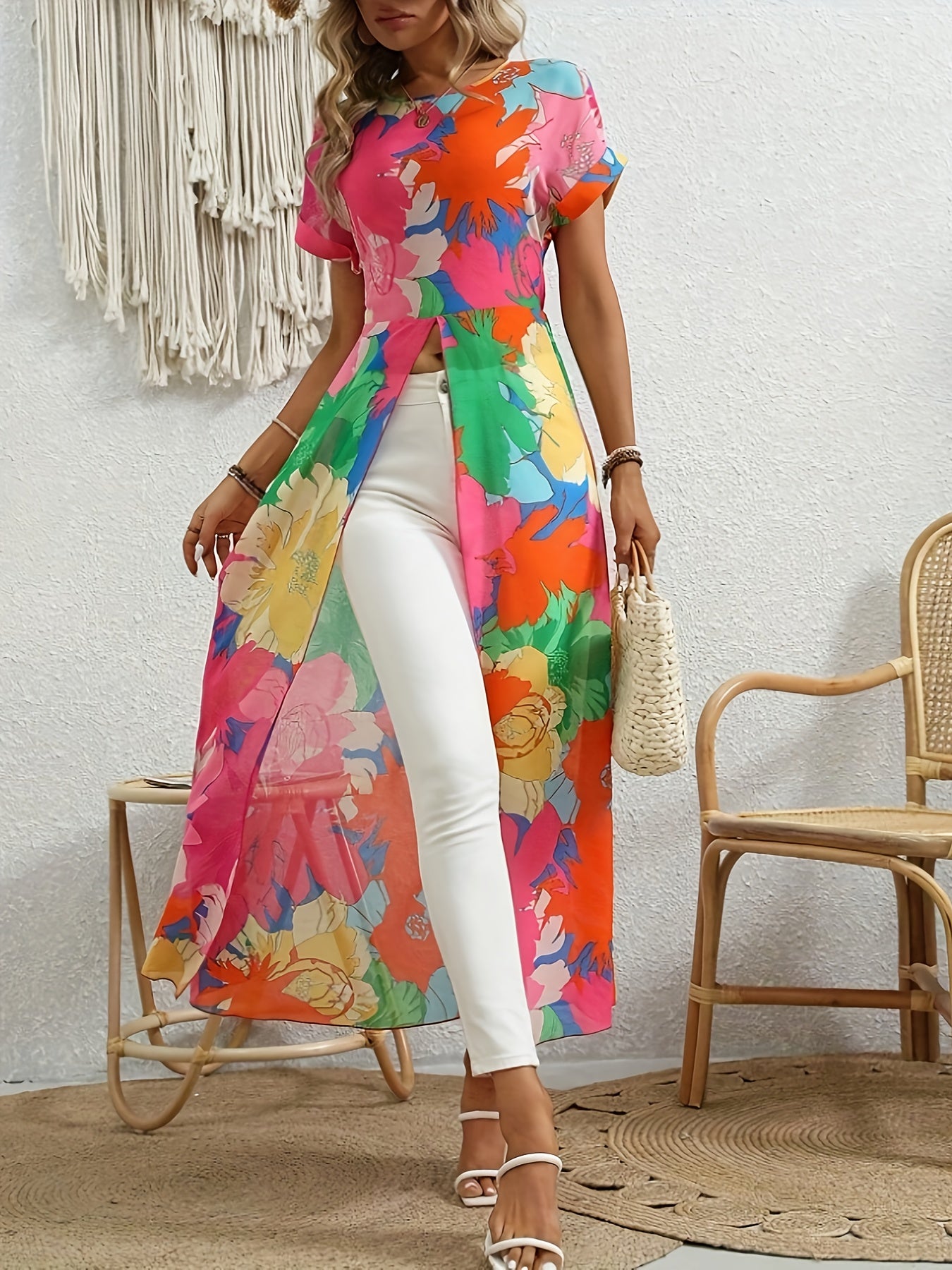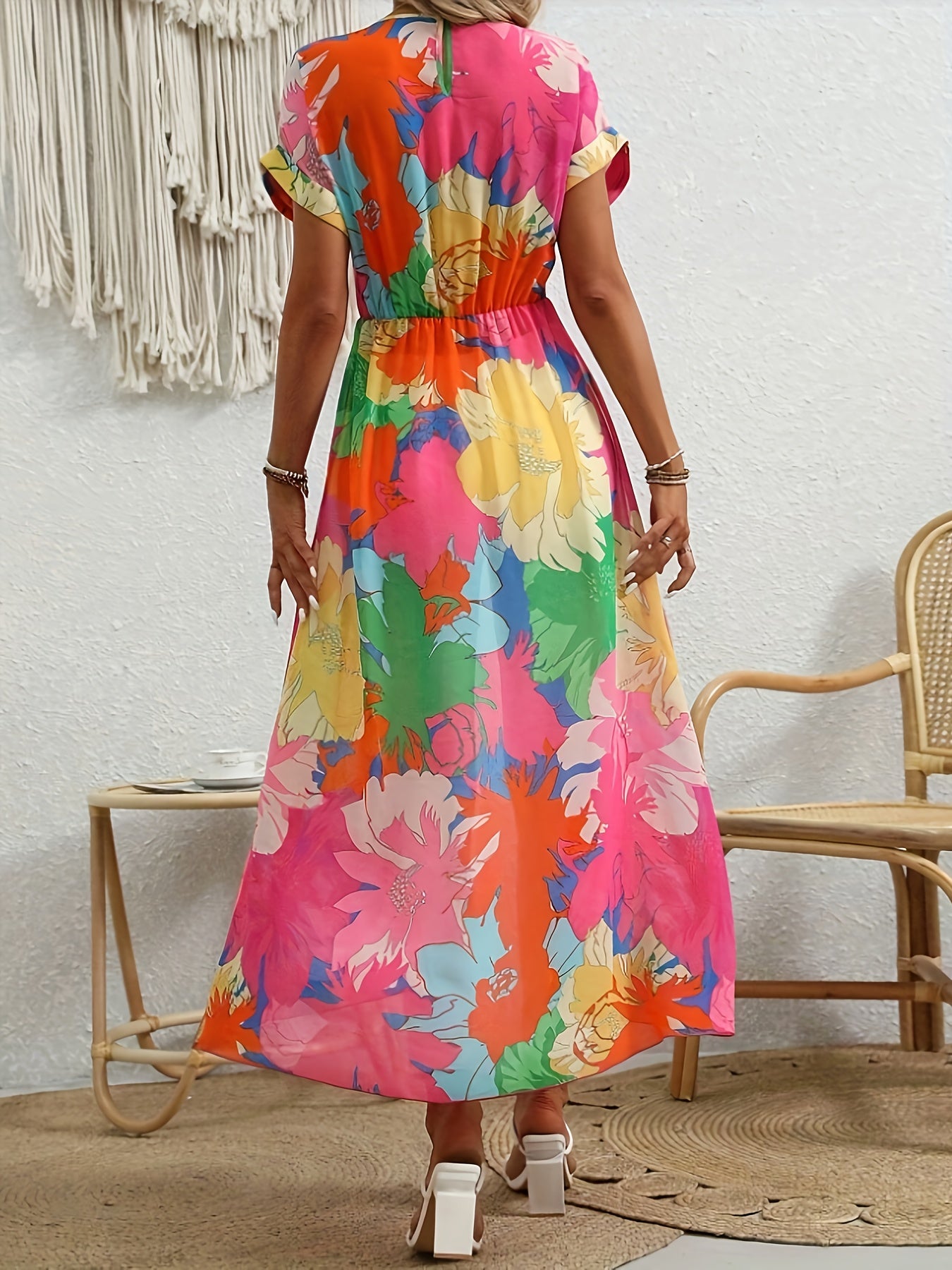 Elevate your wardrobe with the Vibrant Print Maxi Dress, the ultimate choice for those who appreciate style without sacrificing comfort. This dress is perfect for casual outings, parties, or any elegant occasion. Its unique random printing ensures that you stand out in a crowd. Pair it with your favorite accessories for a complete look that showcases your individuality.