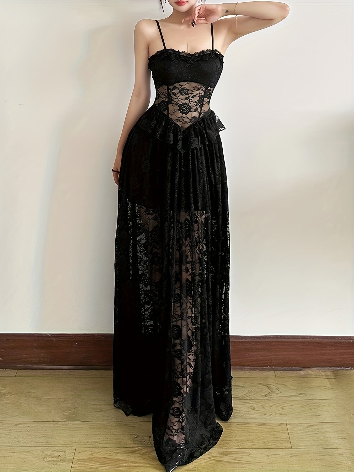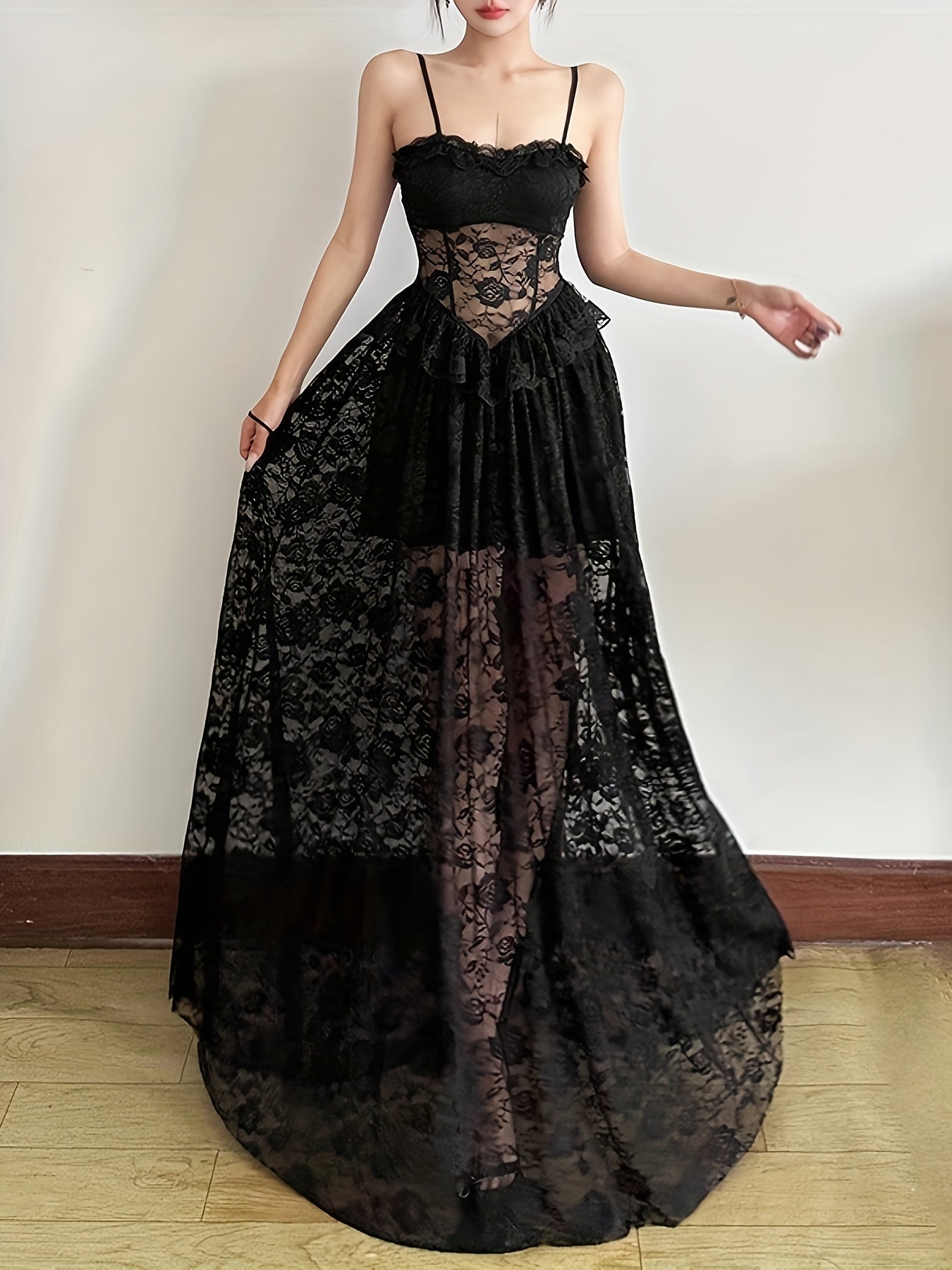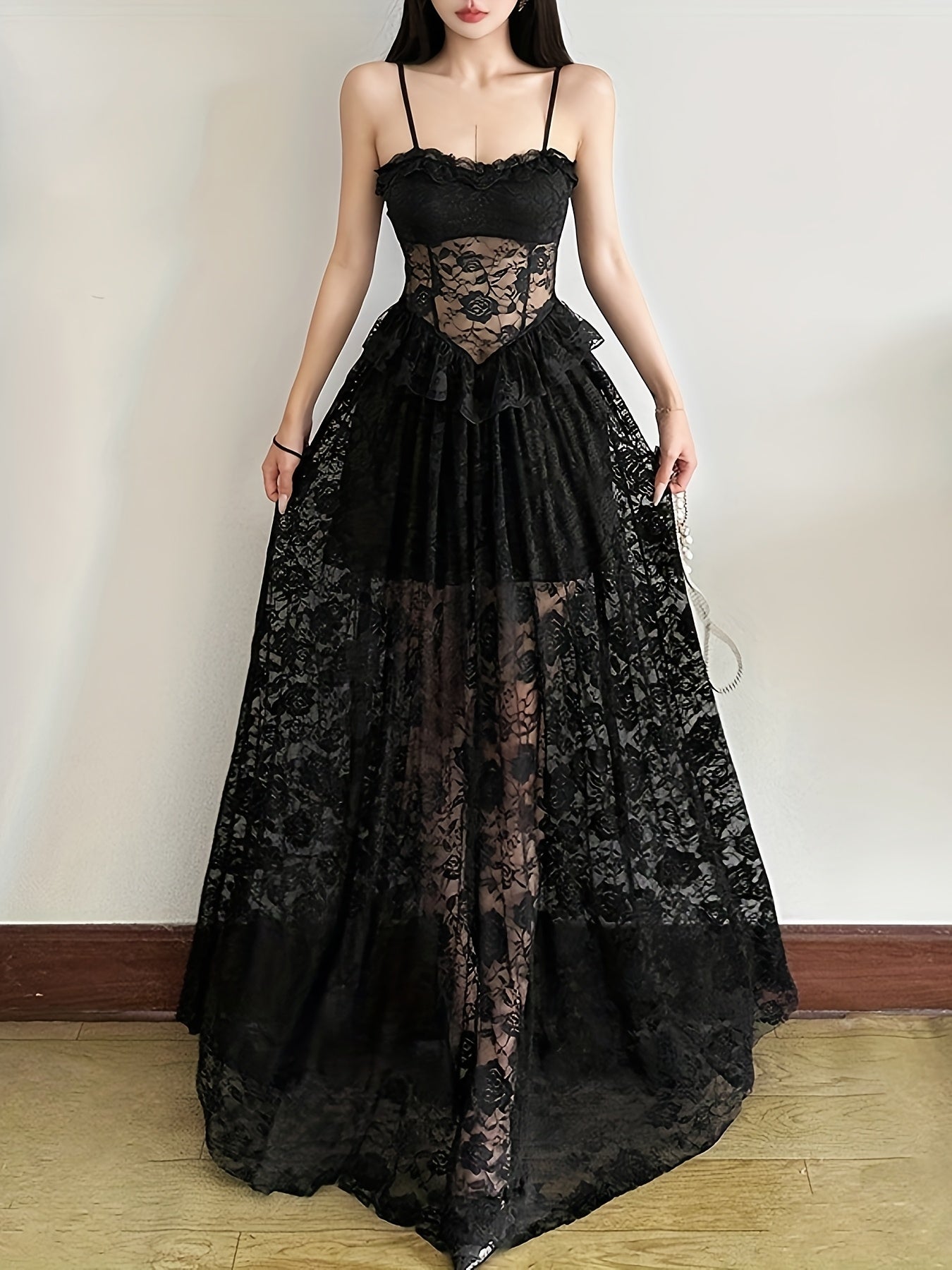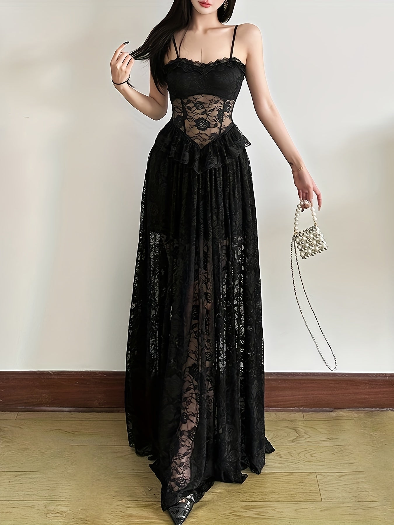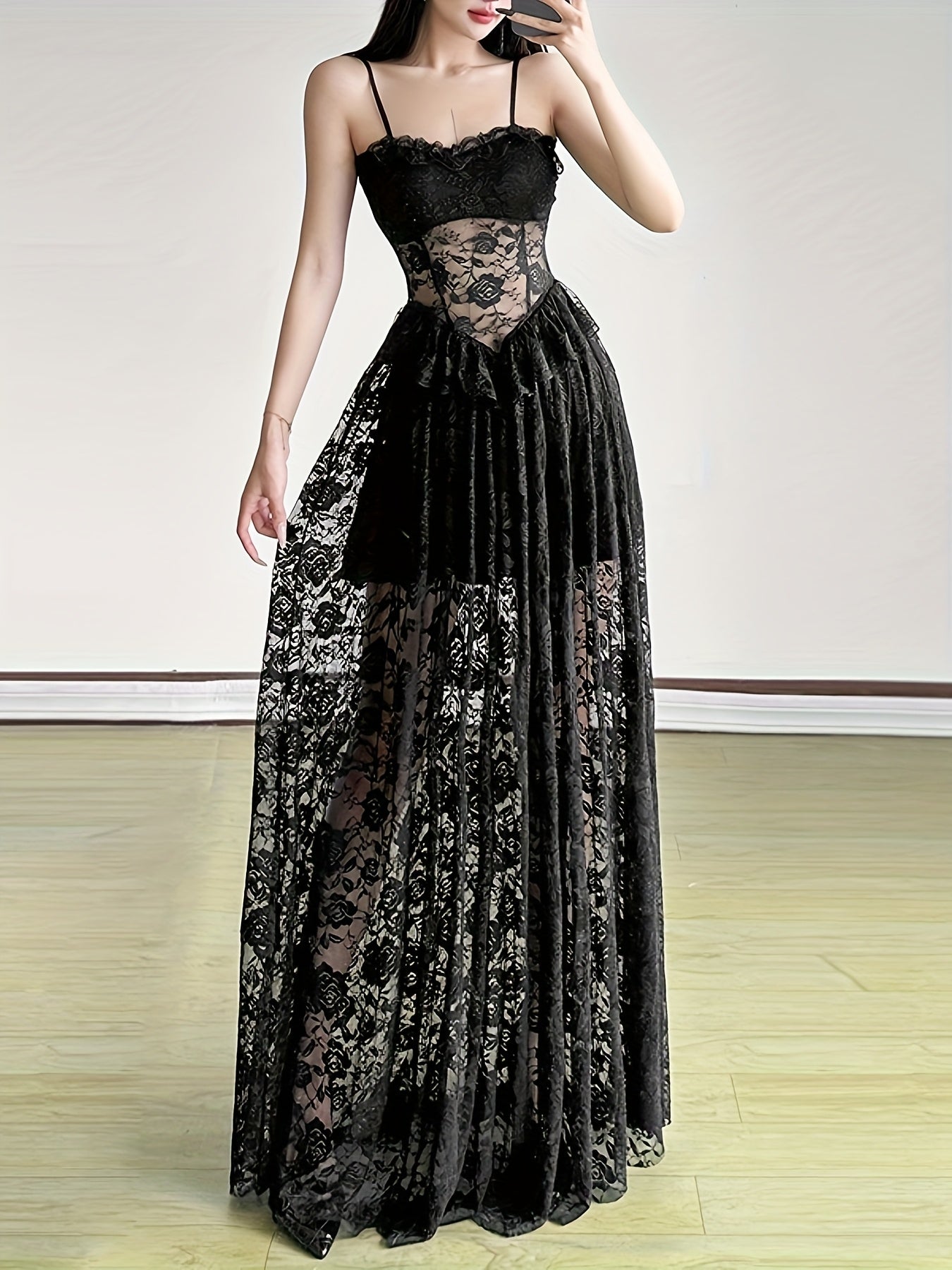 Elevate your wardrobe with this elegant black lace gown, perfect for making a memorable impression at any occasion. From lavish parties to formal events, this dress not only enhances your charm but also offers maximum comfort with its micro elasticity. Make a stylish statement and embrace sophistication with a dress that reflects your inner grace. Ideal for adult women who appreciate quality fashion, this maxi dress ensures you stand out effortlessly.