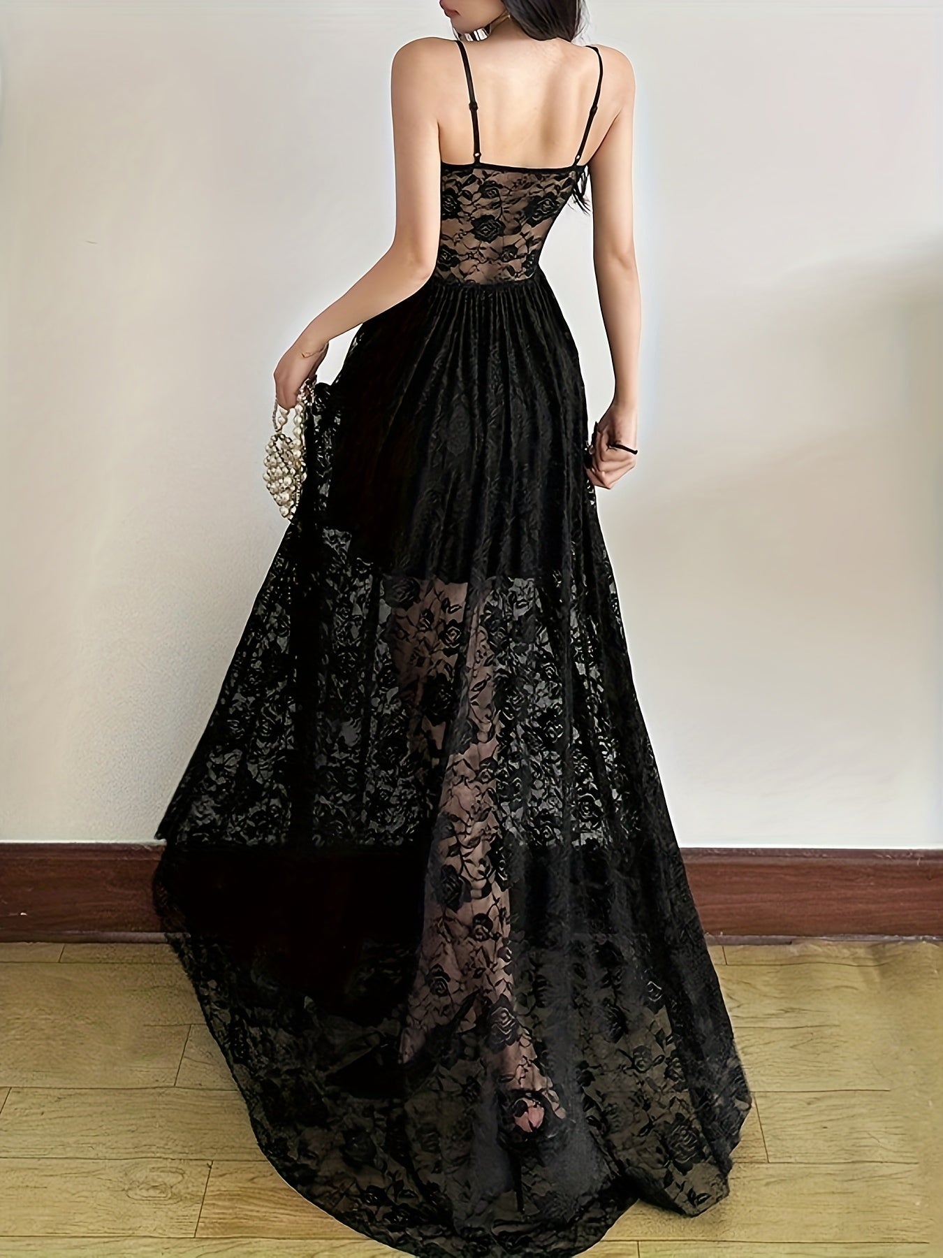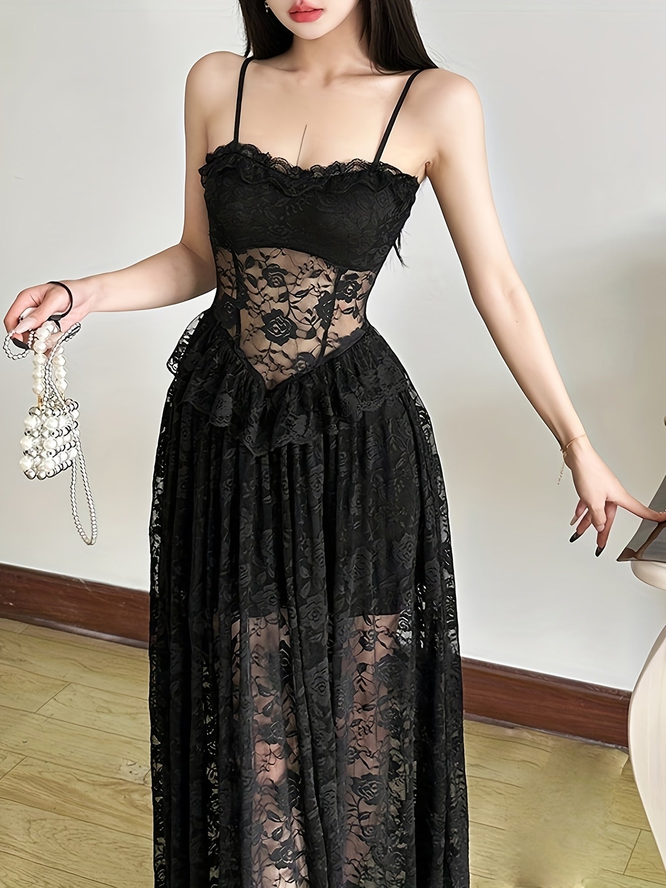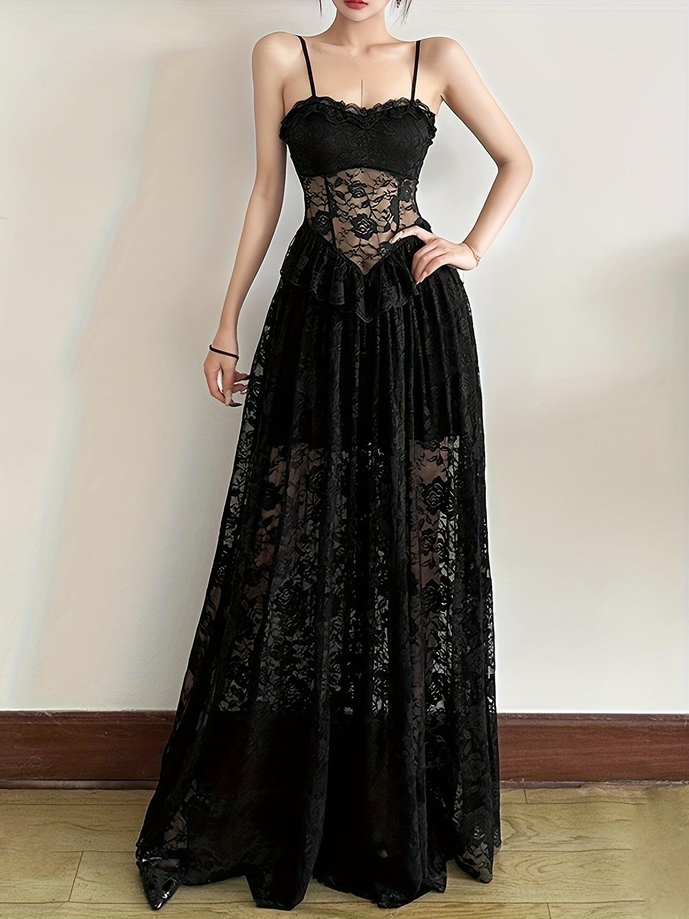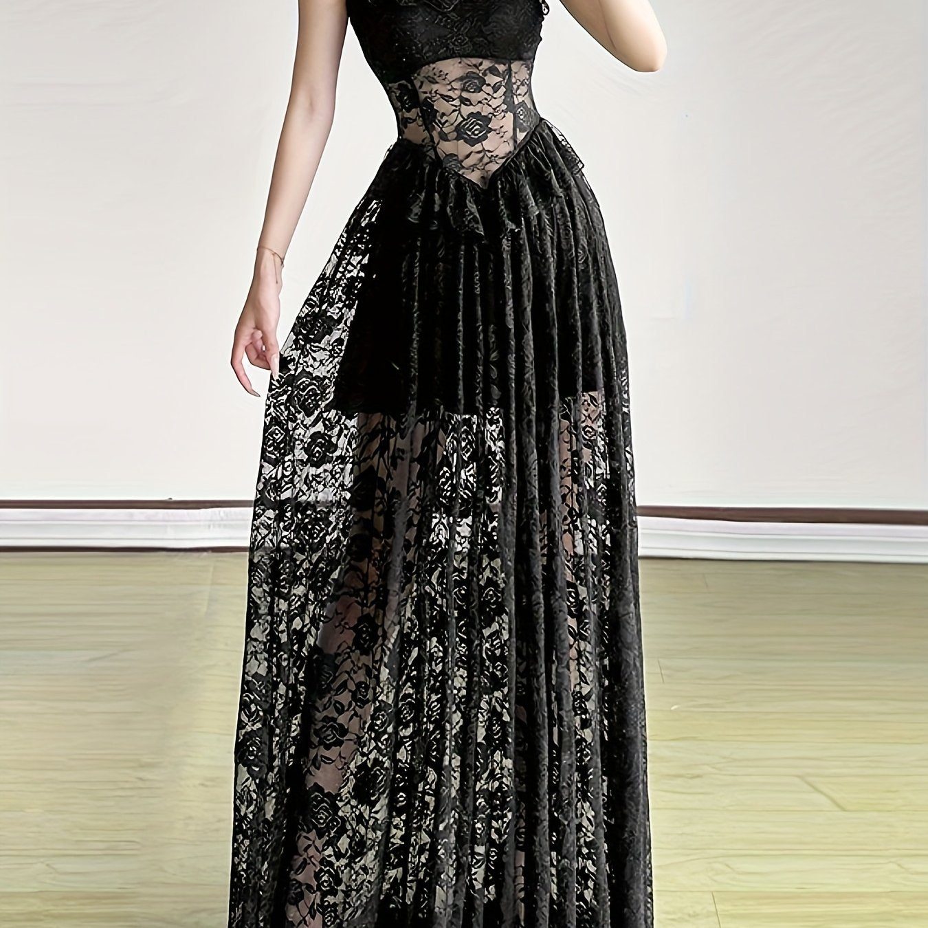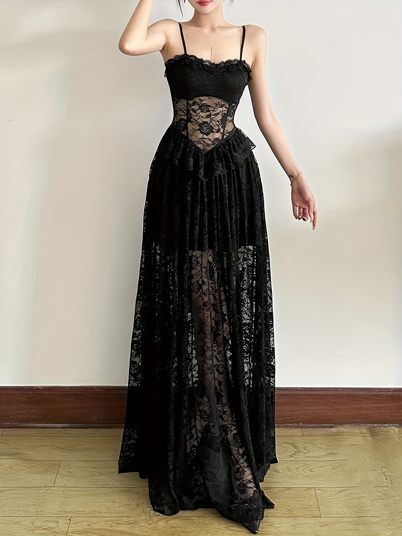 Elevate your wardrobe with this elegant black lace gown, perfect for making a memorable impression at any occasion. From lavish parties to formal events, this dress not only enhances your charm but also offers maximum comfort with its micro elasticity. Make a stylish statement and embrace sophistication with a dress that reflects your inner grace. Ideal for adult women who appreciate quality fashion, this maxi dress ensures you stand out effortlessly.