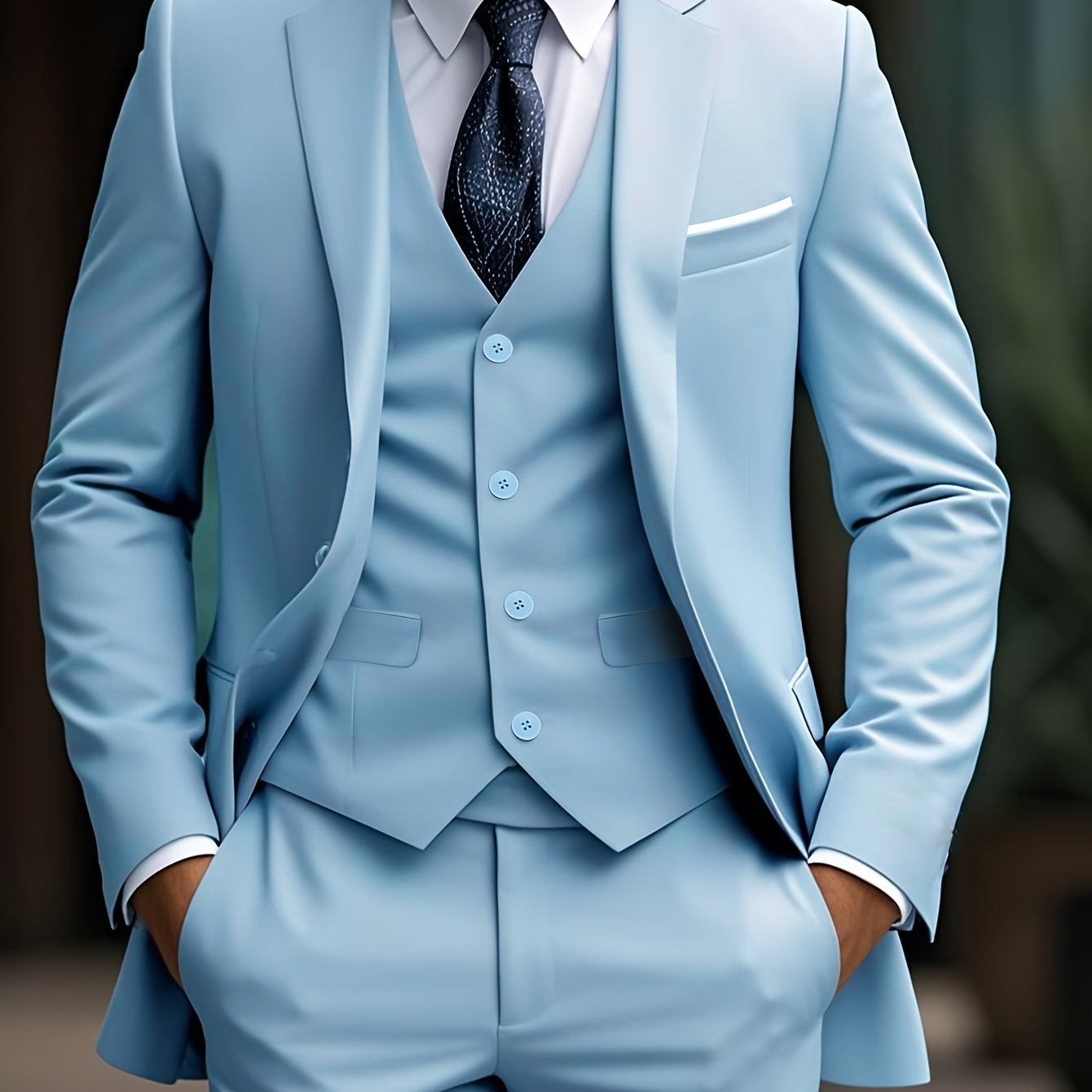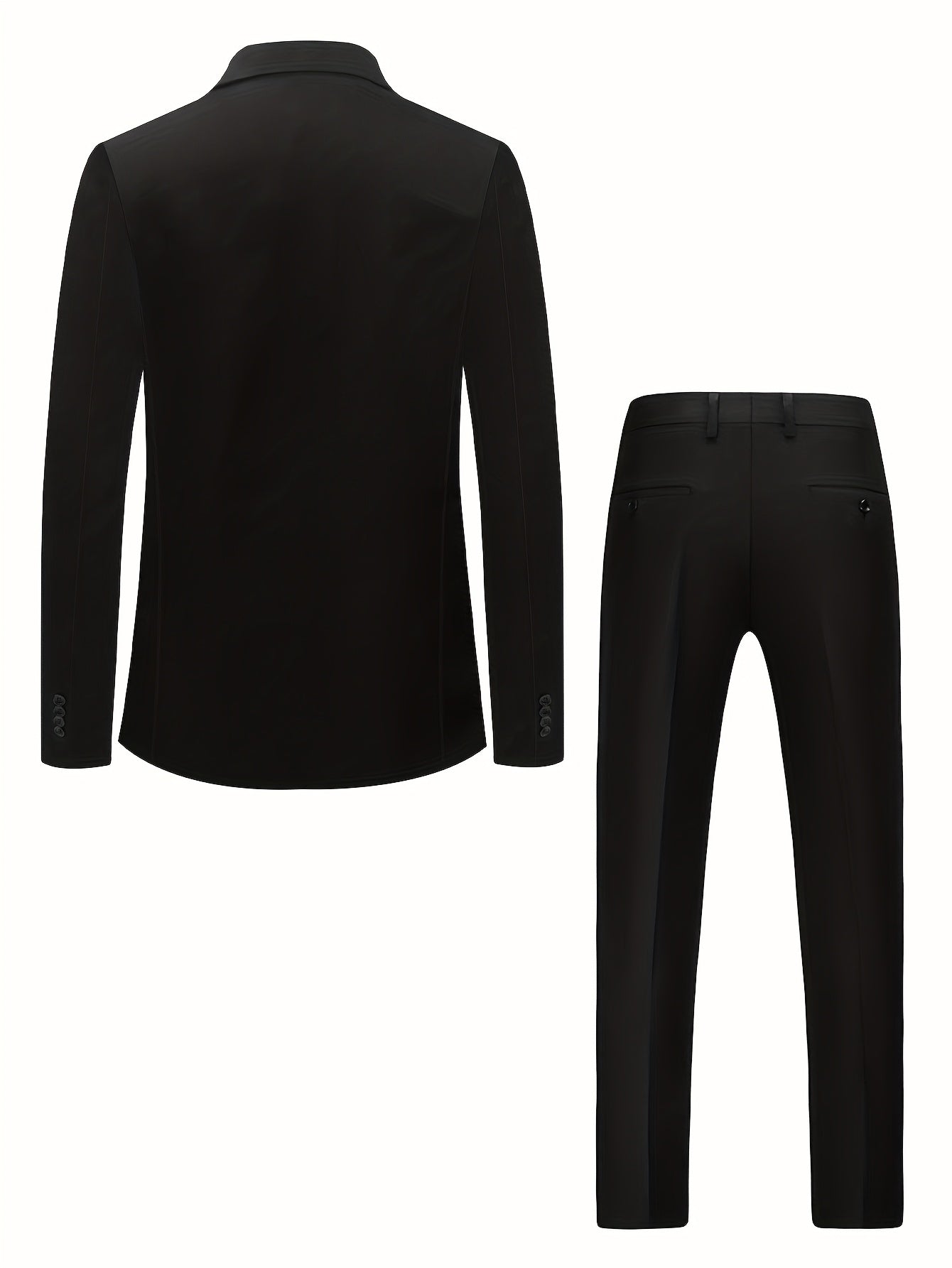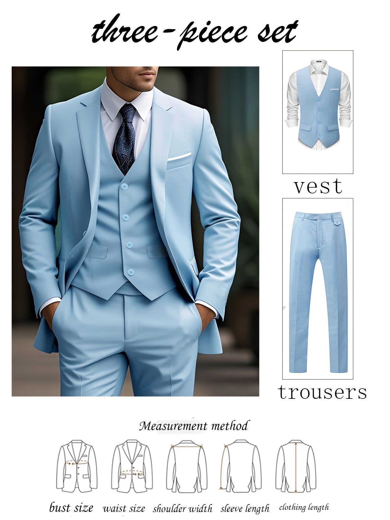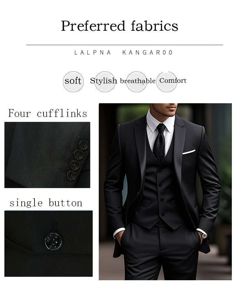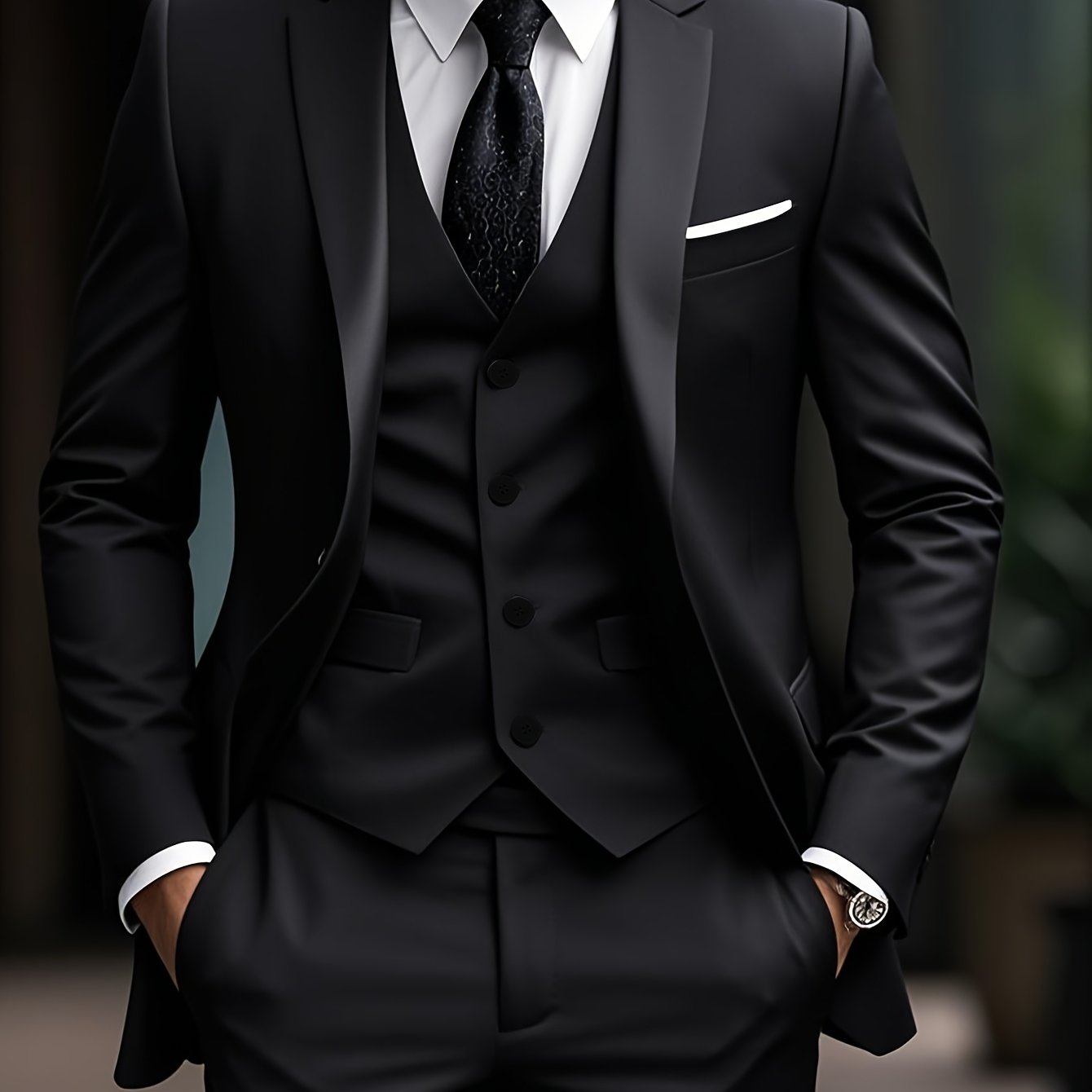 Men's Slim Fit Suit Set - Black Jacket, Vest & Pants for Events