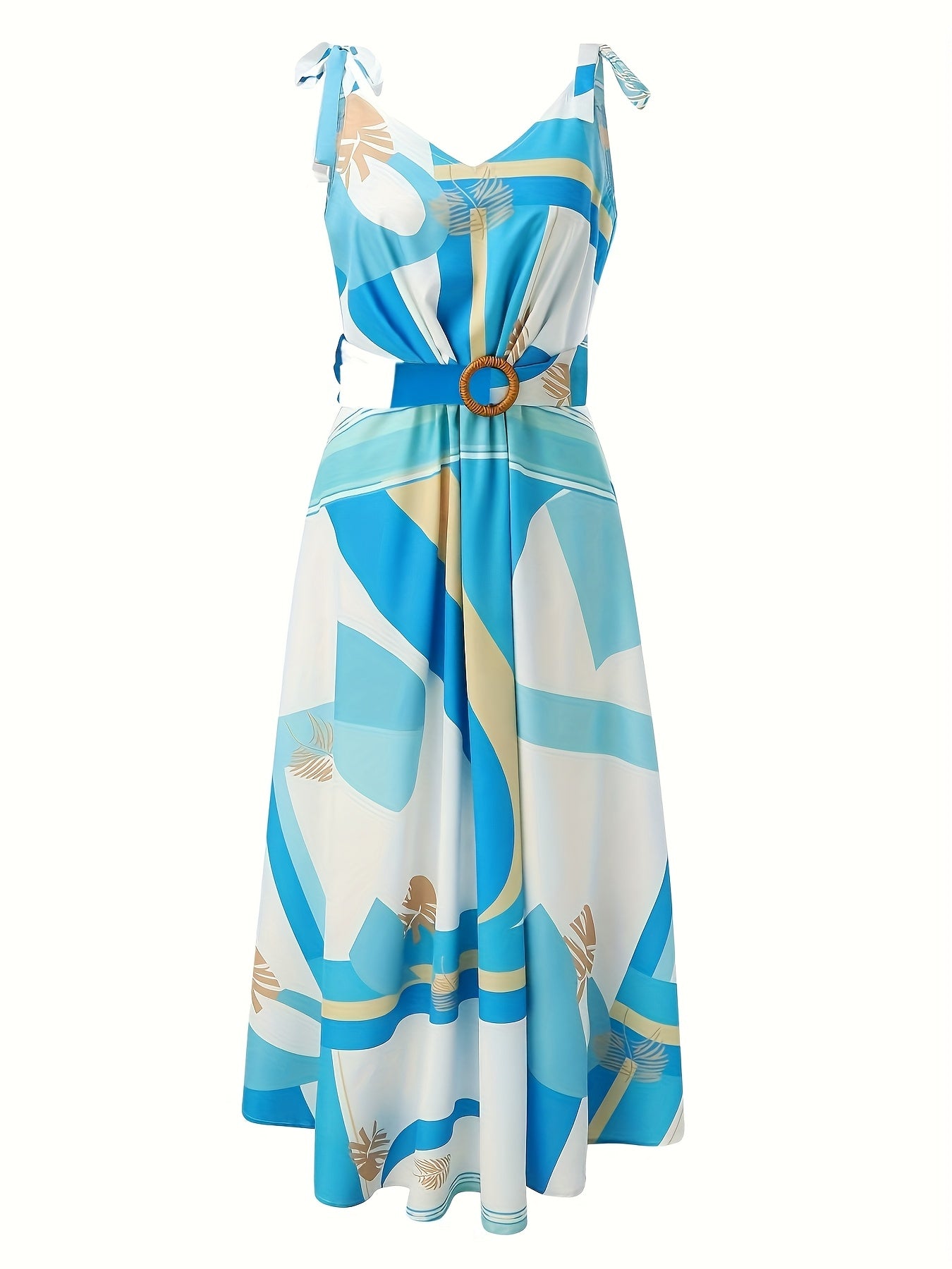 Women’s A-Line Summer Dress - Geometric Pattern, V-Neck Bohemian Style