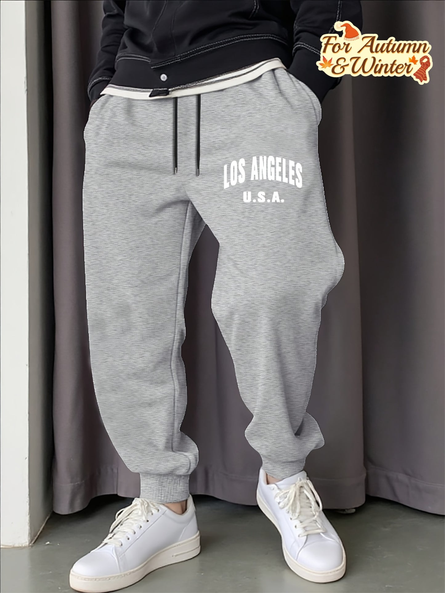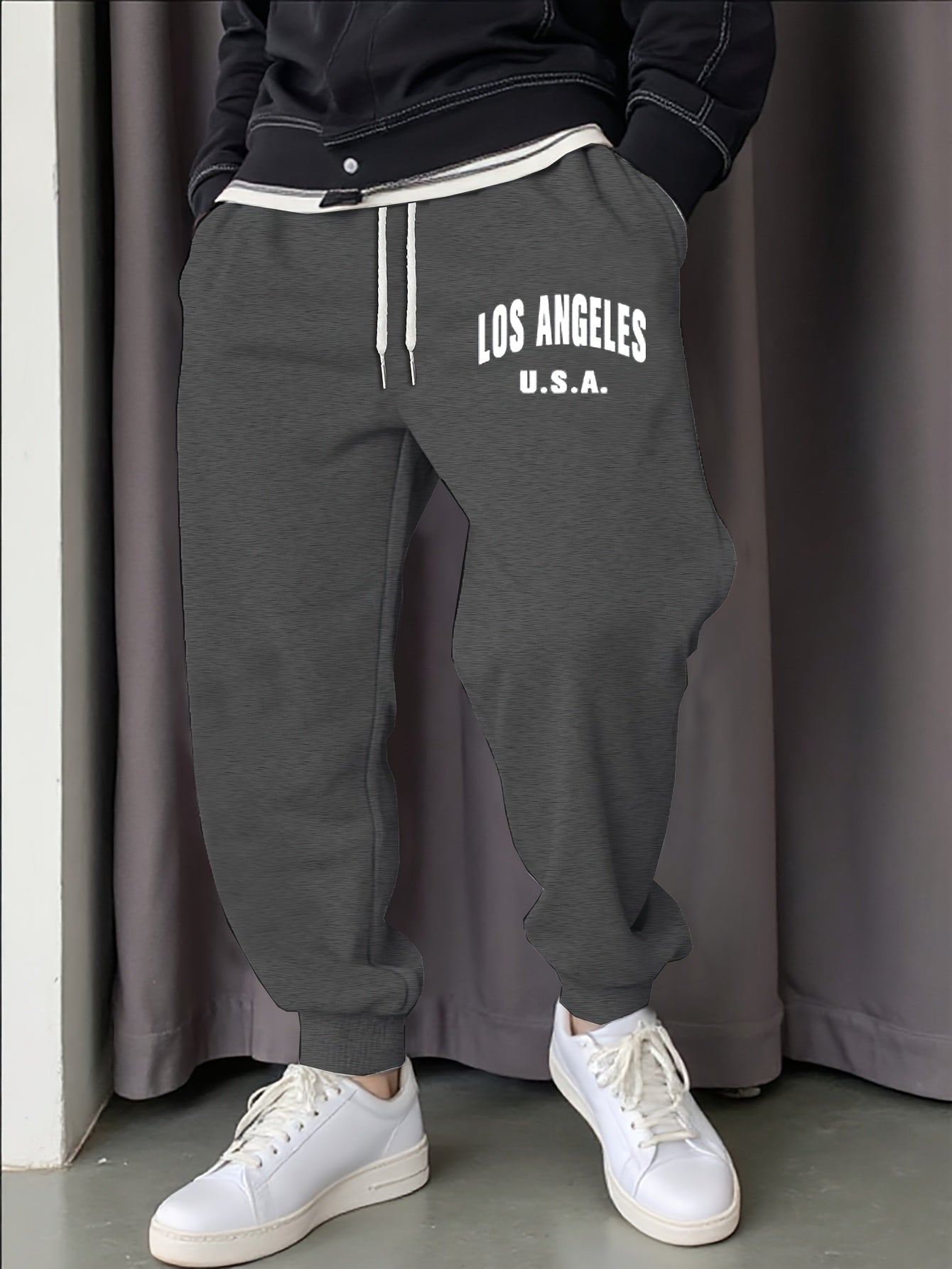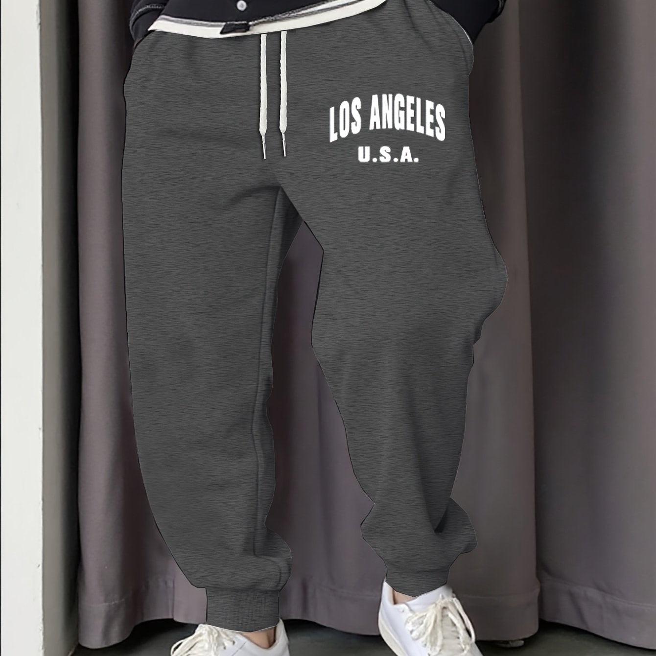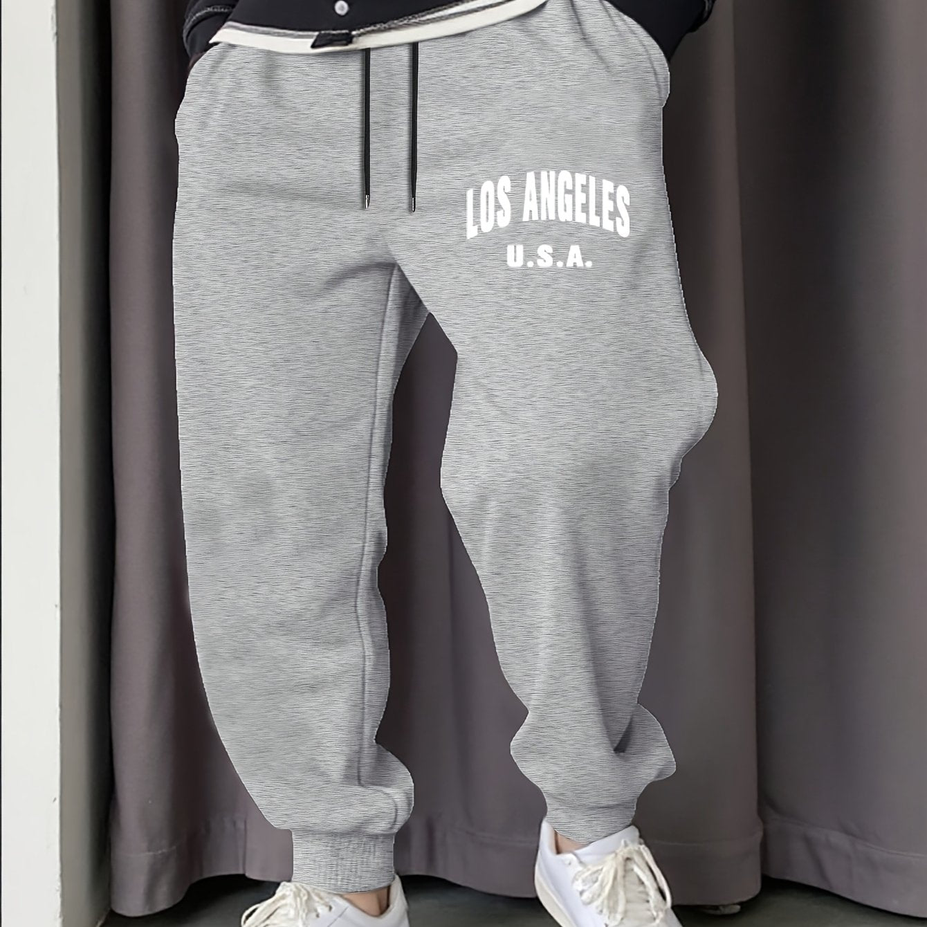 Men's Casual Graphic Sweatpants - Gray, Comfortable Polyester Blend