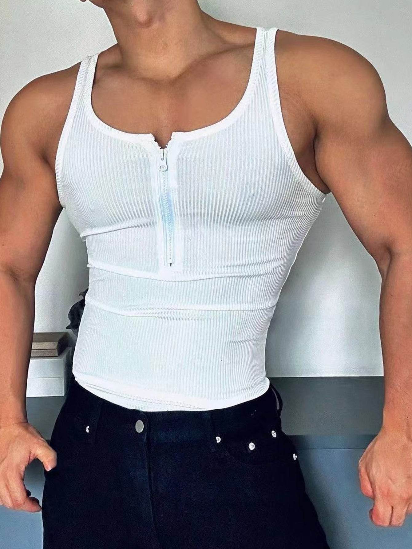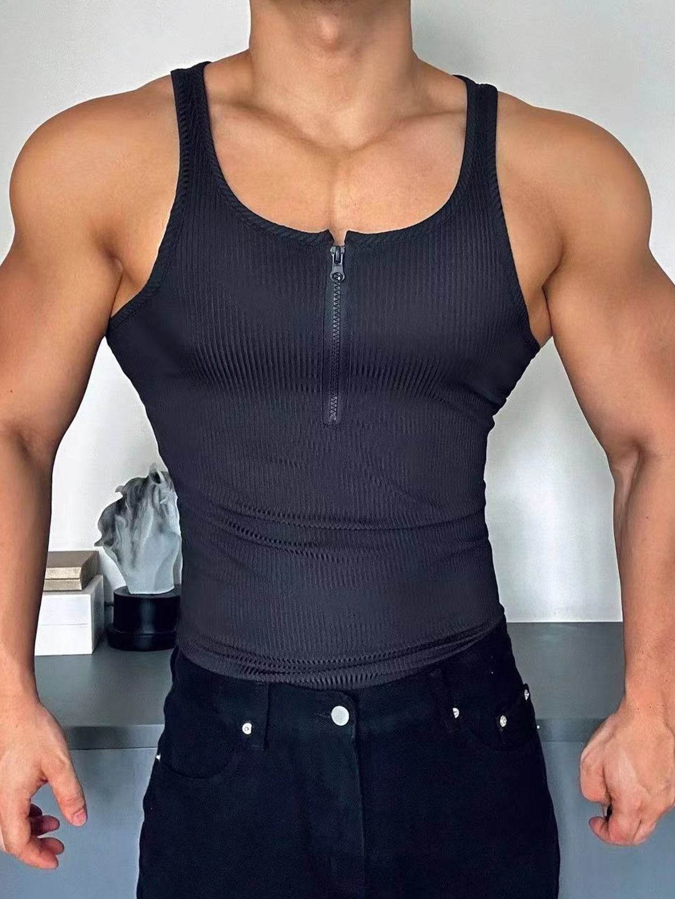Men's Ribbed Zip-Up Tank Top - Breathable Activewear for Gym & Running