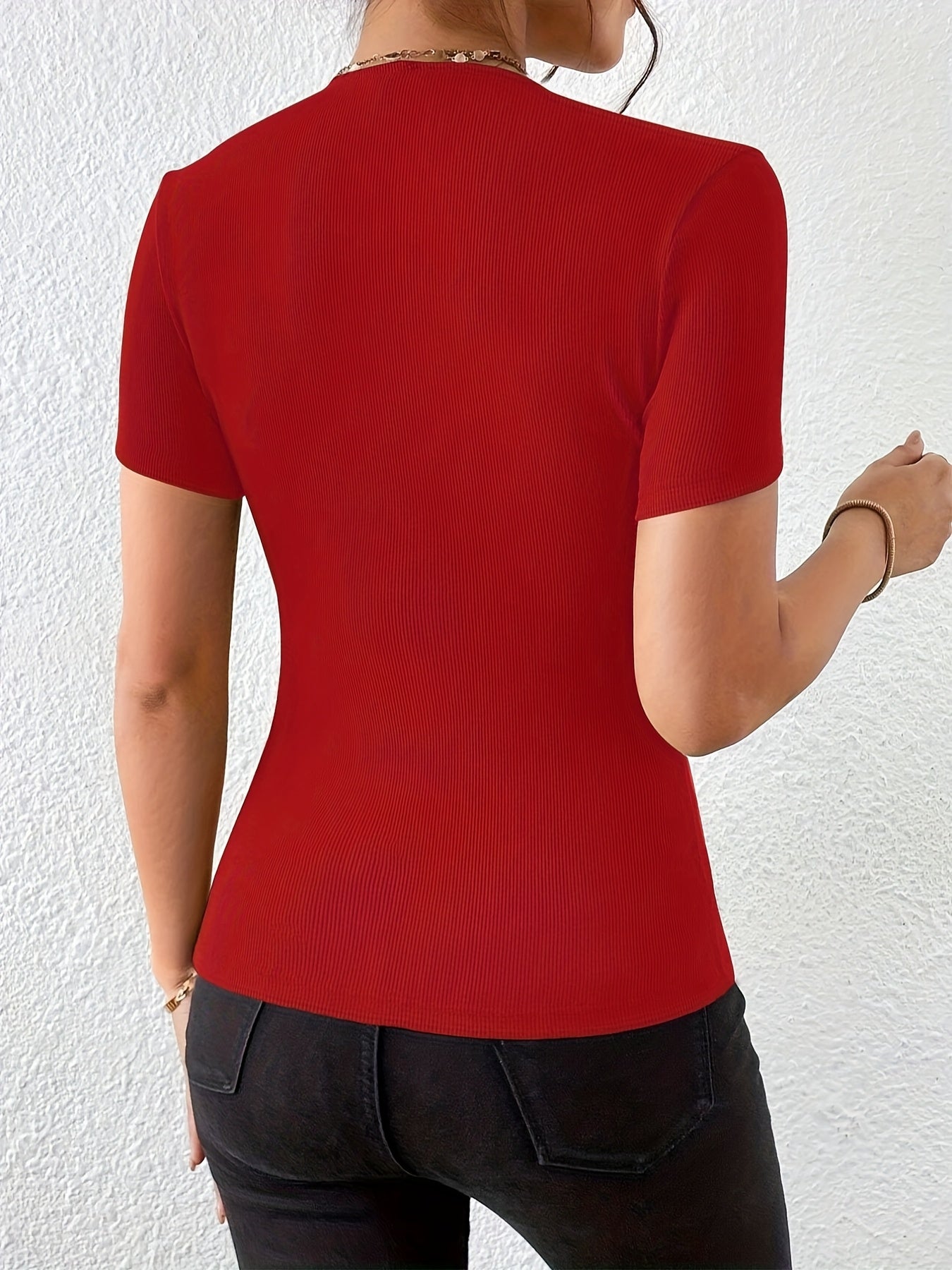Elevate your everyday style with the Zhou Meiling Square Neck Button Detail T-Shirt. This versatile piece not only provides a flattering silhouette but also adapts effortlessly from day to night. Pair it with your favorite jeans or dress it up with a skirt for a sophisticated ensemble. Don't miss out on this wardrobe essential that combines style and comfort!