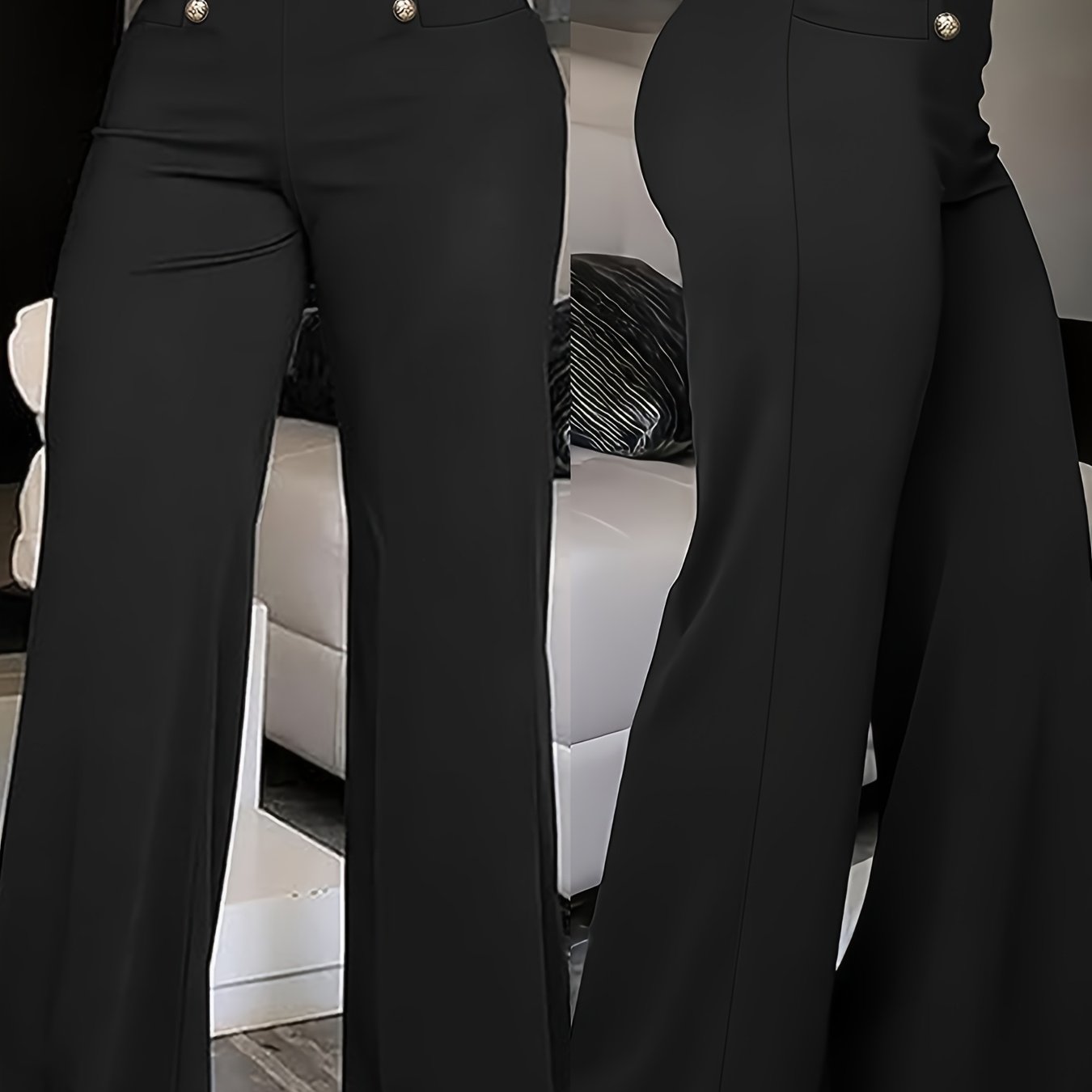 Elevate your wardrobe with our Women's Elegant High-Waist Wide Leg Pants in Black. Designed for both casual and formal occasions, these trousers offer a sleek silhouette with a tailored fit and front button detail, ensuring you look stylish and feel comfortable all season long.