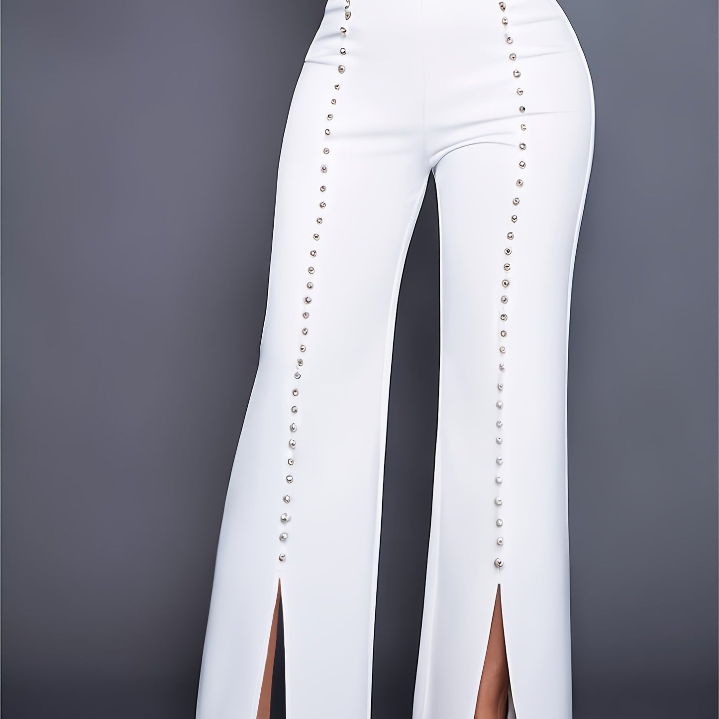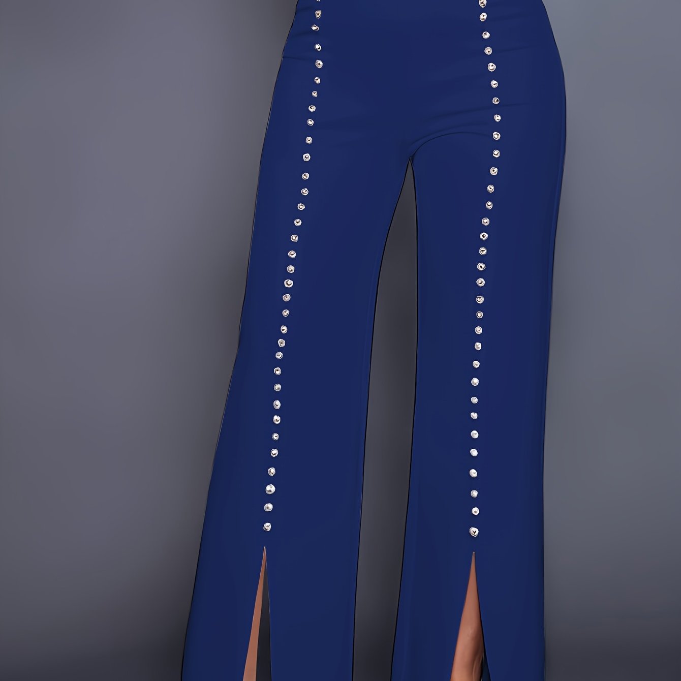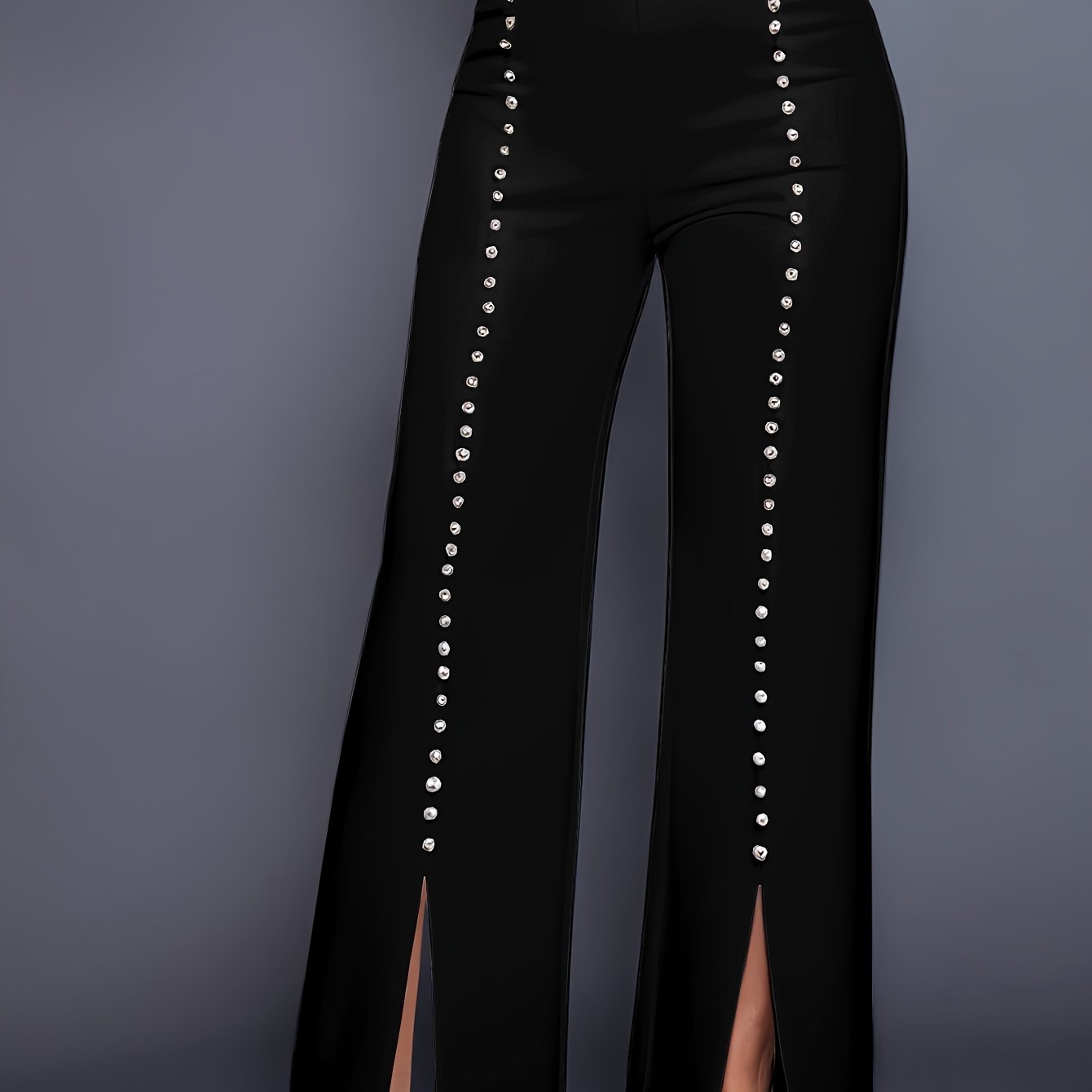 Discover the perfect blend of style and comfort with our Women's Elegant High-Waisted Wide-Leg Pants. Crafted from a luxurious polyester-spandex blend, these versatile trousers feature a chic round button detail and are designed for both casual and formal wear, making them ideal for all seasons.