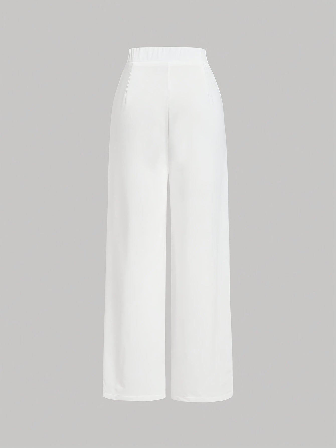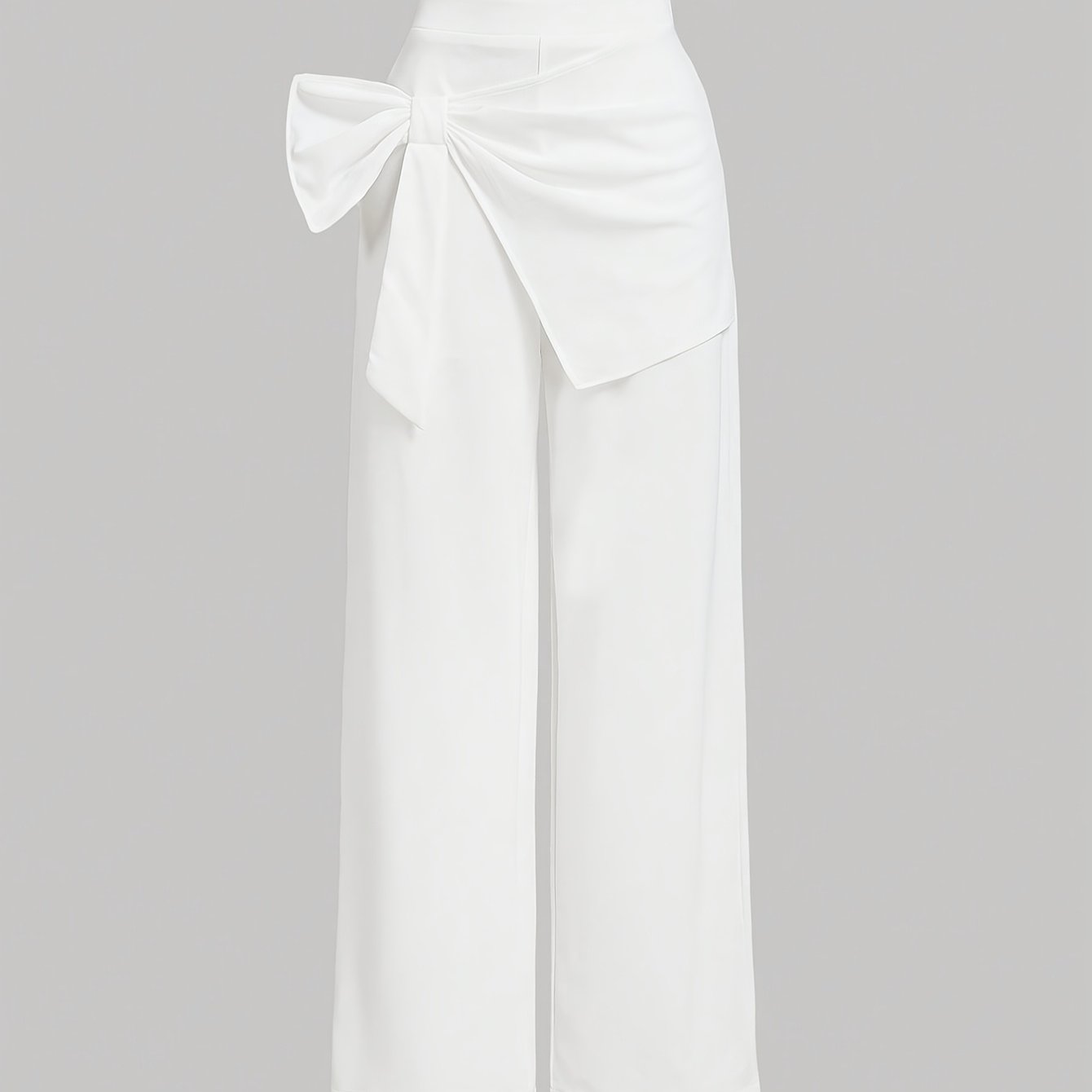 Elegant Khaki Asymmetrical Pants - Loose-Fit, 3D Bow Design