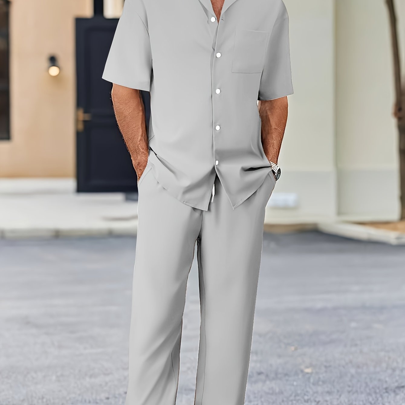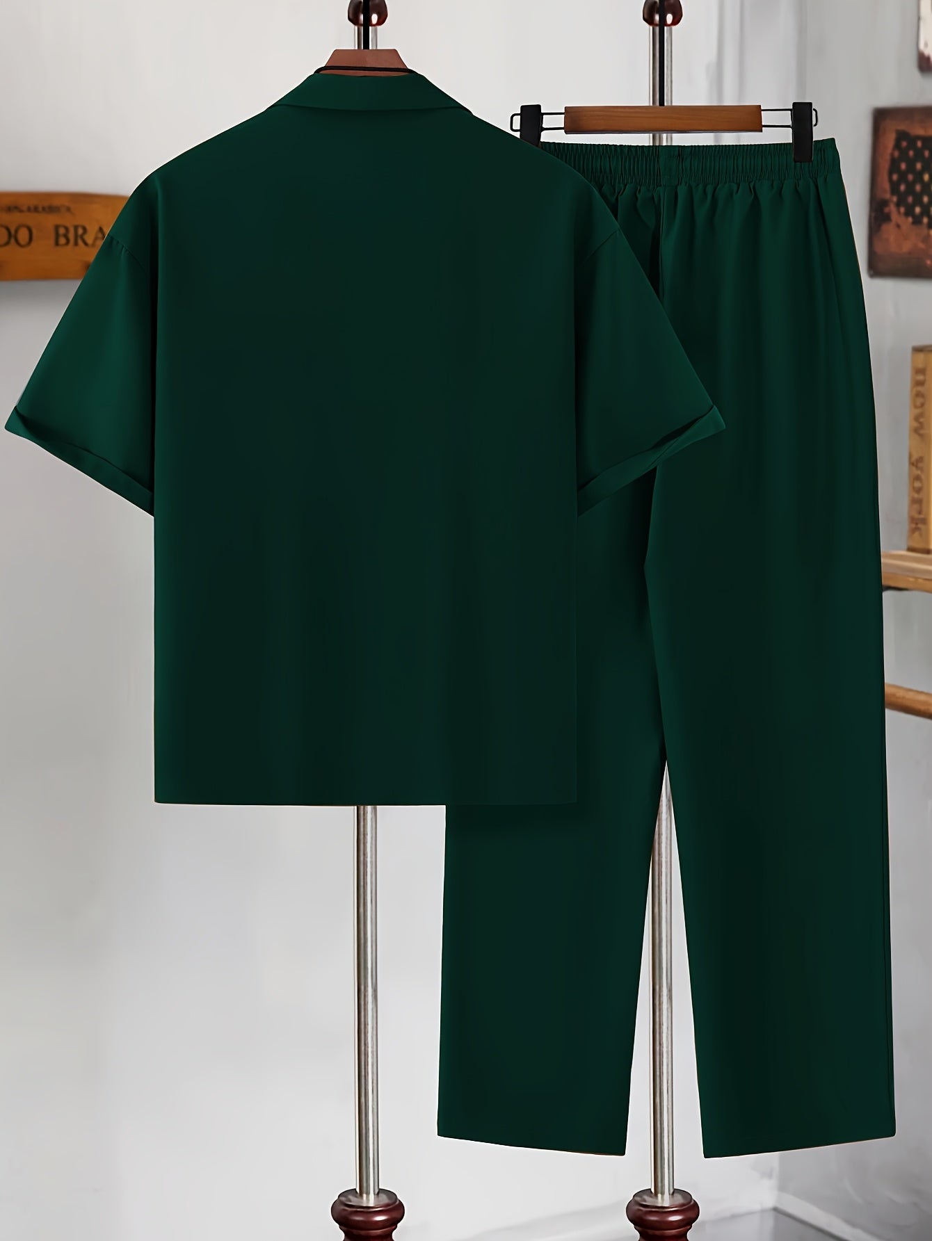 Men's Casual Suit-Inspired Shirt & Pants Set - Machine Washable Polyester