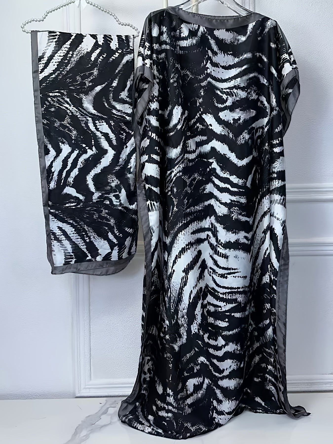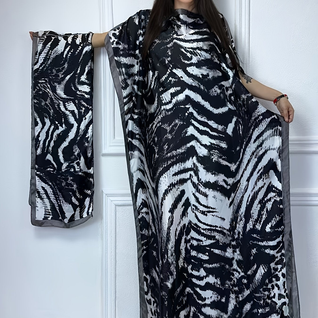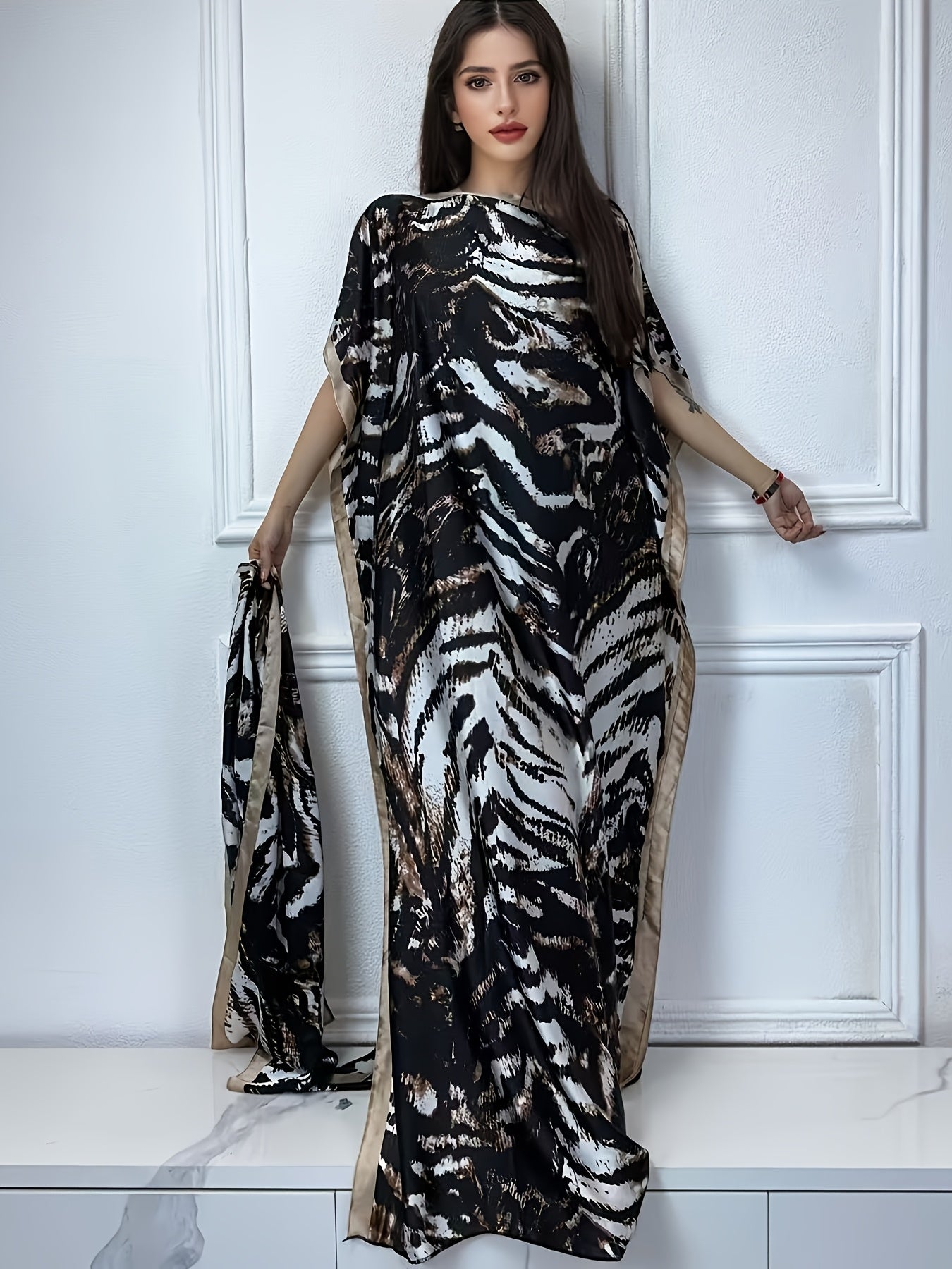 WINYI Leopard Print Boat Neck Abaya - Elegant Short Sleeve Dress