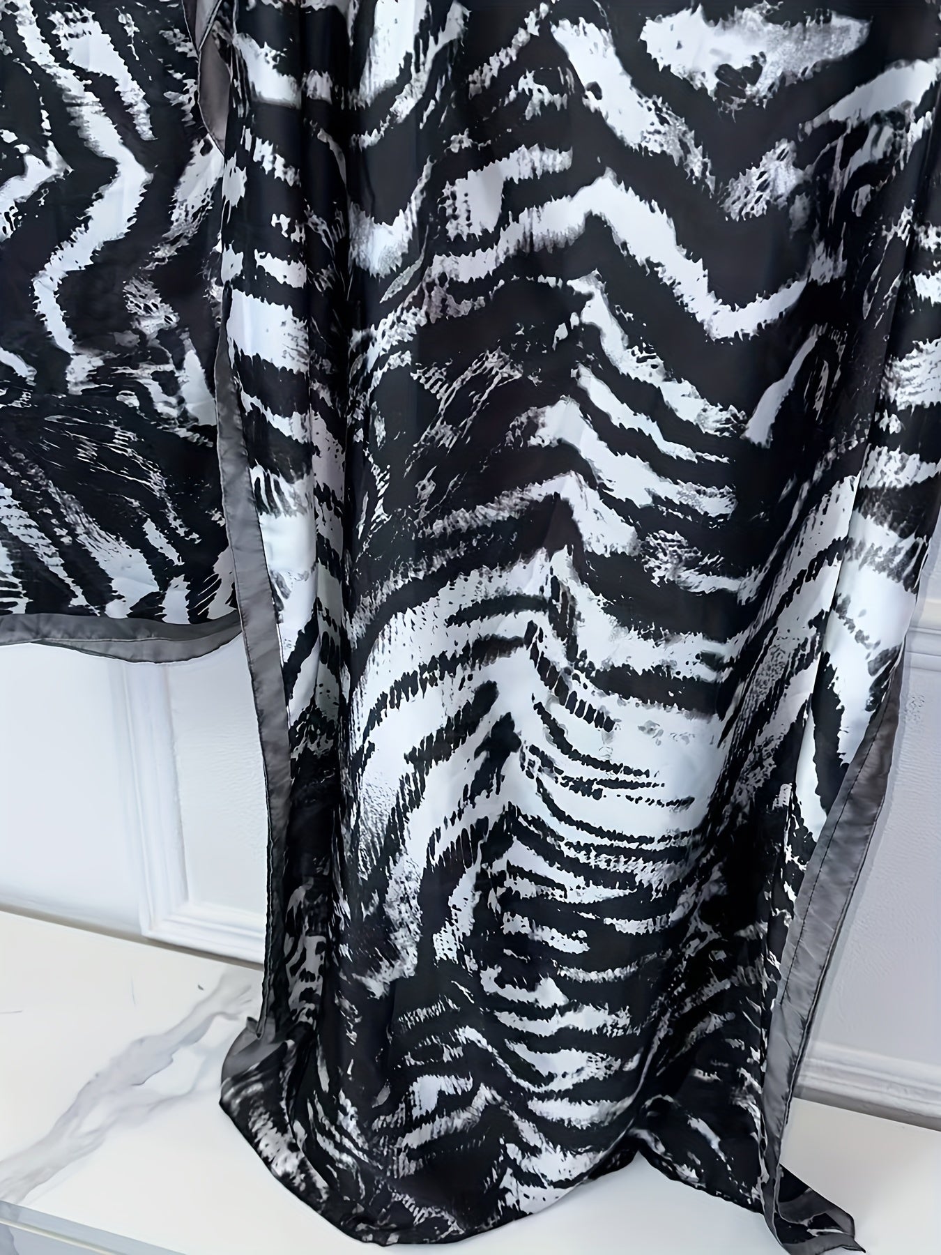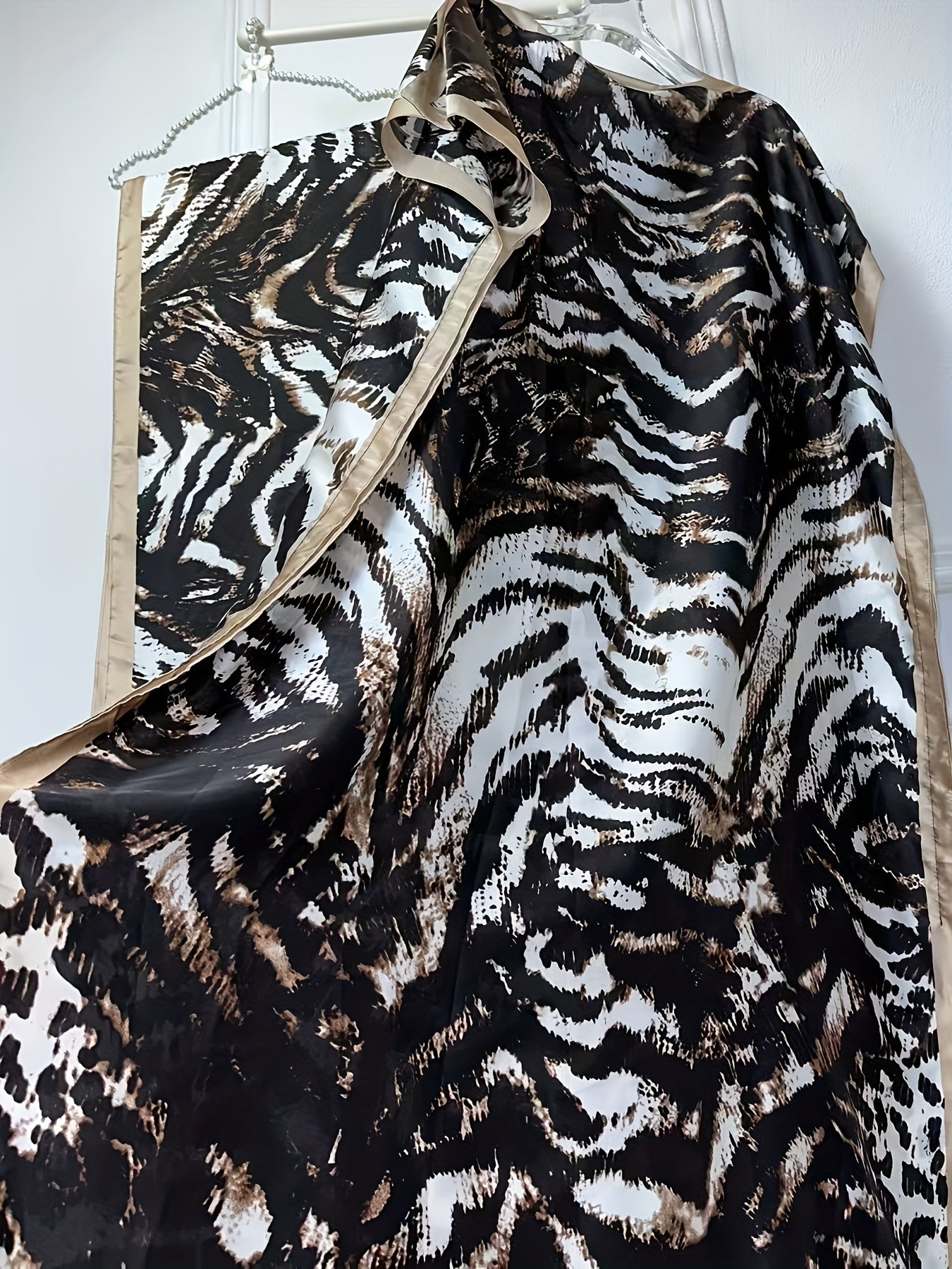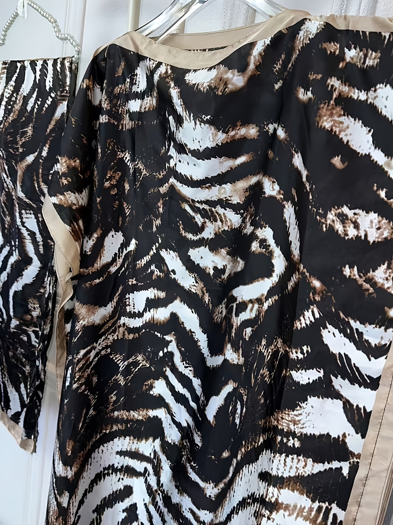 WINYI Leopard Print Boat Neck Abaya - Elegant Short Sleeve Dress