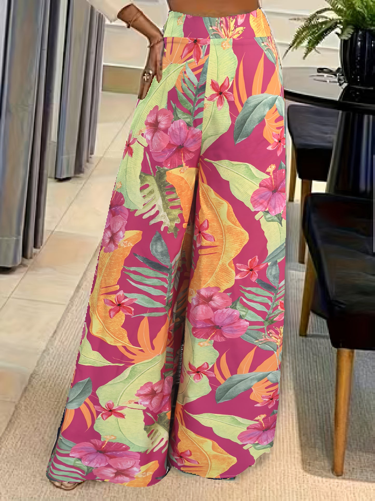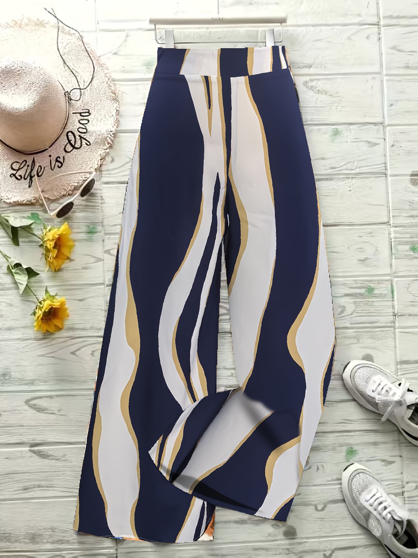 Stylish Women’s Printed Wide-Leg Trousers - Perfect for Vacations