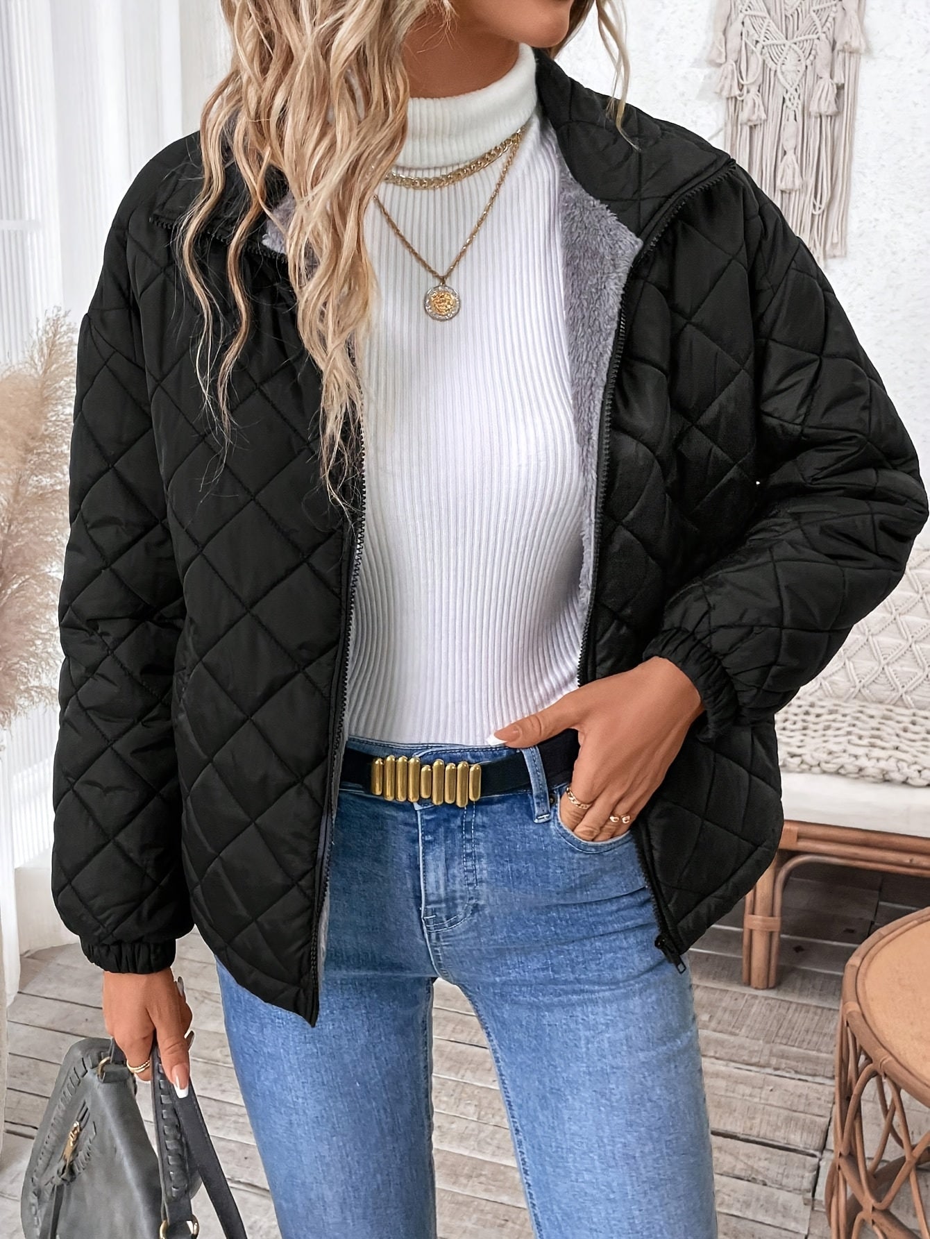 Women's Elegant Warm Fleece-Lined Jacket - Soft Casual Style
