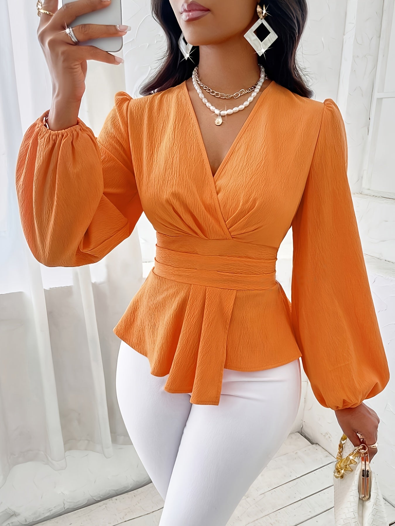 Embrace elegance with our Elegant V-Neck Long Sleeve Blouse that showcases a unique asymmetrical hemline, making it a standout piece in any wardrobe. Perfect for dressy occasions or casual outings, this versatile blouse pairs beautifully with skirts or trousers. With its sophisticated design, you can effortlessly transition from day to night while maintaining a stylish and chic appearance.