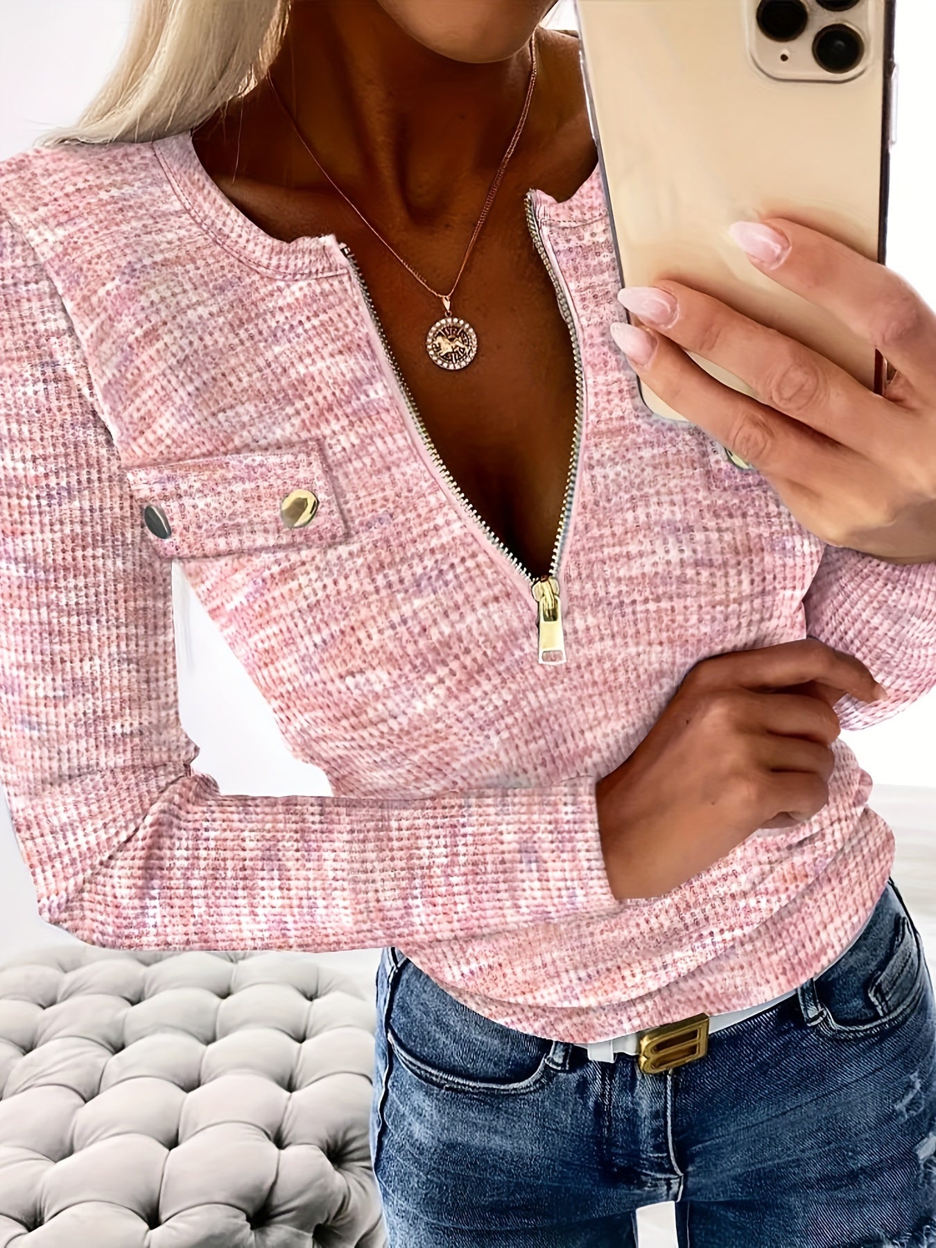 Elegant Women's Pullover T-Shirt - Zipper Design for Fall/Winter