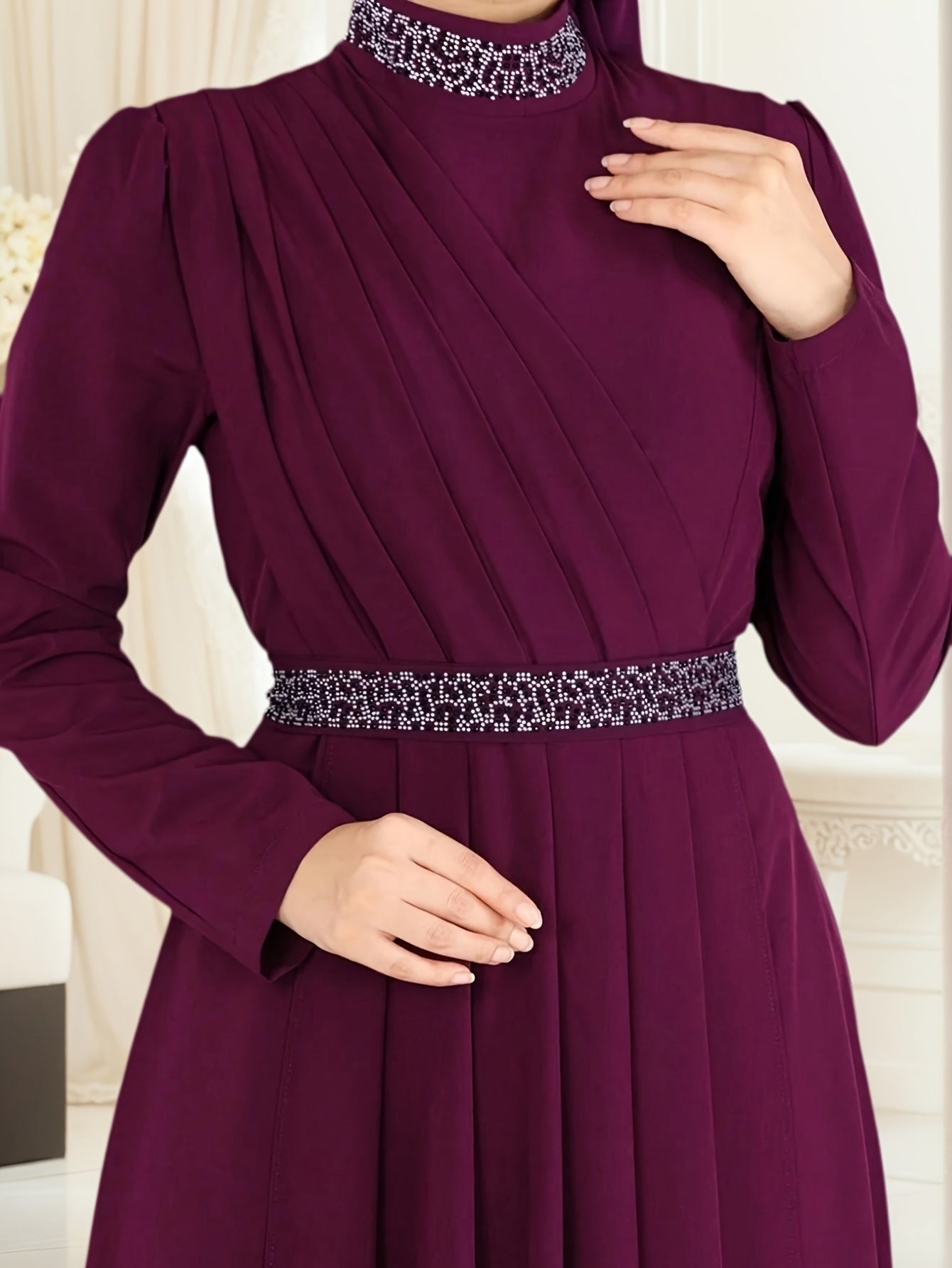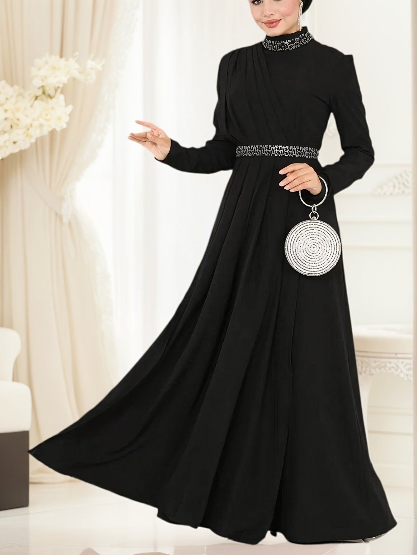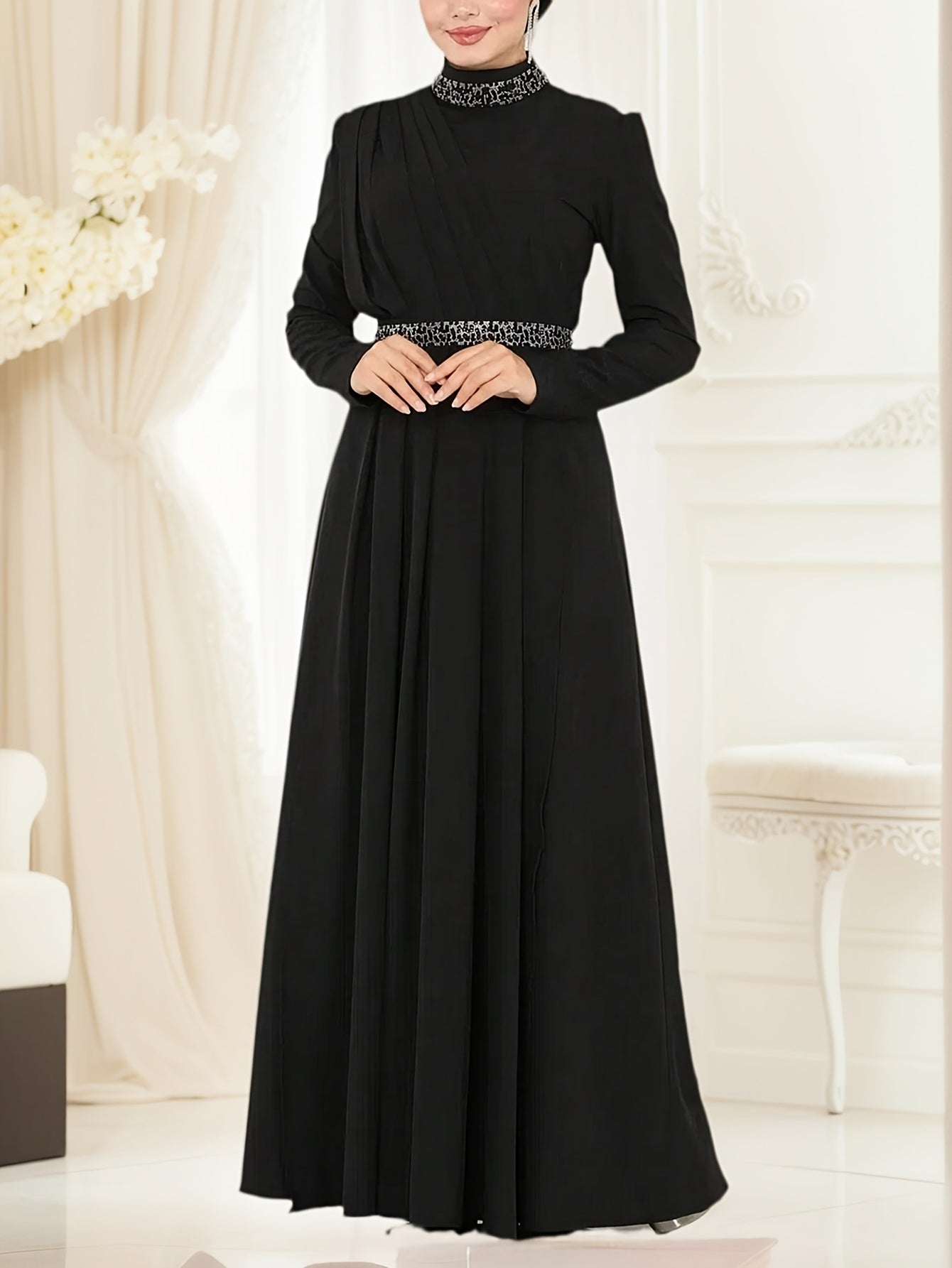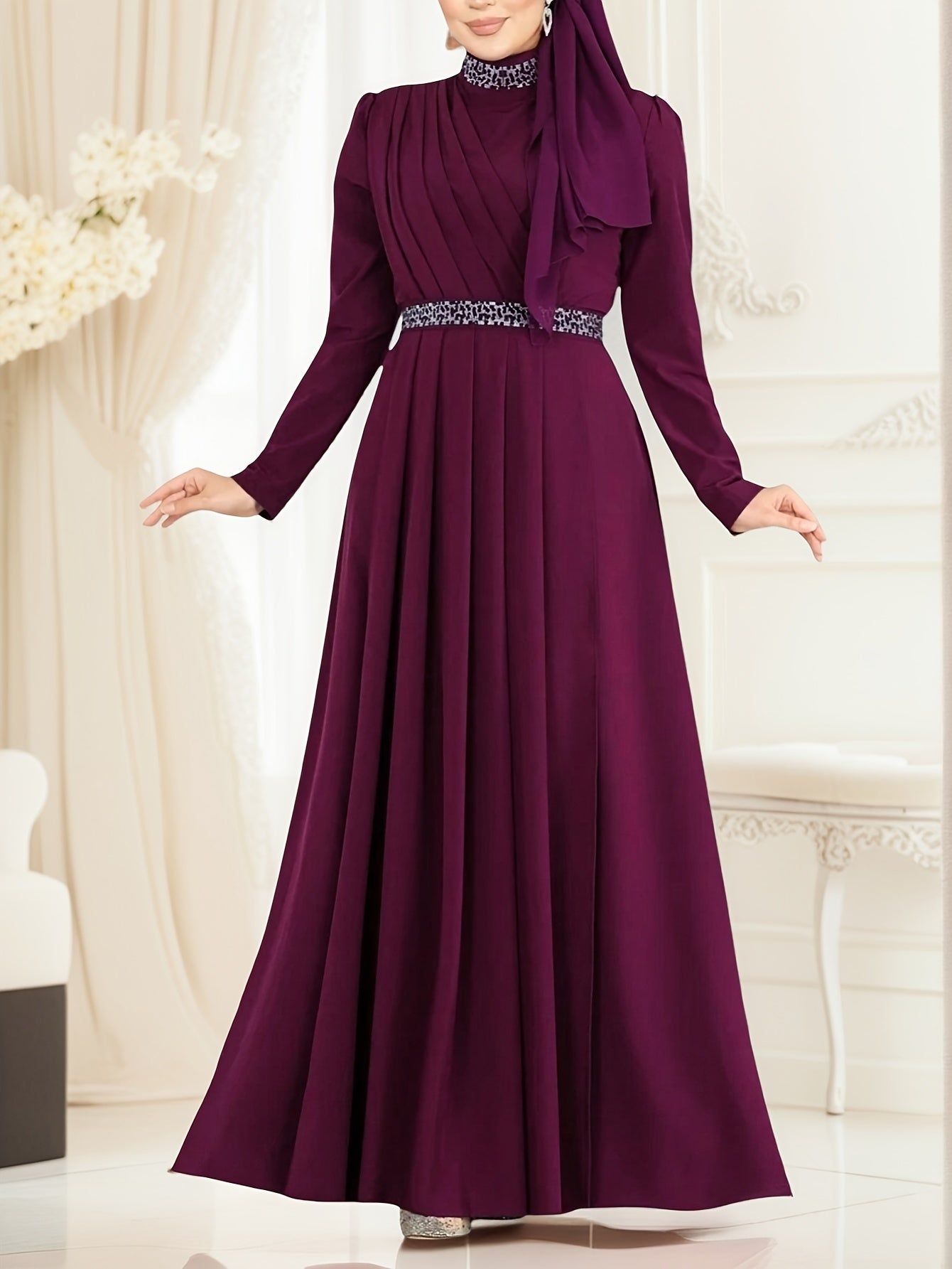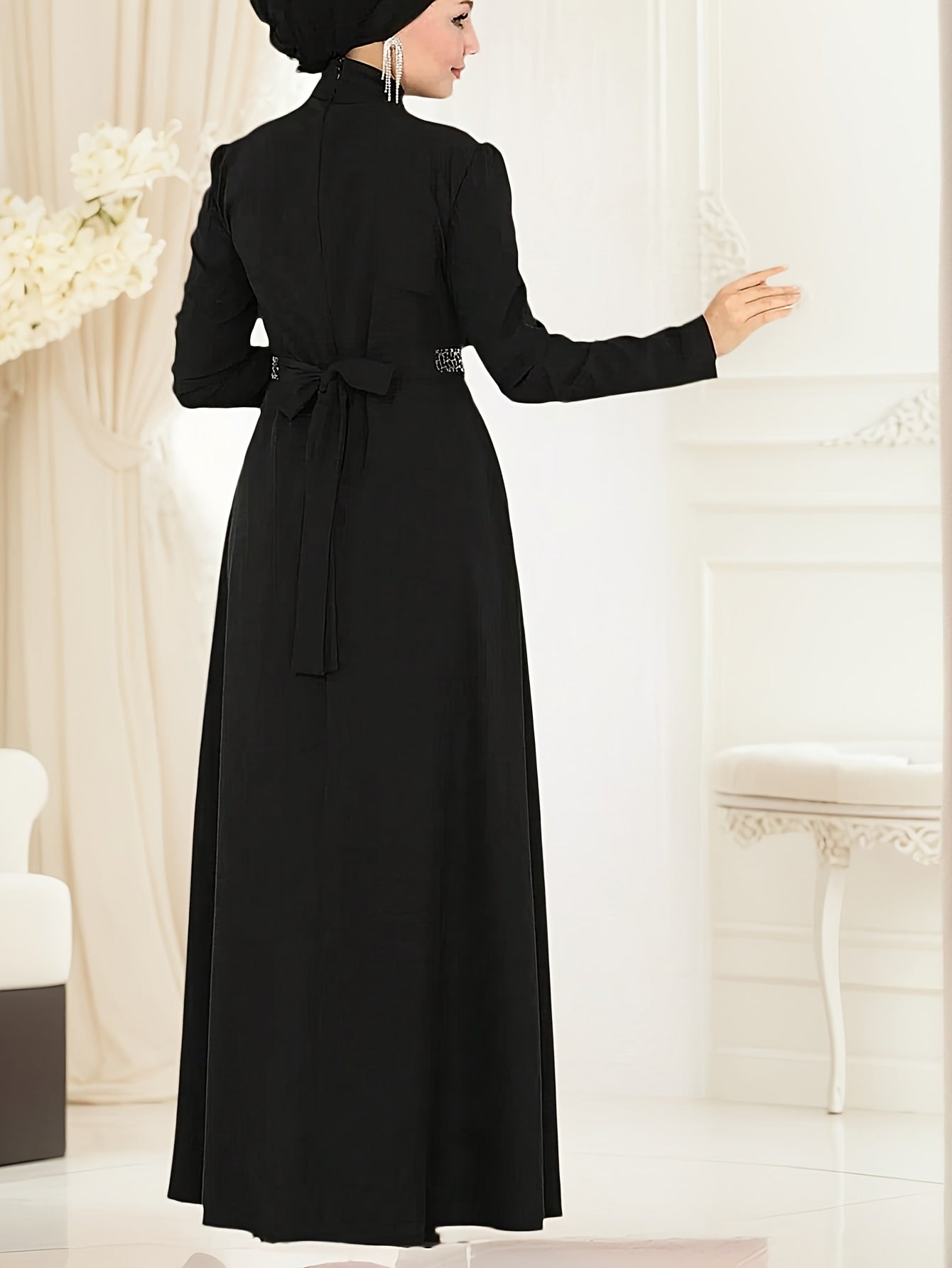 Elegant Women's Long Sleeve Abaya Dress - Modest Maxi with Belt