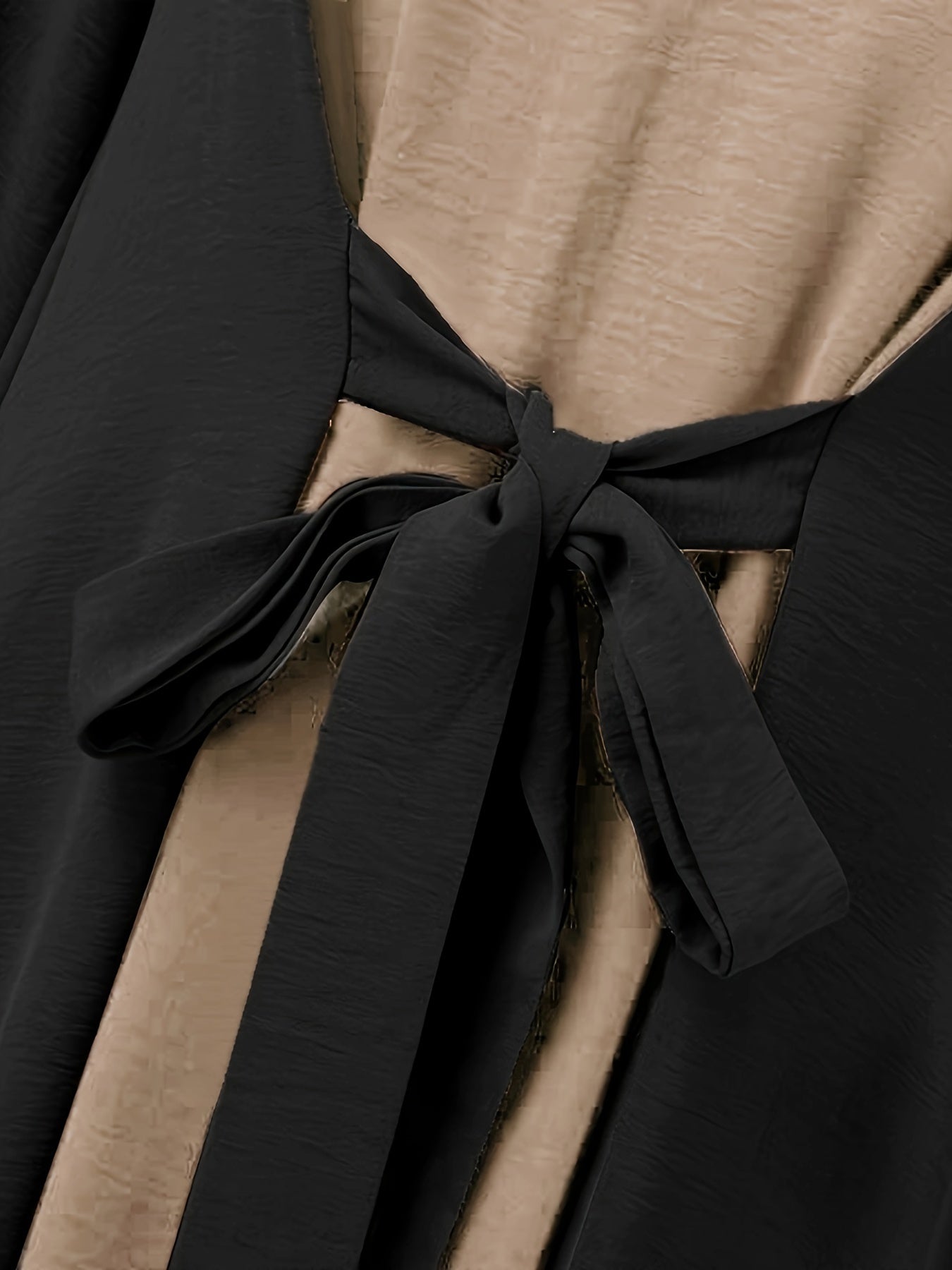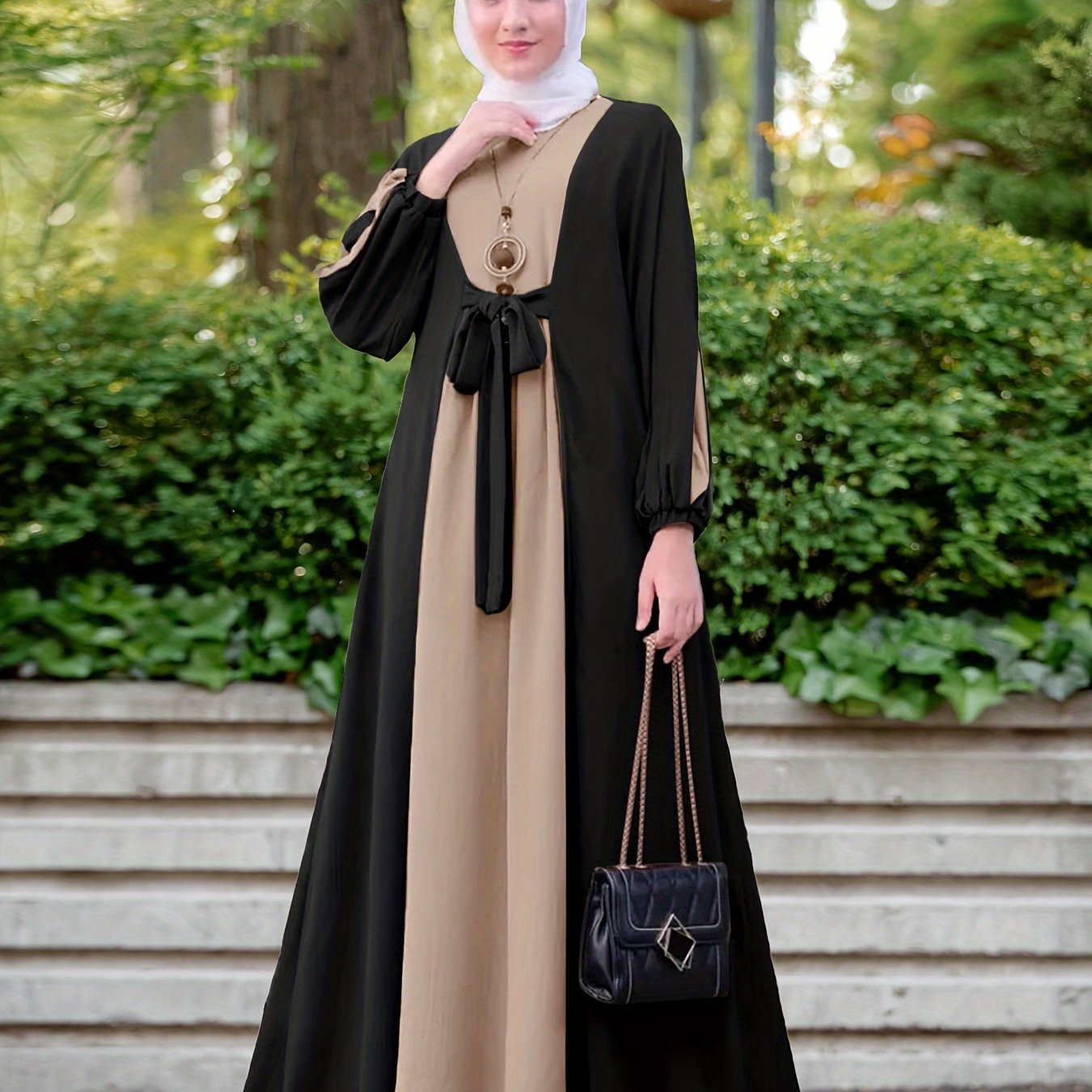 Modest Two-Tone Abaya Dress - Long Sleeve, Adjustable Waist Tie